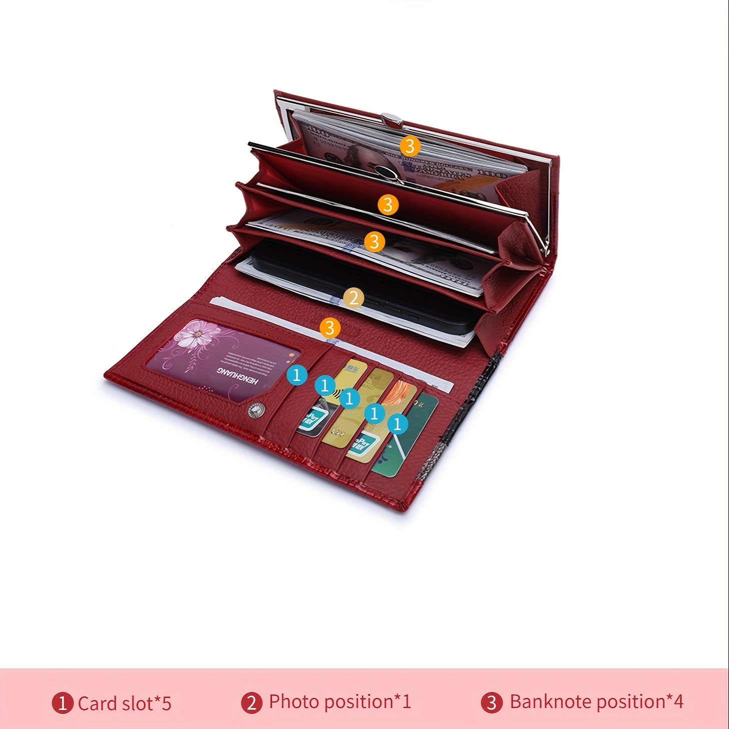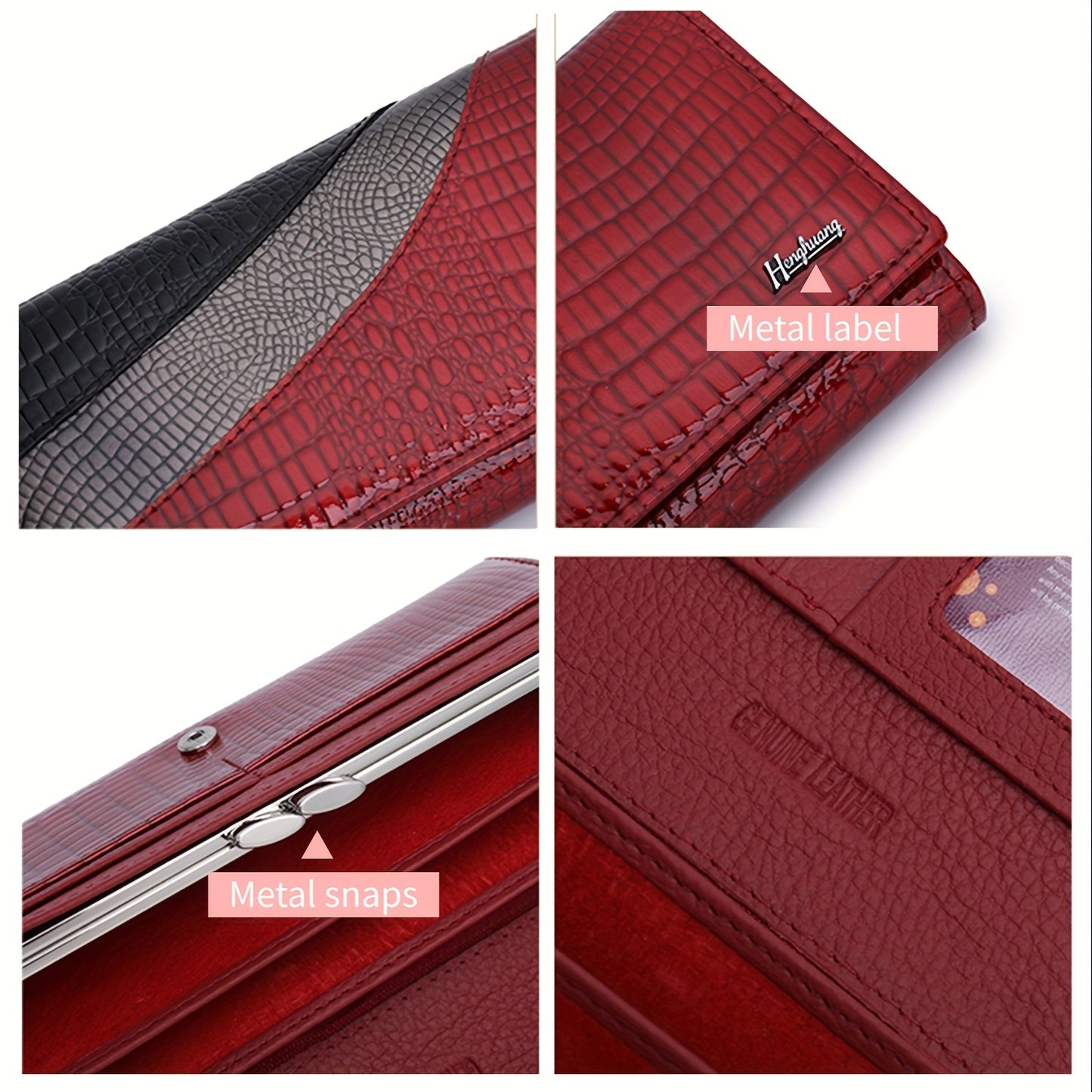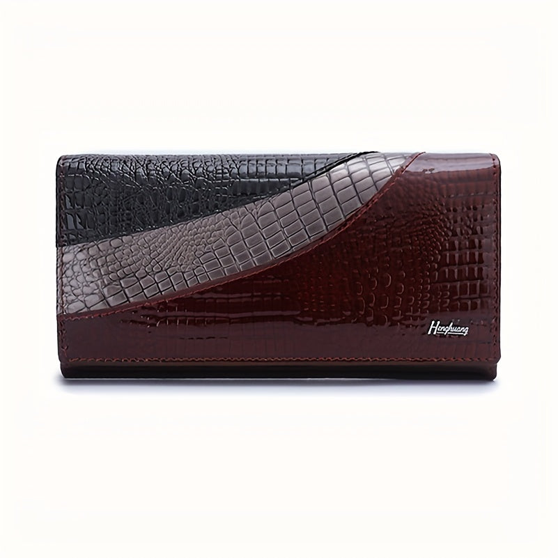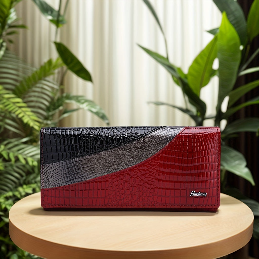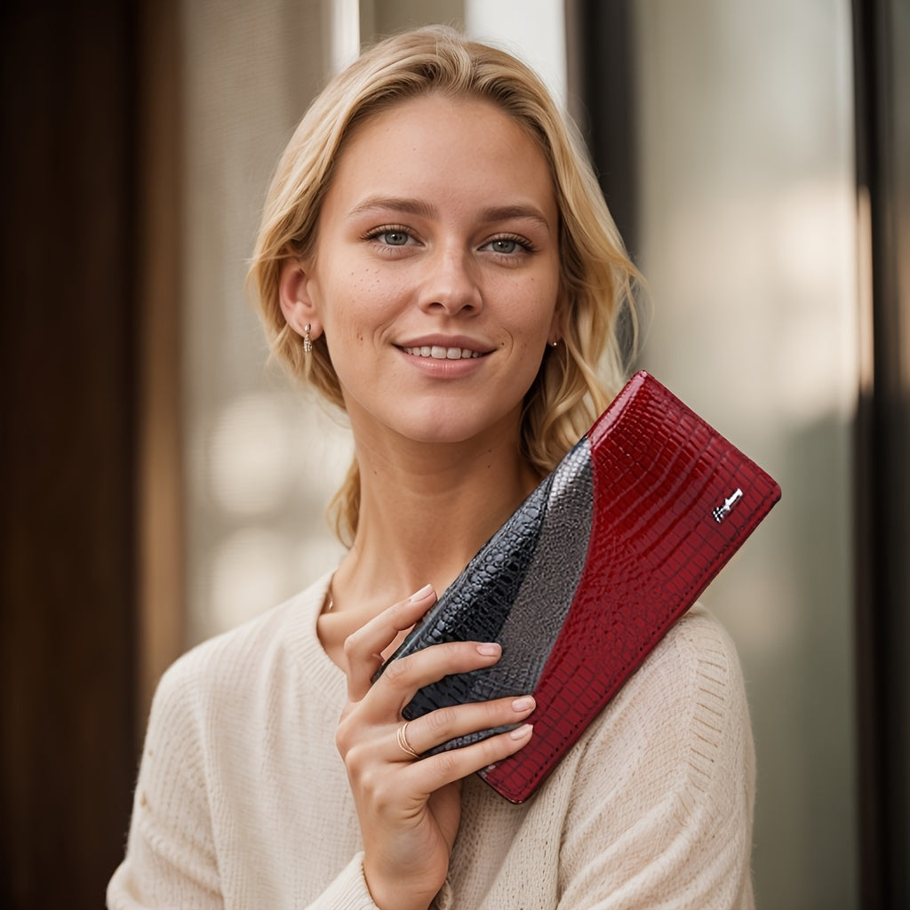High-end Fashion Women's Leather Wallet Crocodile Pattern Bi-fold Design Elegant Temperament Clutch Bag
