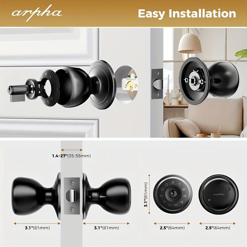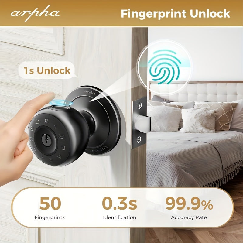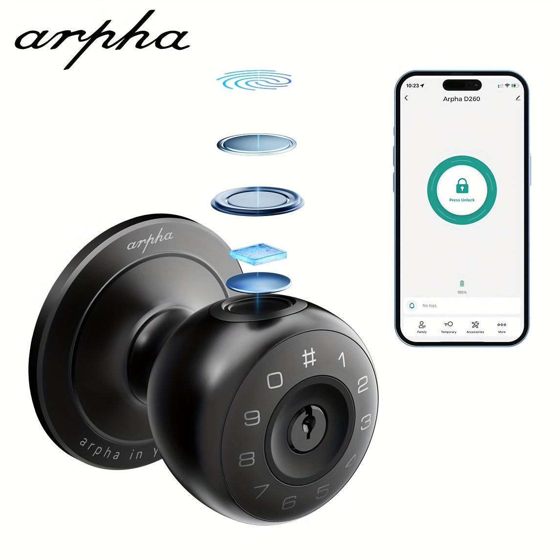 High Quality Arpha Smart Door Lock with Digital Keypad & Fingerprint Access, App Control, Black Matte Finish – Secure Residential Lock for Apartments, Bedrooms, and Rental Homes, Battery Powered, Biometric Security Device, Door Locks for Home
