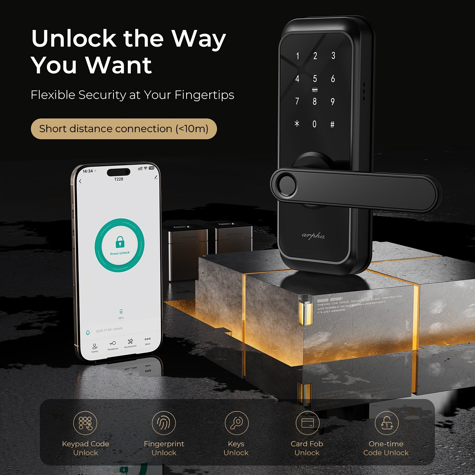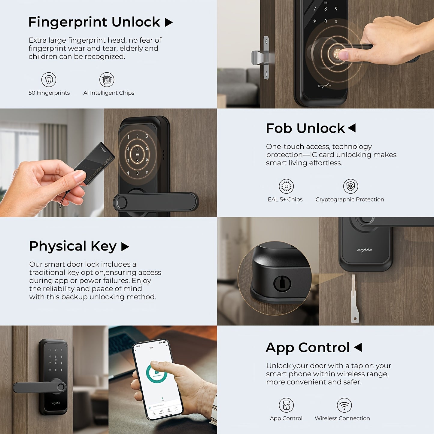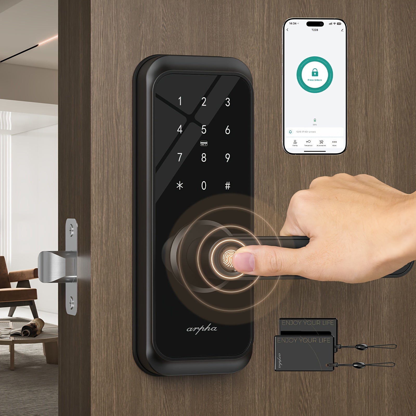 High Quality Arpha Smart Door Lock with Touch Screen Keypad & Fingerprint Access, Wireless App Control, Sleek Black Design – Perfect Housewarming Gift for Front Door or Apartment, Front Door Lock | Sleek Touch Keypad | Durable Door Lock, Door Locks for Ho