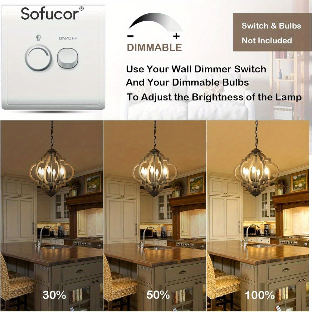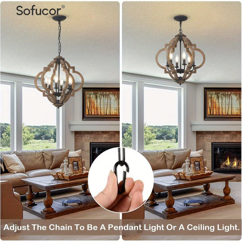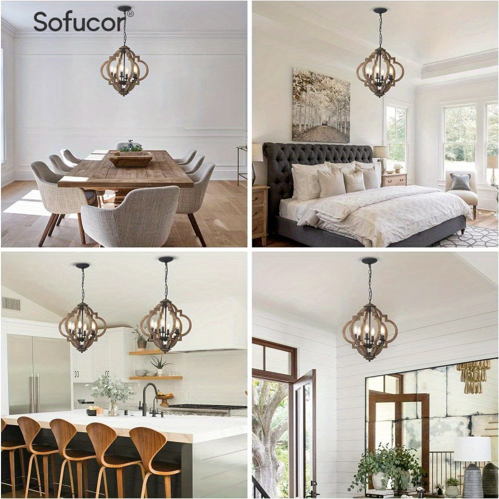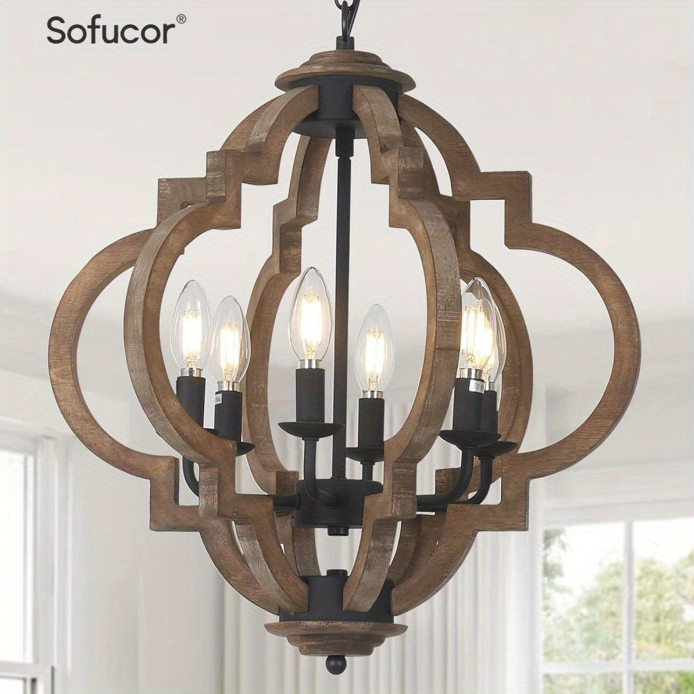 High Quality Farmhouse Chandeliers for Dining Room, 6-Light Rustic Dining Room Light Fixture Over Table, Wood Black Hanging Pendant Lights Kitchen Island, Boho Chandelier for Bedrooms Entryway Living Room