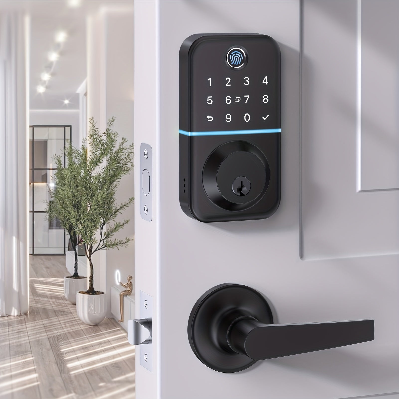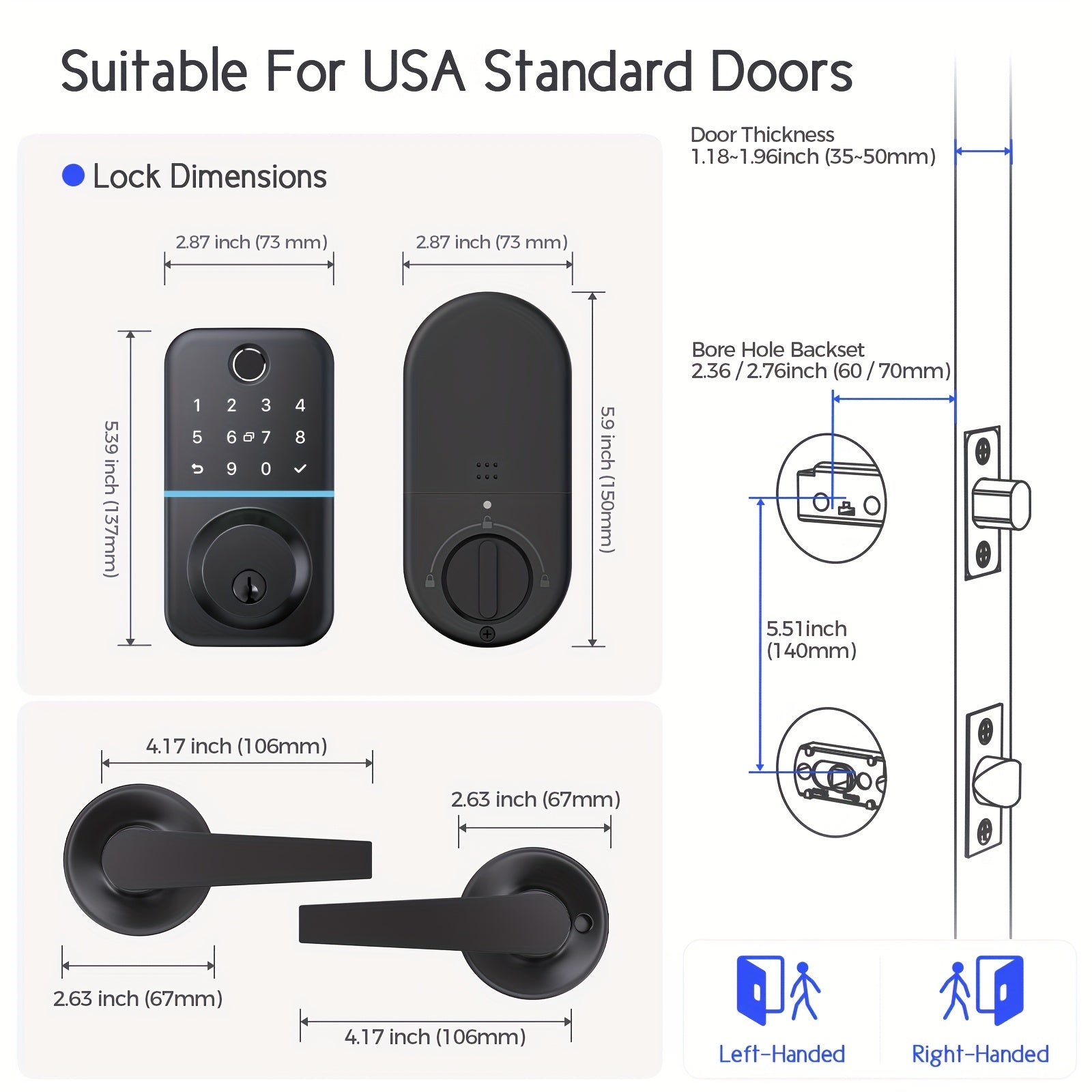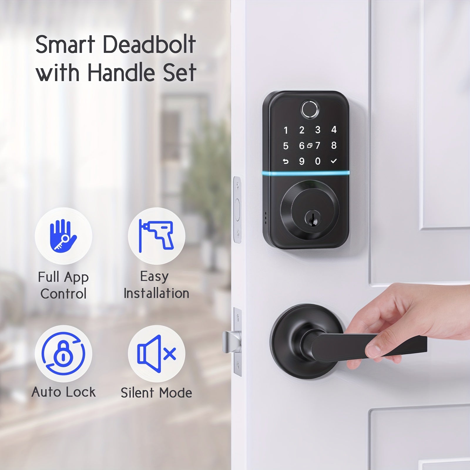 High Quality Keypad Door Lock with Handle Set: Fingerprint Deadbolt Smart Lock with 2 Levers - APP Controlled Keyless Entry Door Lock Electronic Door Lock with Code