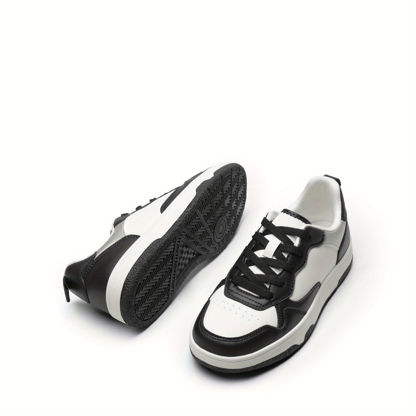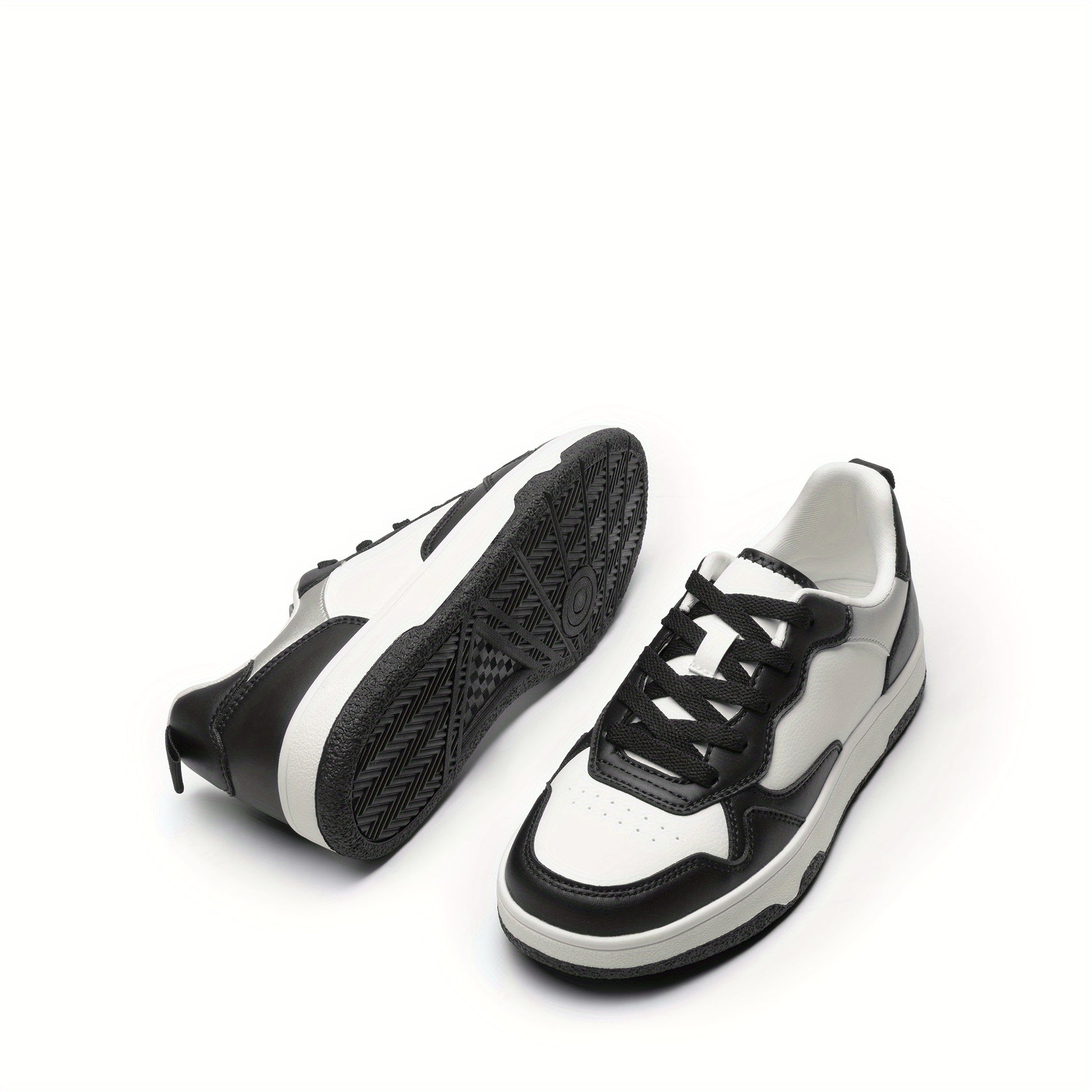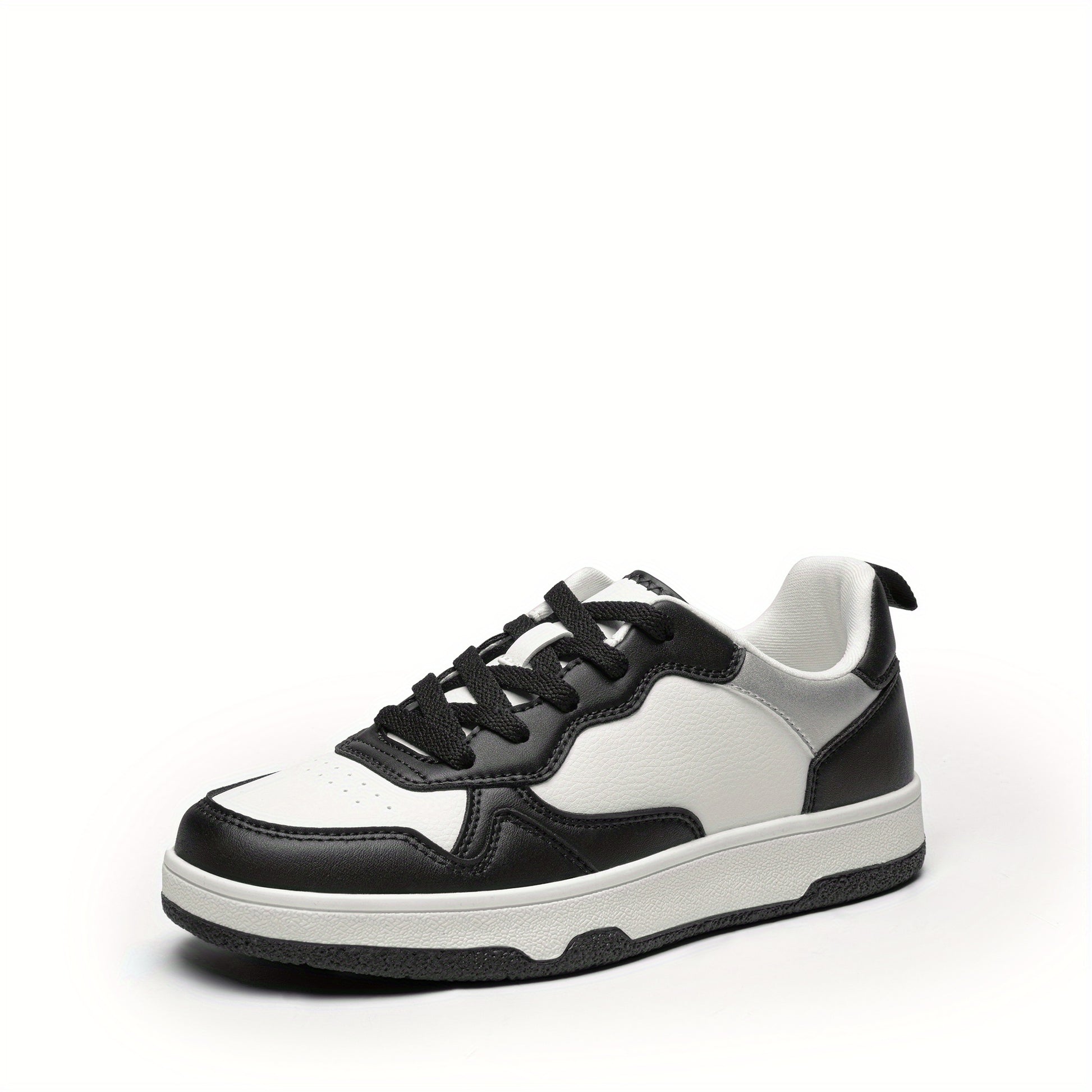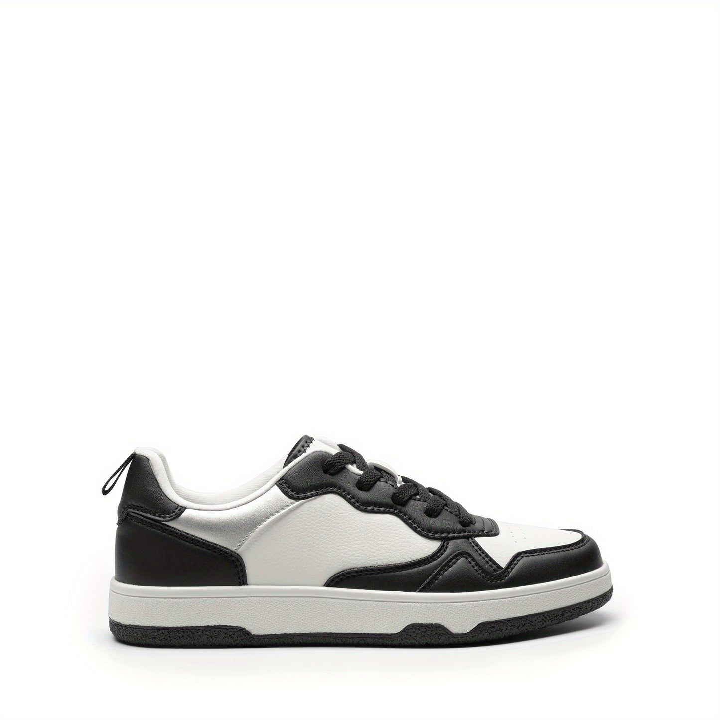 High Quality Women's Stylish Black & White Skate Sneakers - Comfortable Low-Top Lace-Up Walking Shoes with Cushioned Insoles, Non-Slip TPR Outsole, and Durable Design for Casual Wear or Athletic Activities, Skate Shoes