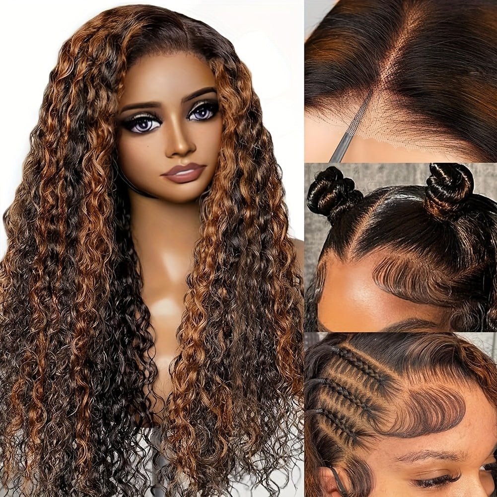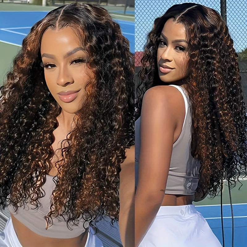 Highlight Lace Front Wig Human Hair 1B/30 Black And Brown Deep Wave Wigs Glueless Wigs Human Hair Pre Cut 5x5 HD Lace Frontal Wig Human Hair Pre Plucked With Baby Hair 180% Density