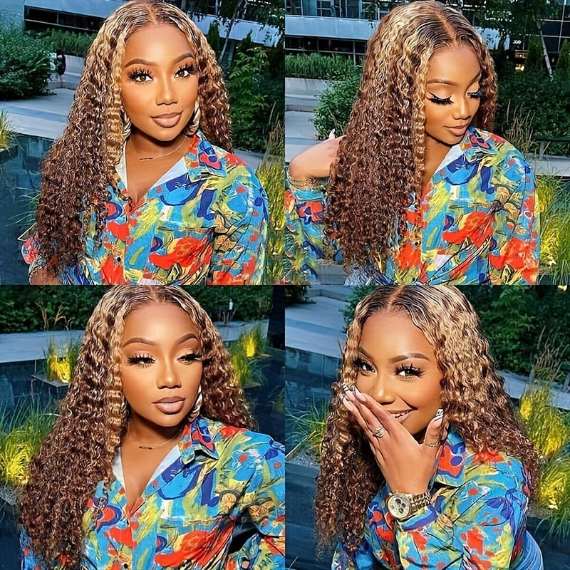 Highlight Ombre Deep Wave Lace Front Wigs Human Hair 4/27 Water Wave Honey Blonde 13x4 Curly Lace Frontal Wigs Human Hair For Women With Baby Hair 200% Density 20 22 24 26 28 30 32 34Inch