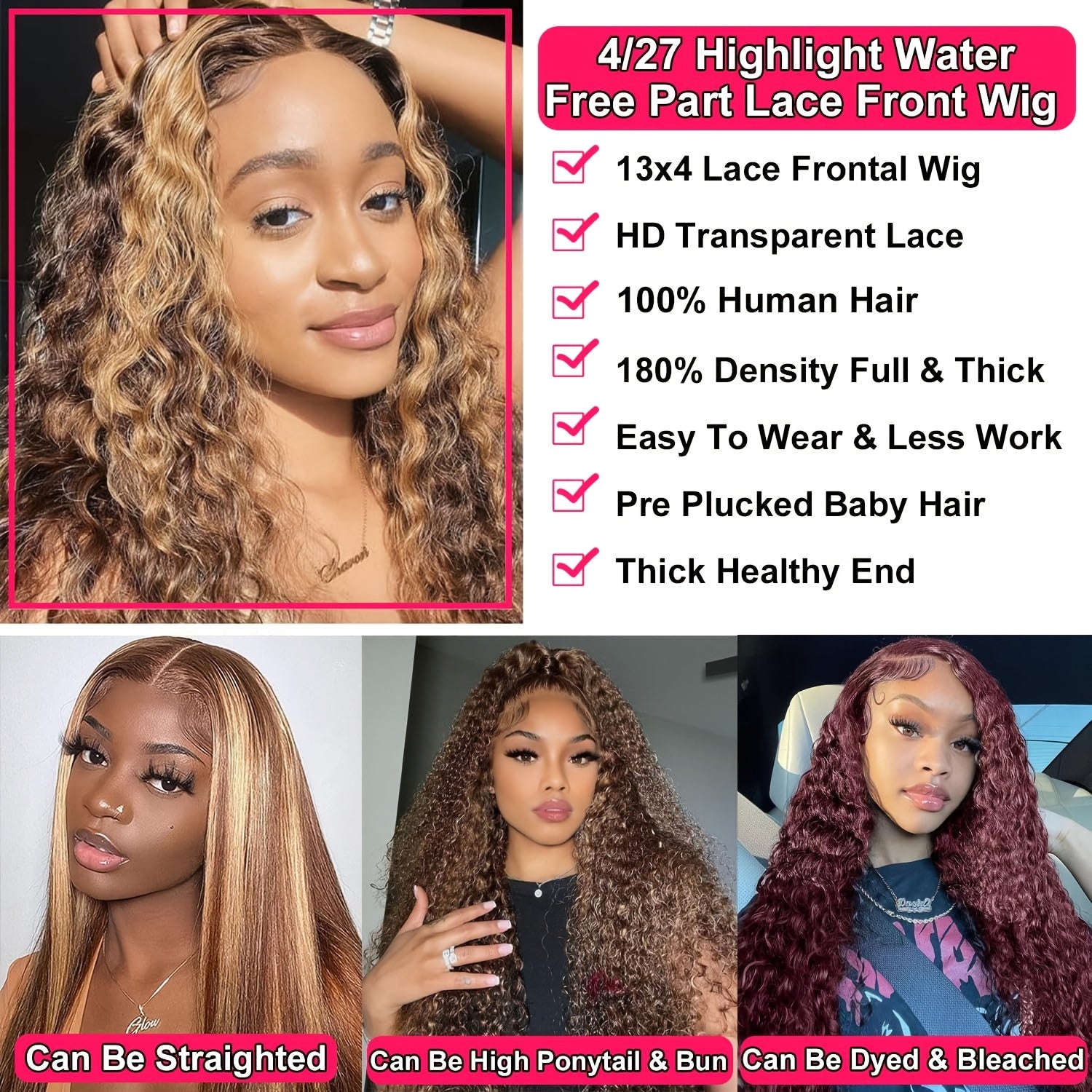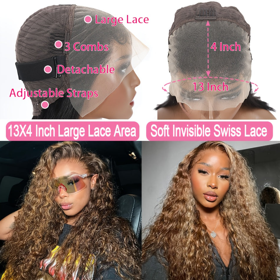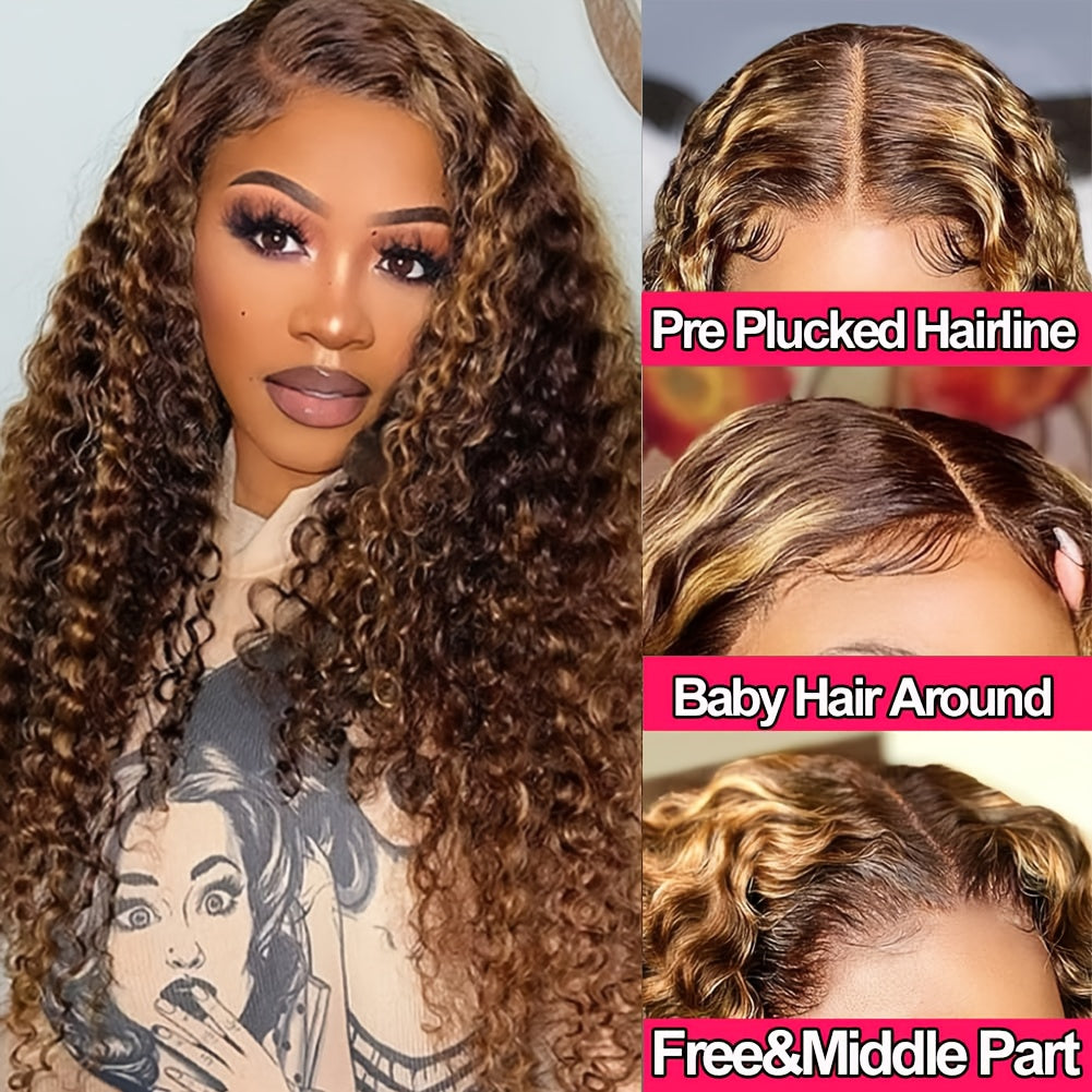 Highlight Ombre Lace Front Wig Human Hair 13x4 HD Honey Blonde 4/27 Deep Wave Lace Frontal Wigs Glueless Wigs Human Hair Pre Plucked With Baby Hair 250% Density