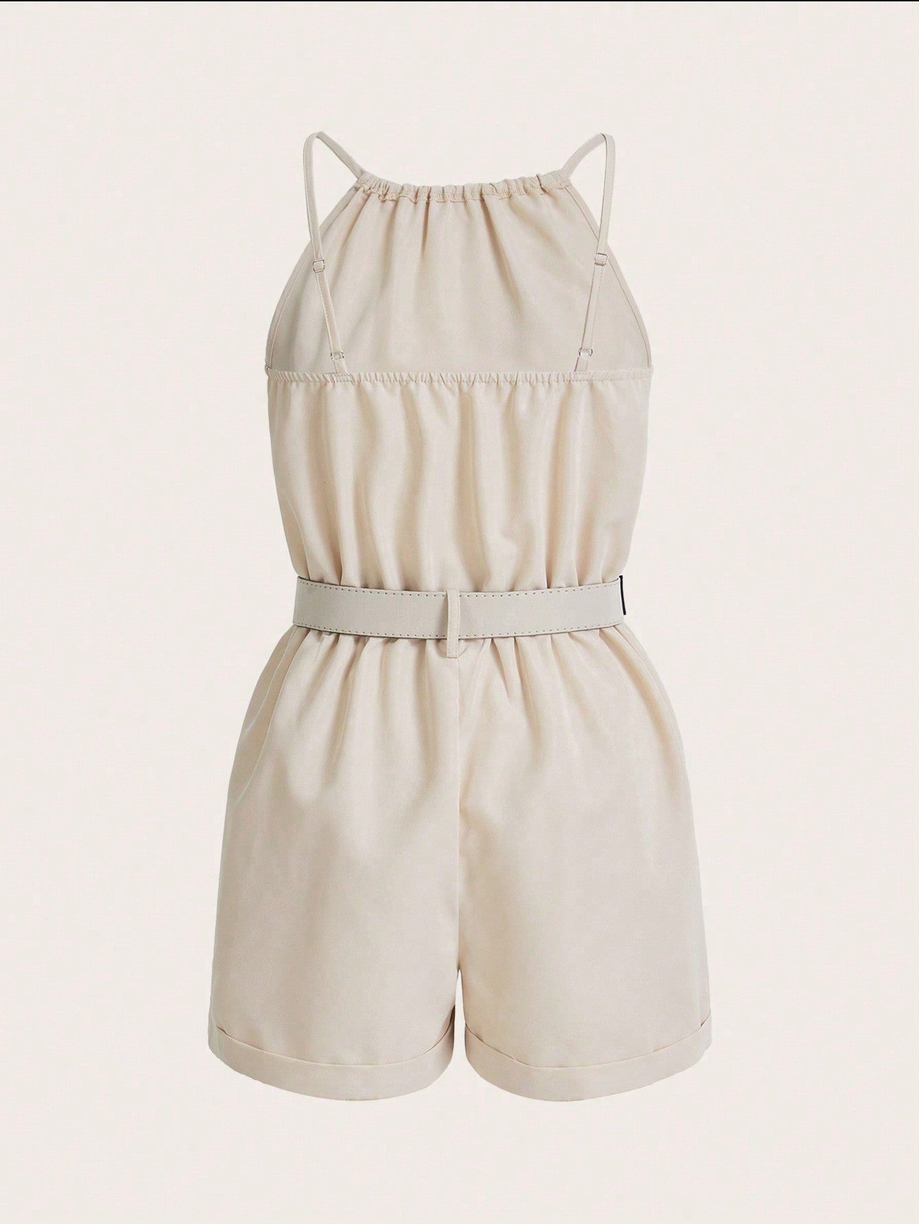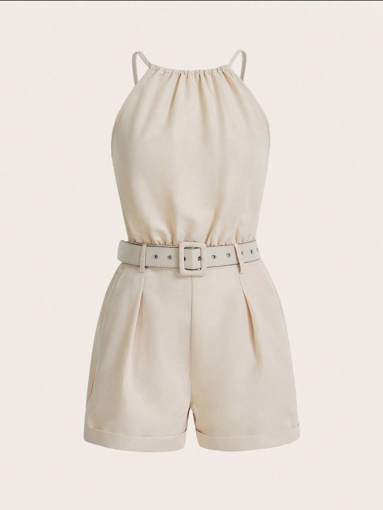 Holidaya Summer Casual Solid Color Scoop Neck Belted Jumpsuit