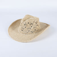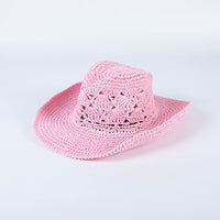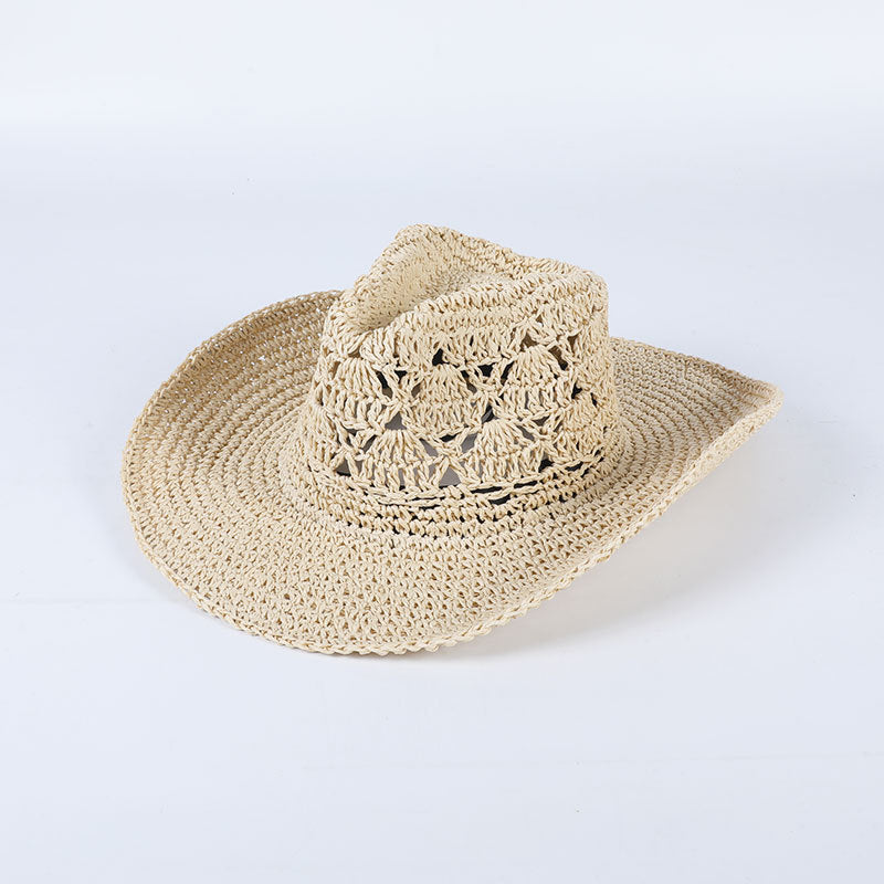 Hollow Out Cutout out Crocheted Big Brim Fedora Hat British Retro Straw Cowboy Hat Summer Outdoor Vacation Beach Hat Children