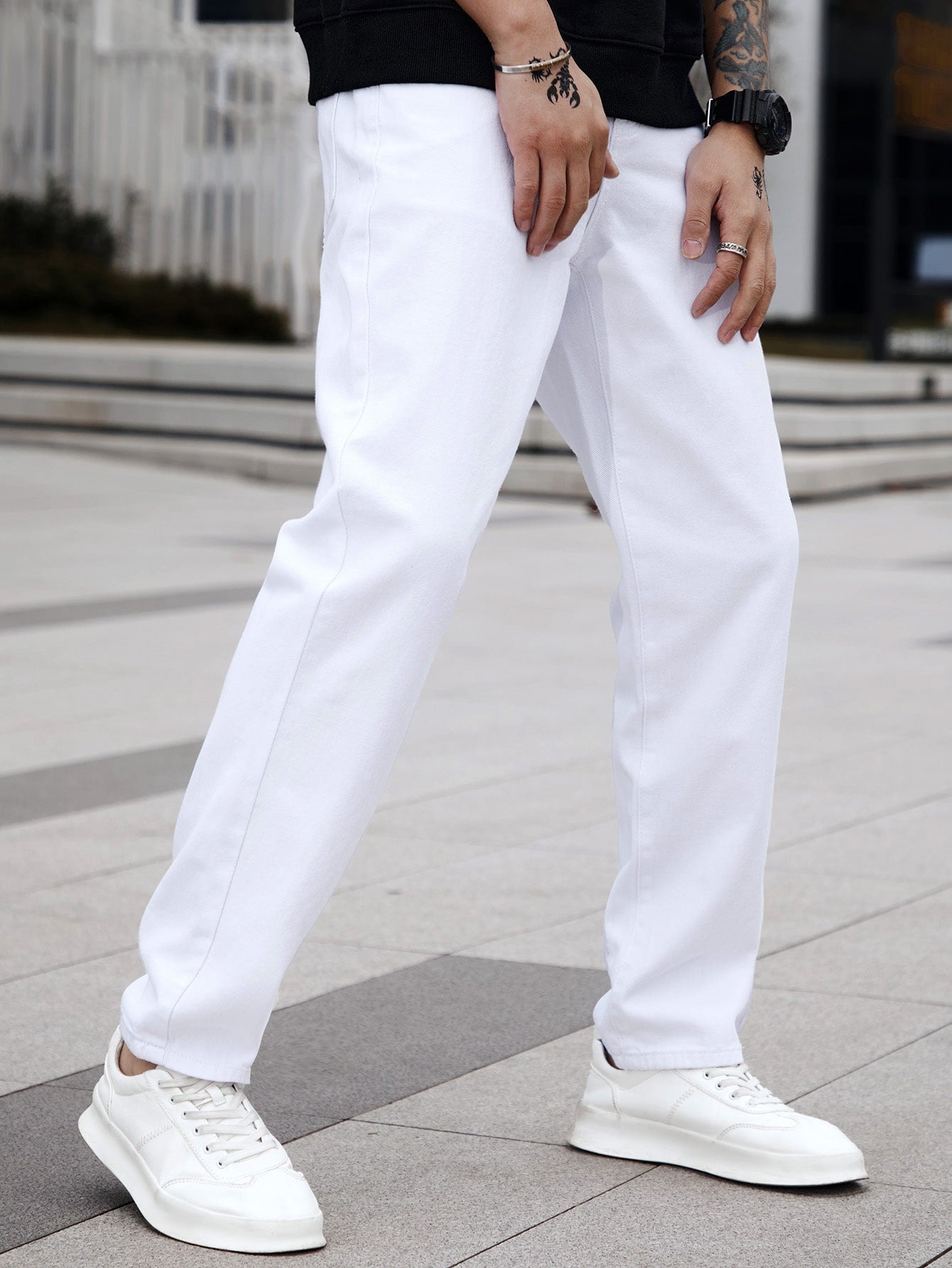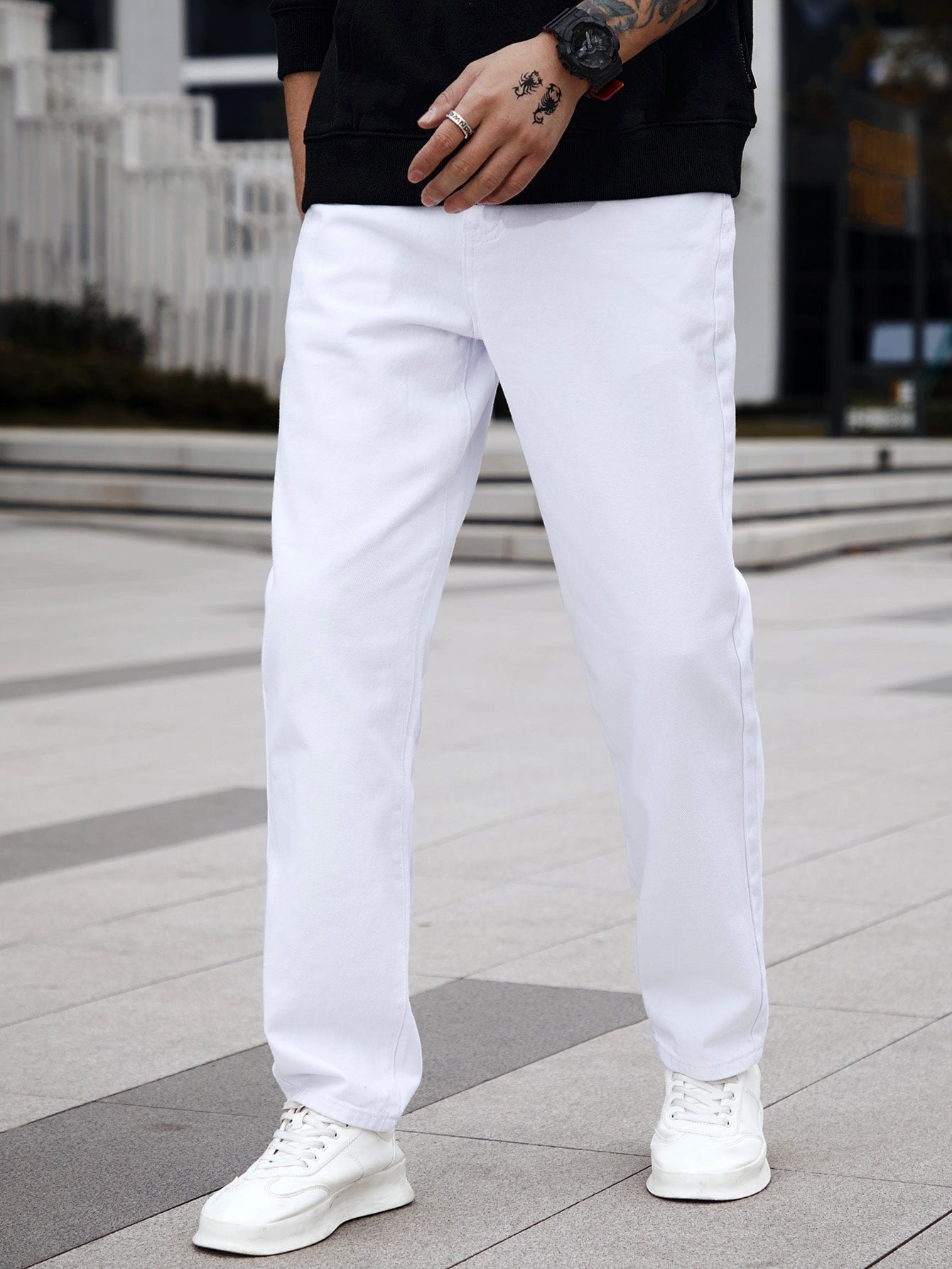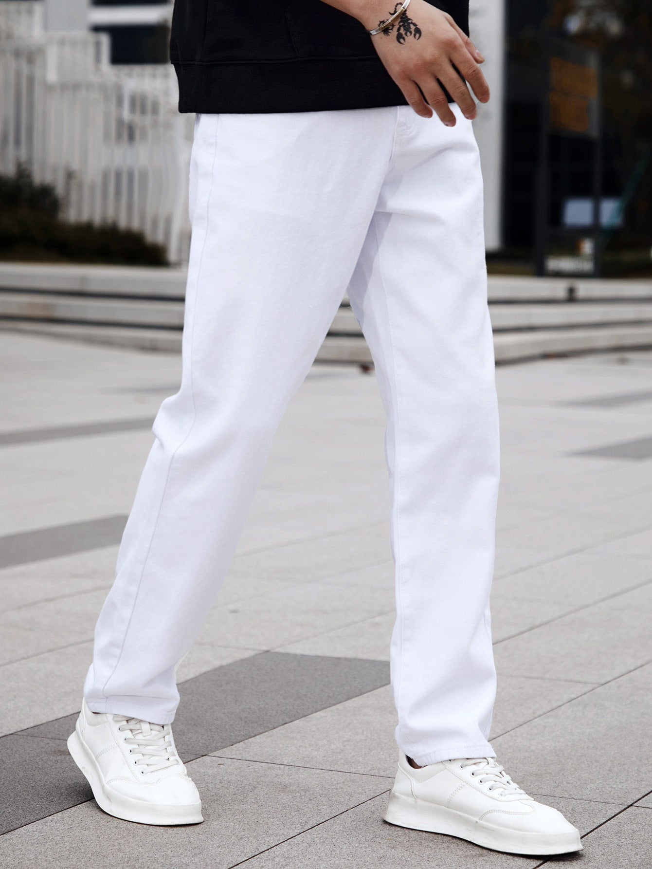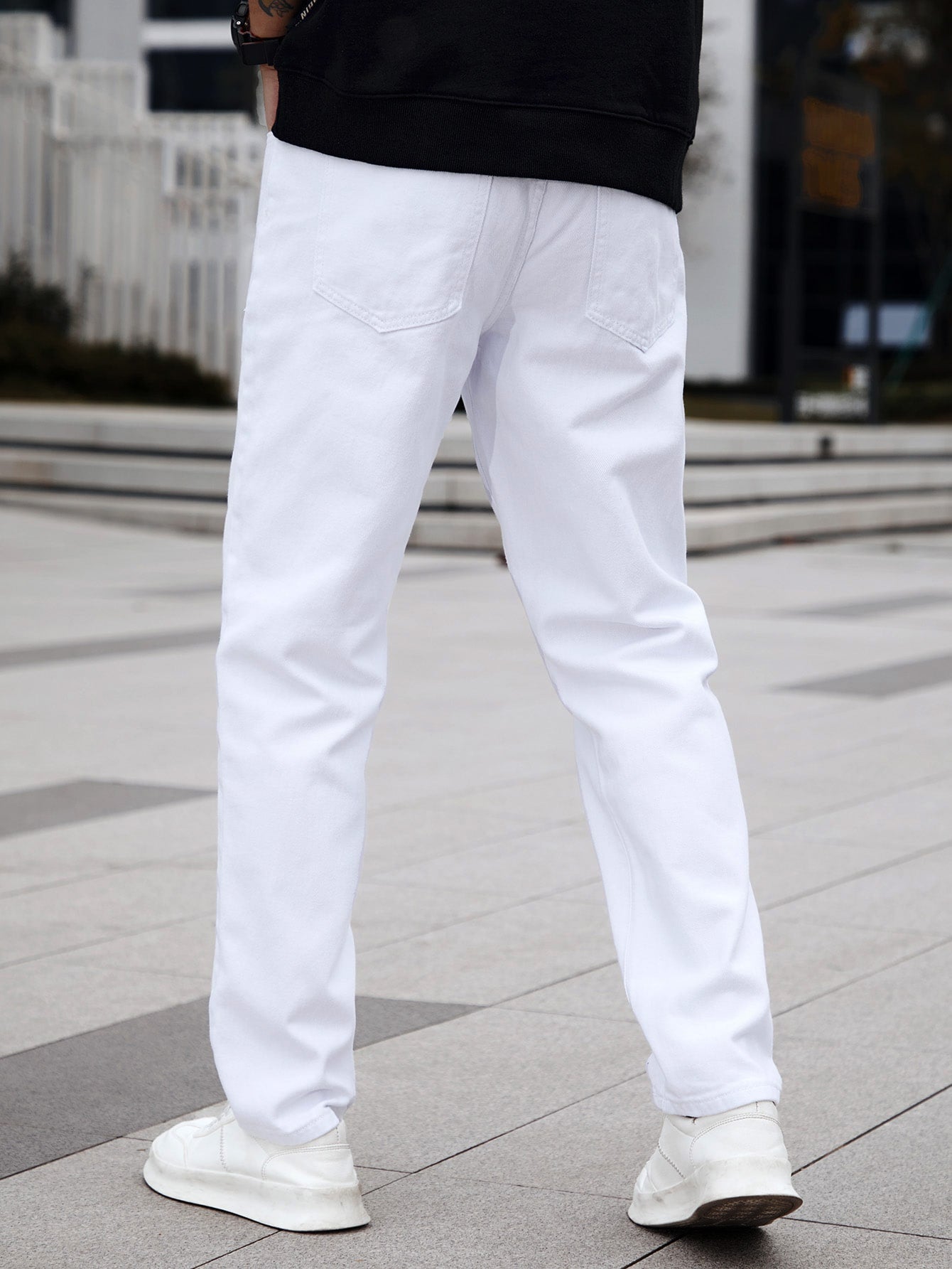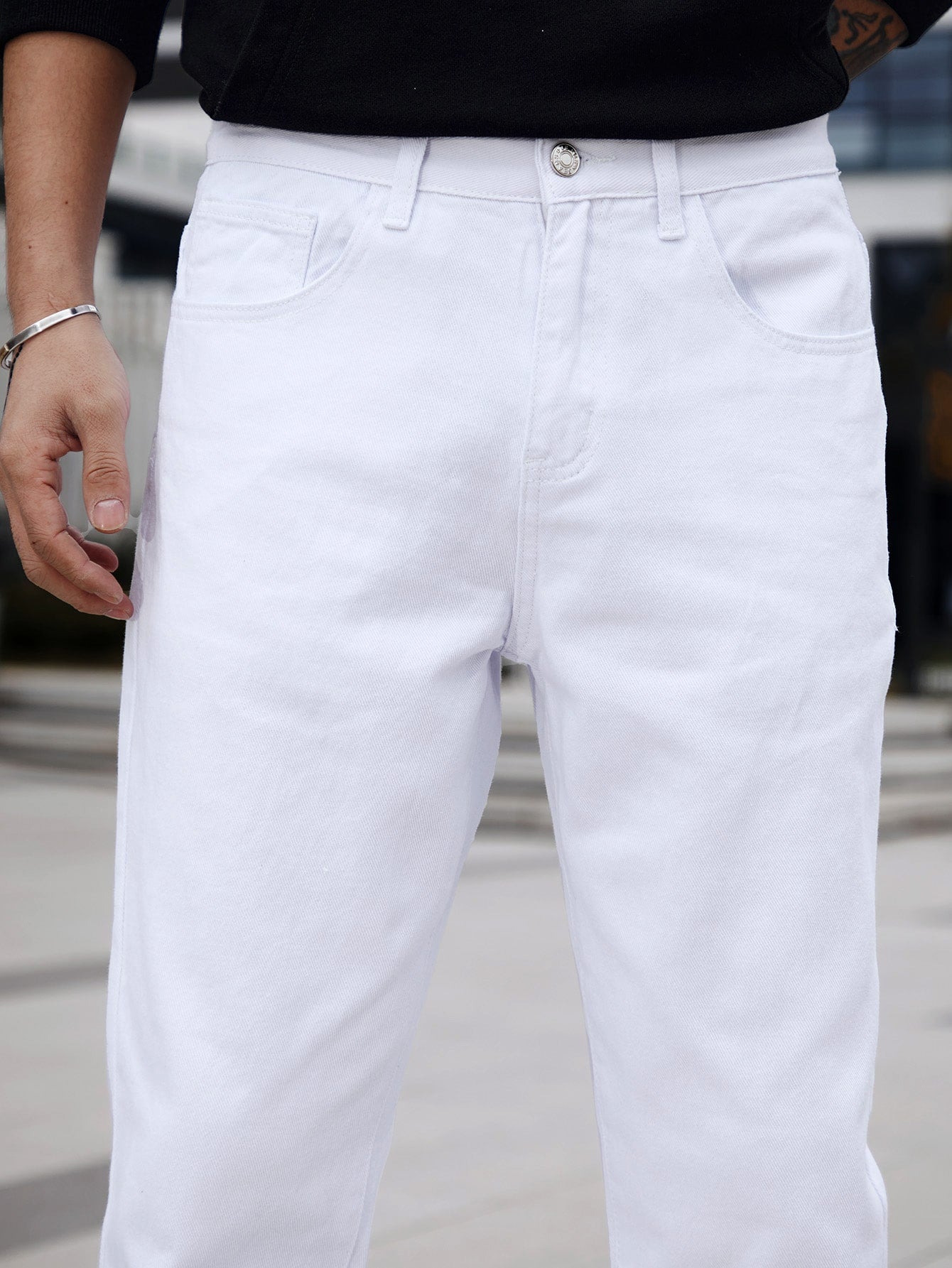Homme Men Cotton Solid Straight Leg Jeans Long Washed Light Jean Cargo Plain All White Work Basic Husband