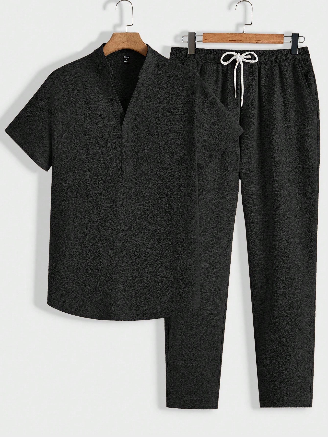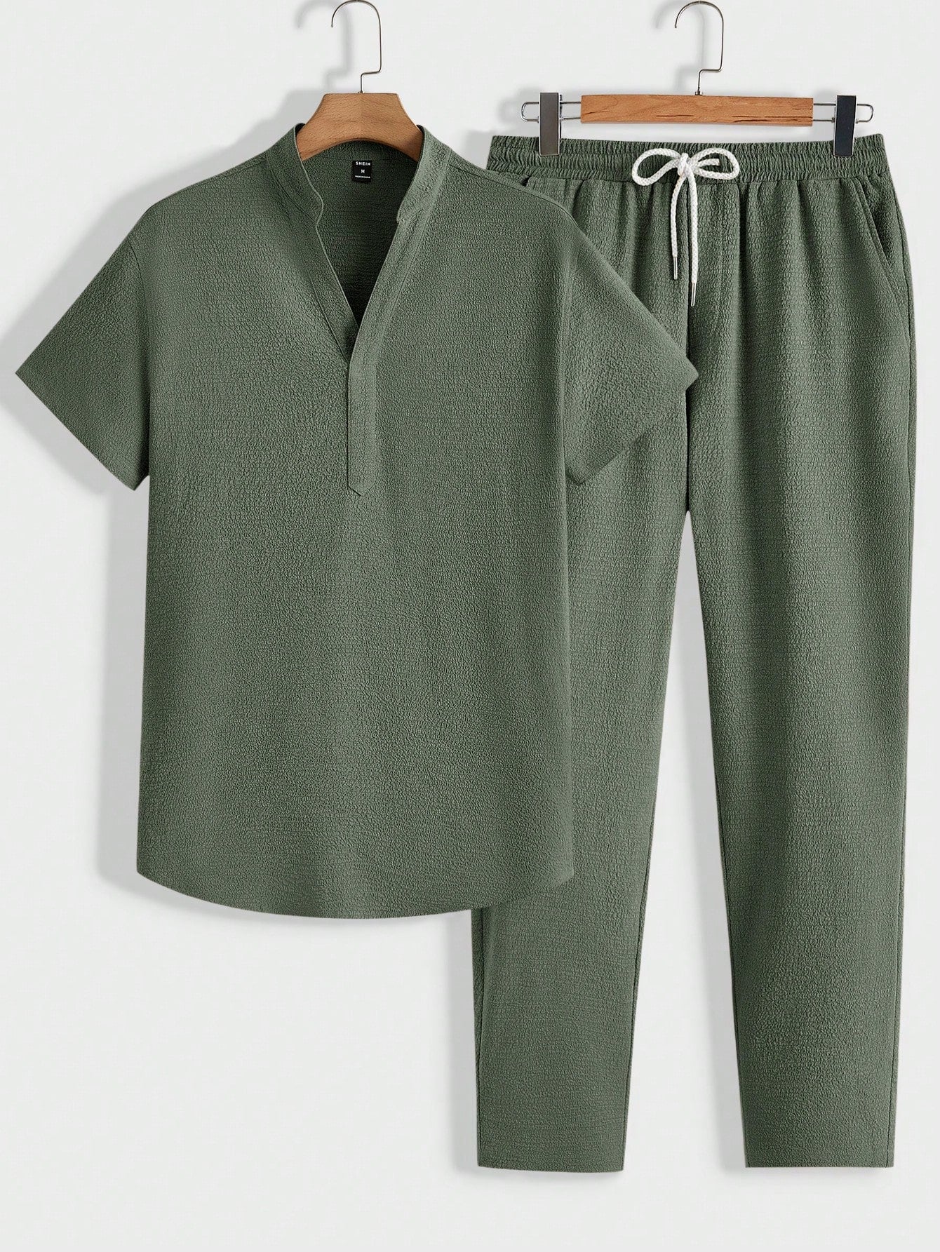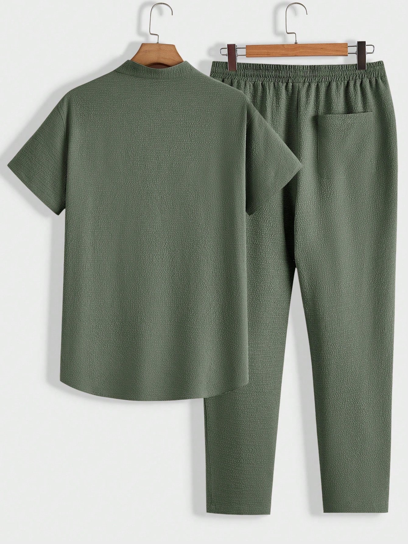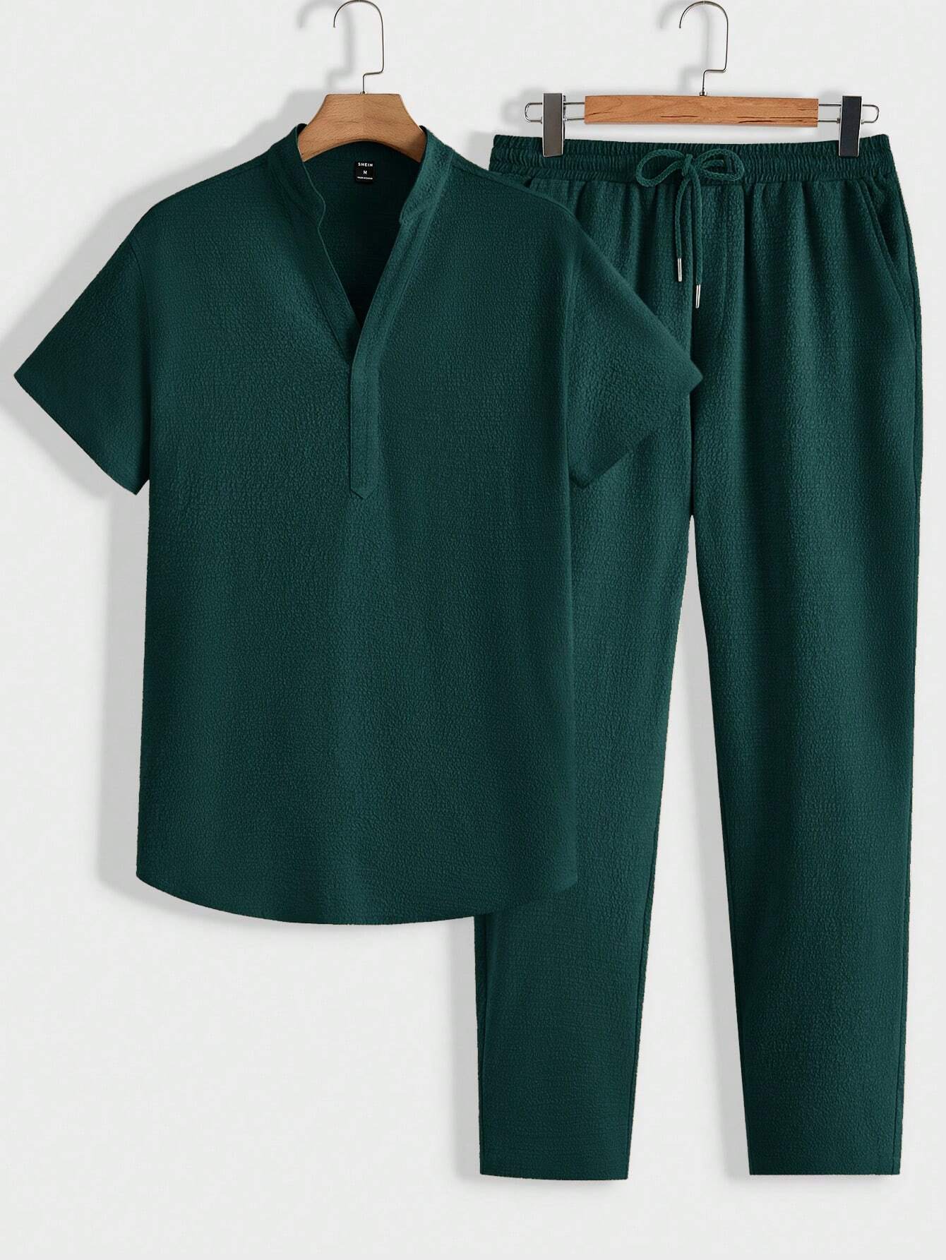 Homme Men Loose Solid Texture Short-Sleeved Top And Pants Casual Summer Set
