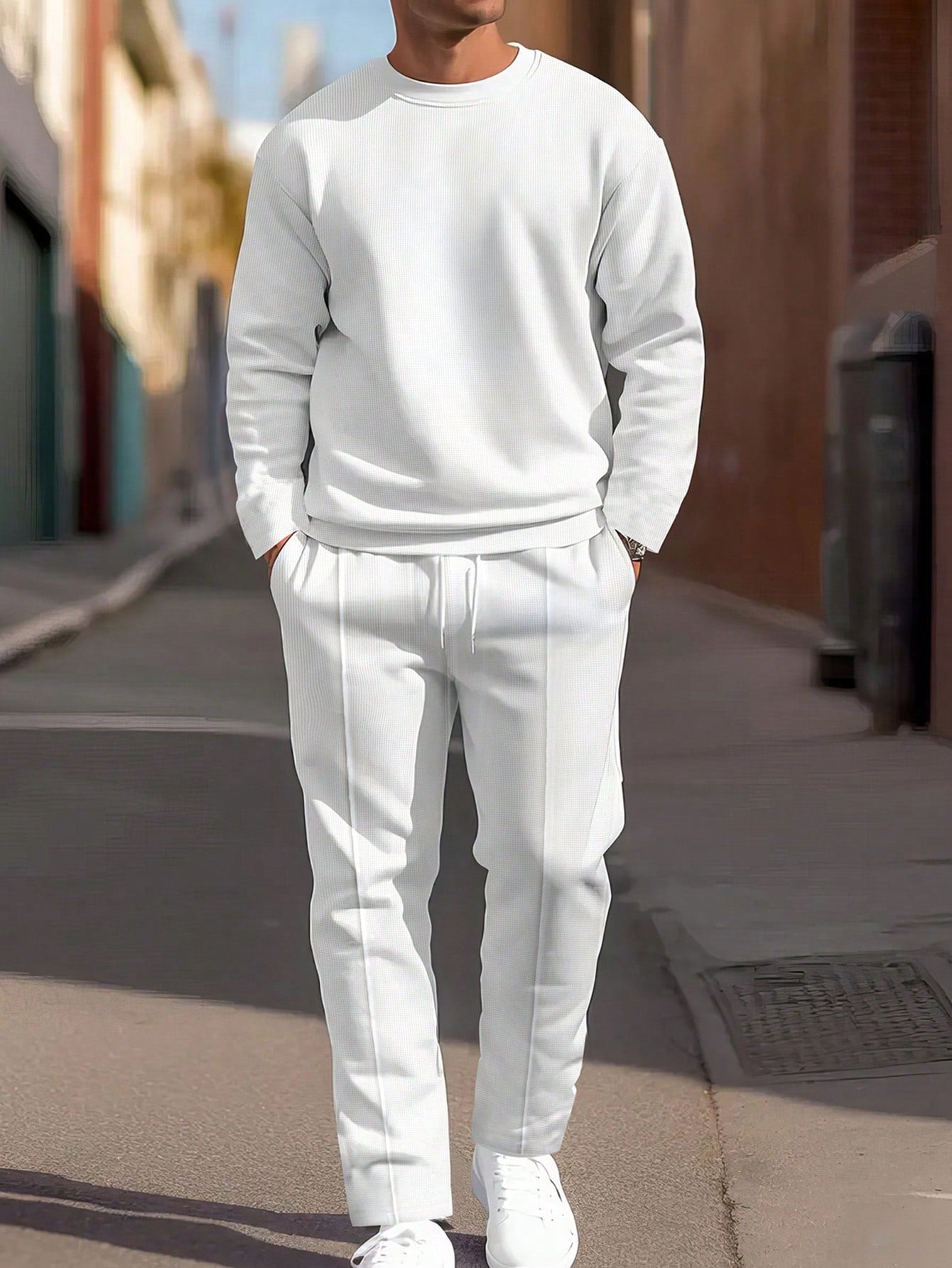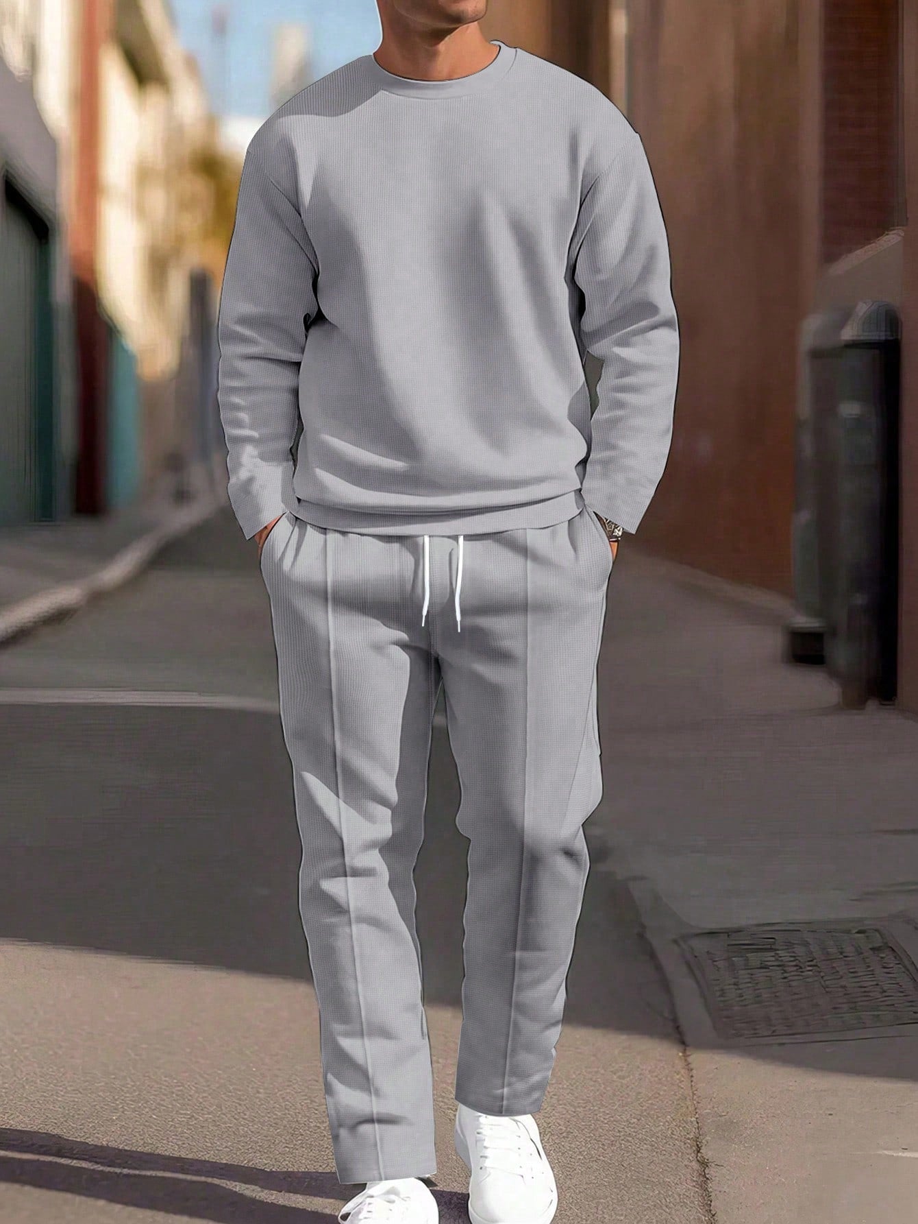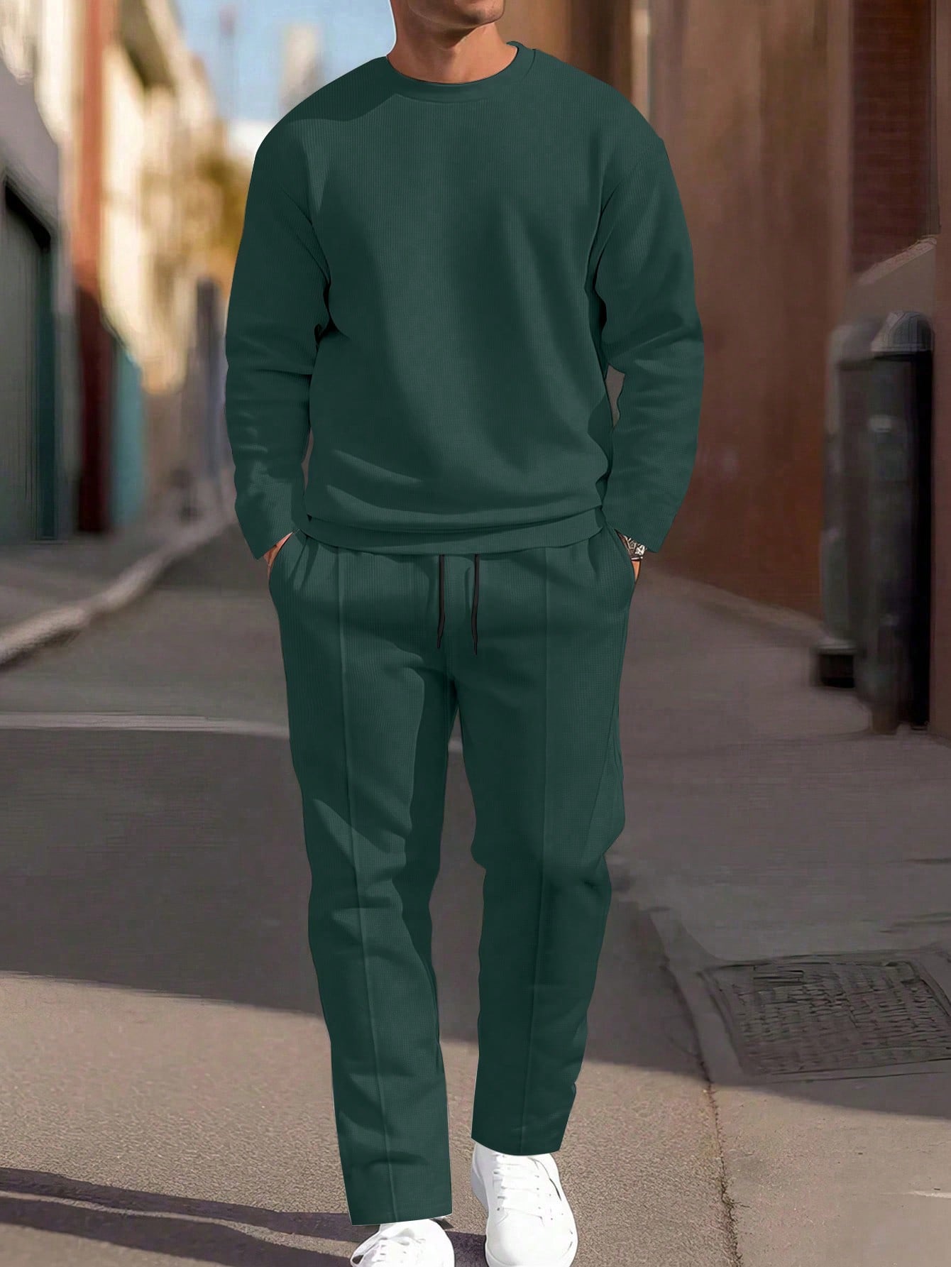 Homme Men's Casual Solid Color Sweatshirt And Sweatpants Set, For Sports And Daily Wear, Autumn