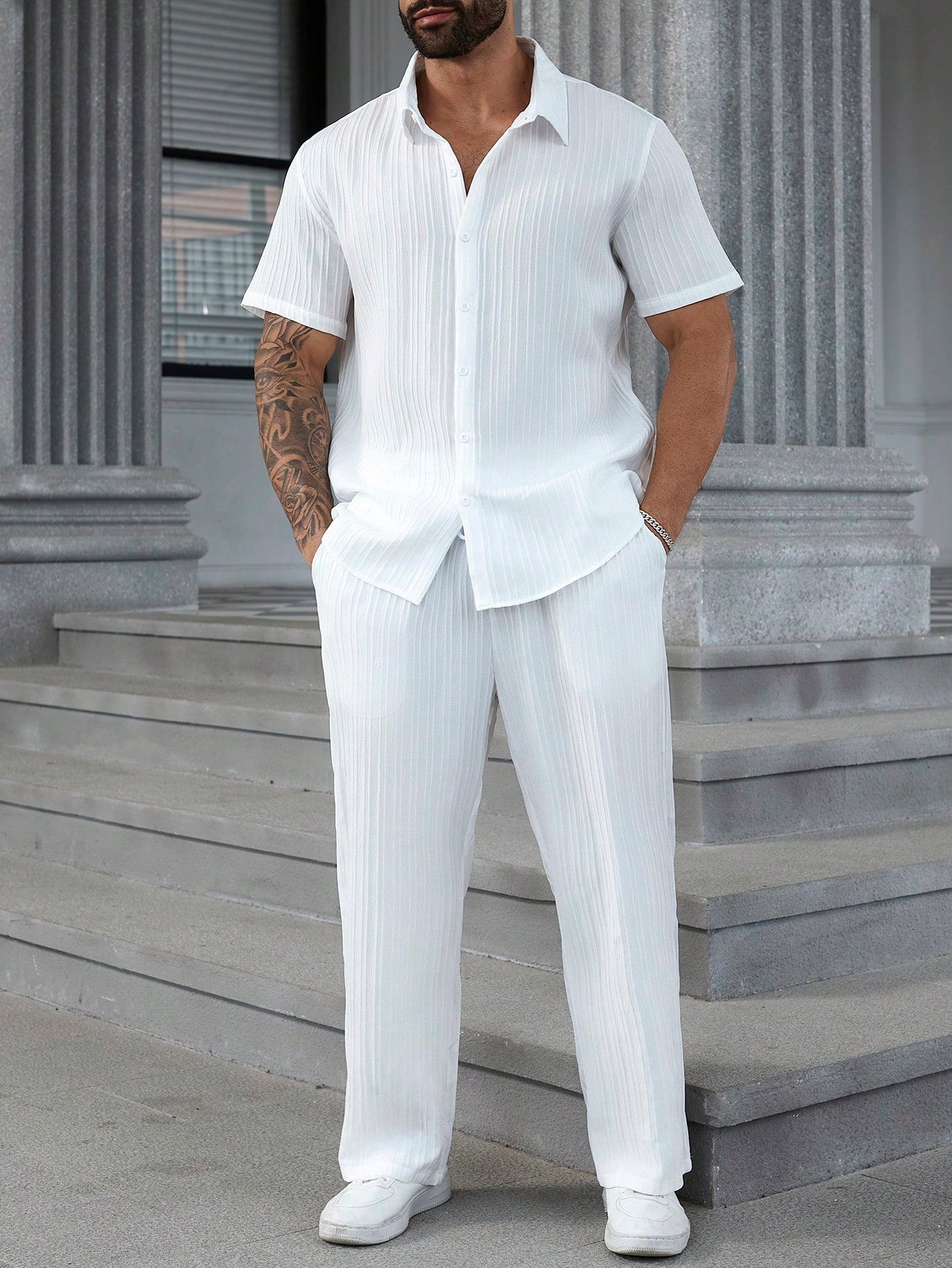 Homme Men's Plus Size Solid Color Simple Daily Two-Piece Outfit, Plain Casual Set, Going Out