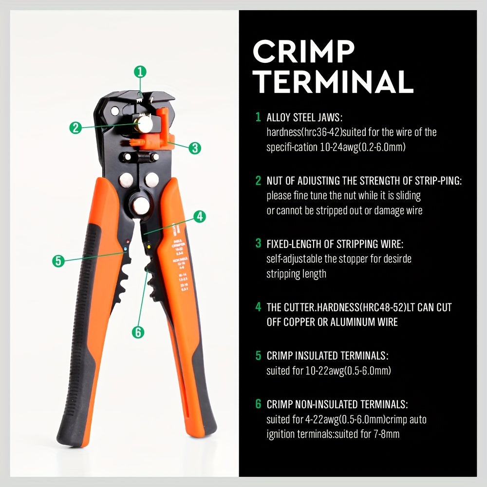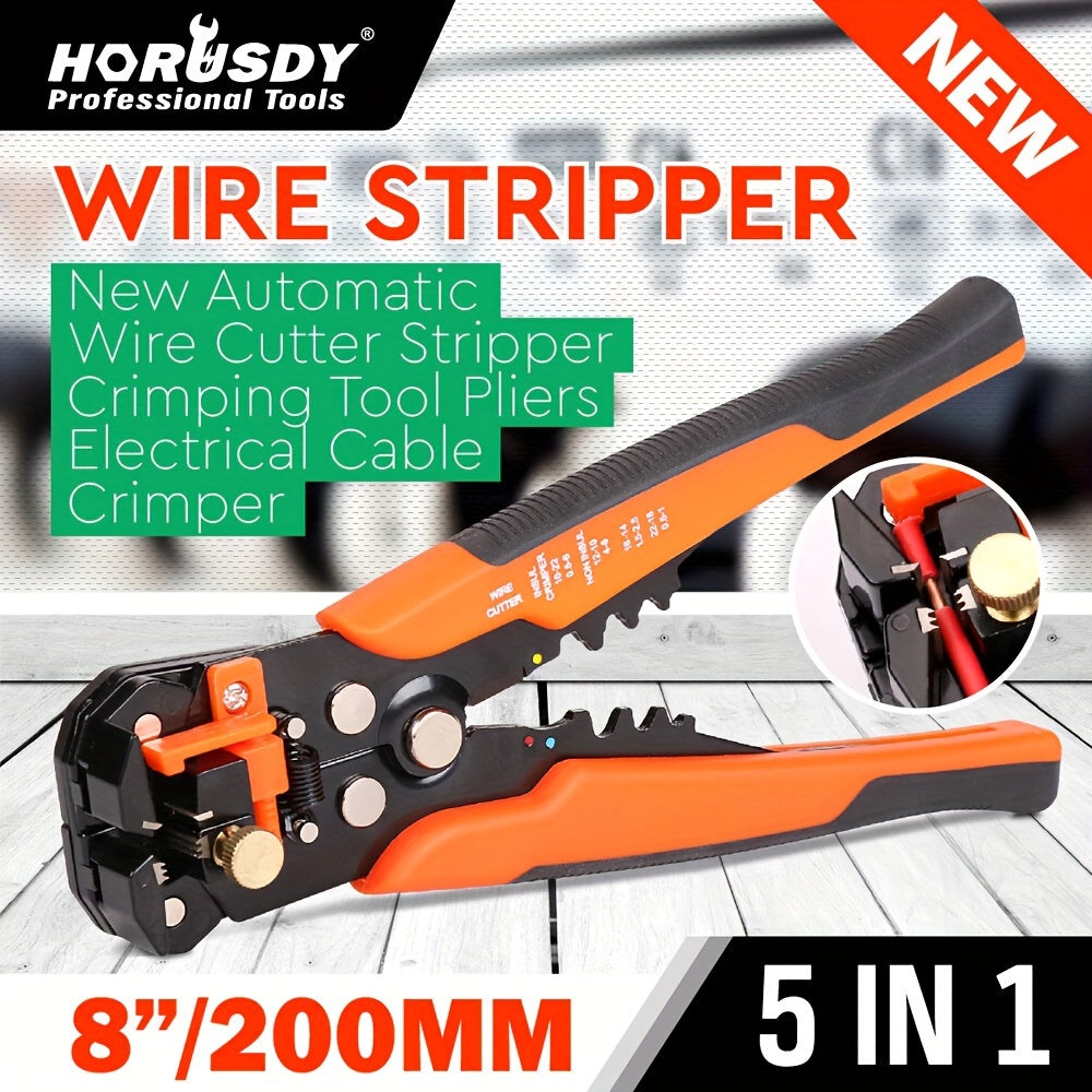 HORUSDY 8" Pince à dénuder auto-ajustable pour fil d'isolation, pince à sertir, outils à dénuder 5 en 1