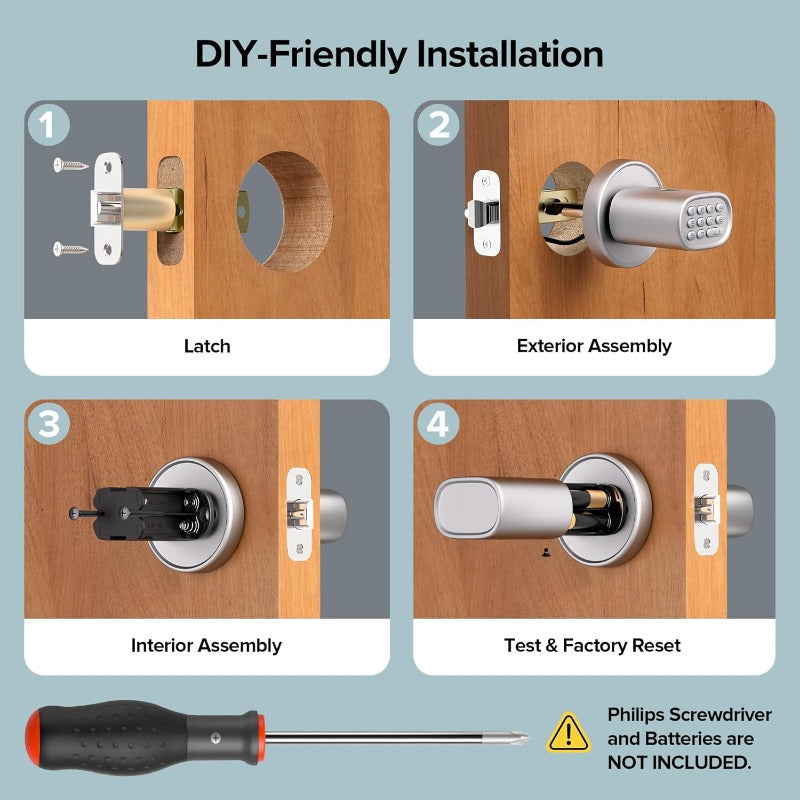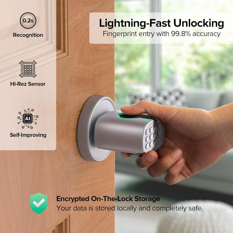 Hot SaleKeyless Entry Door Lock Fingerprint Door Lock with Keypad Biometric Door Knob AutoLock for Interior Doors Thickness up to 21 4" Bedroom Home Office Garage 4xAA Alkaline MD1 SilverUS Warehouse