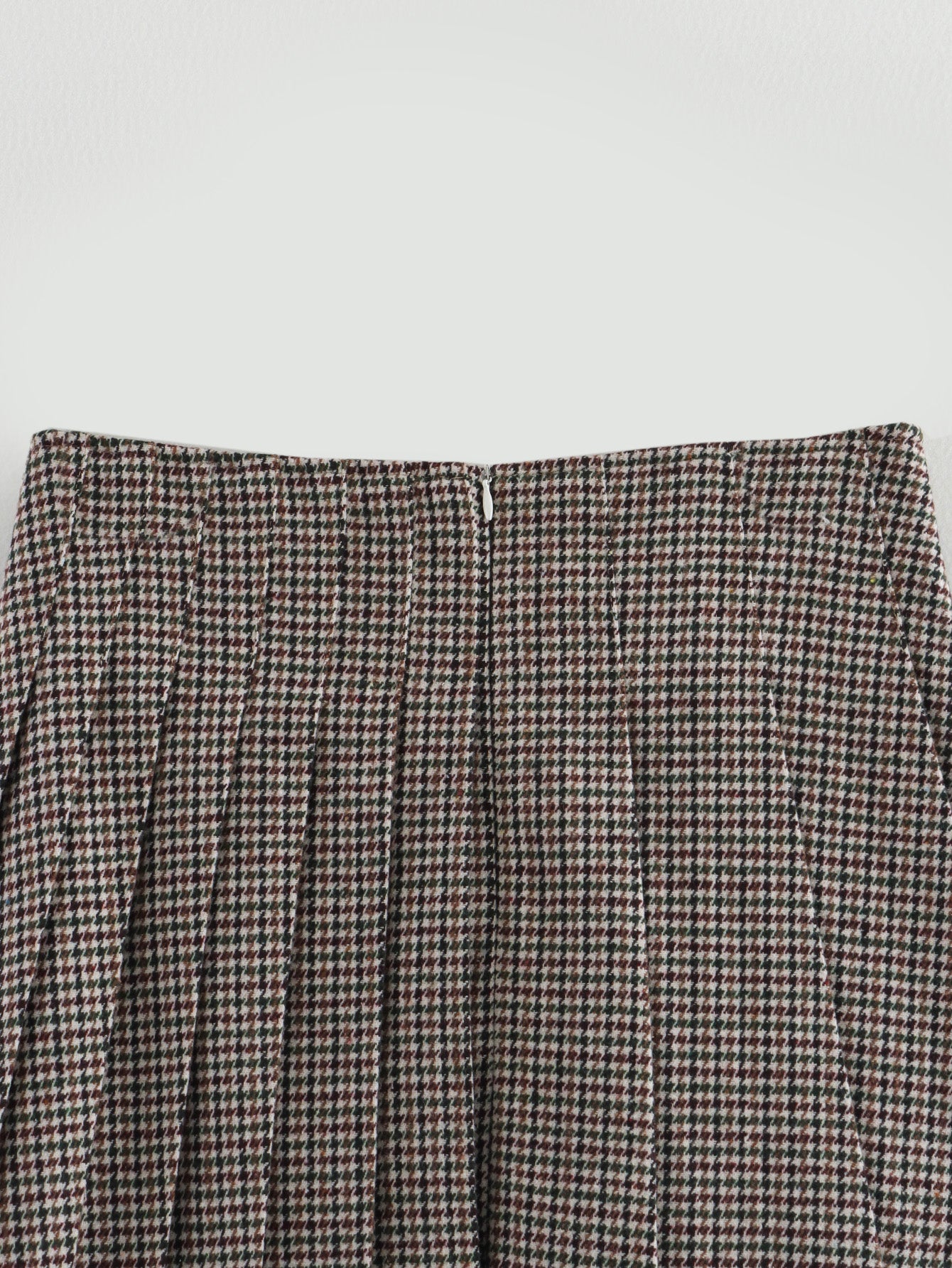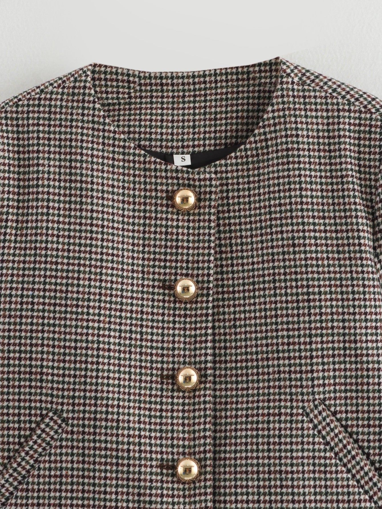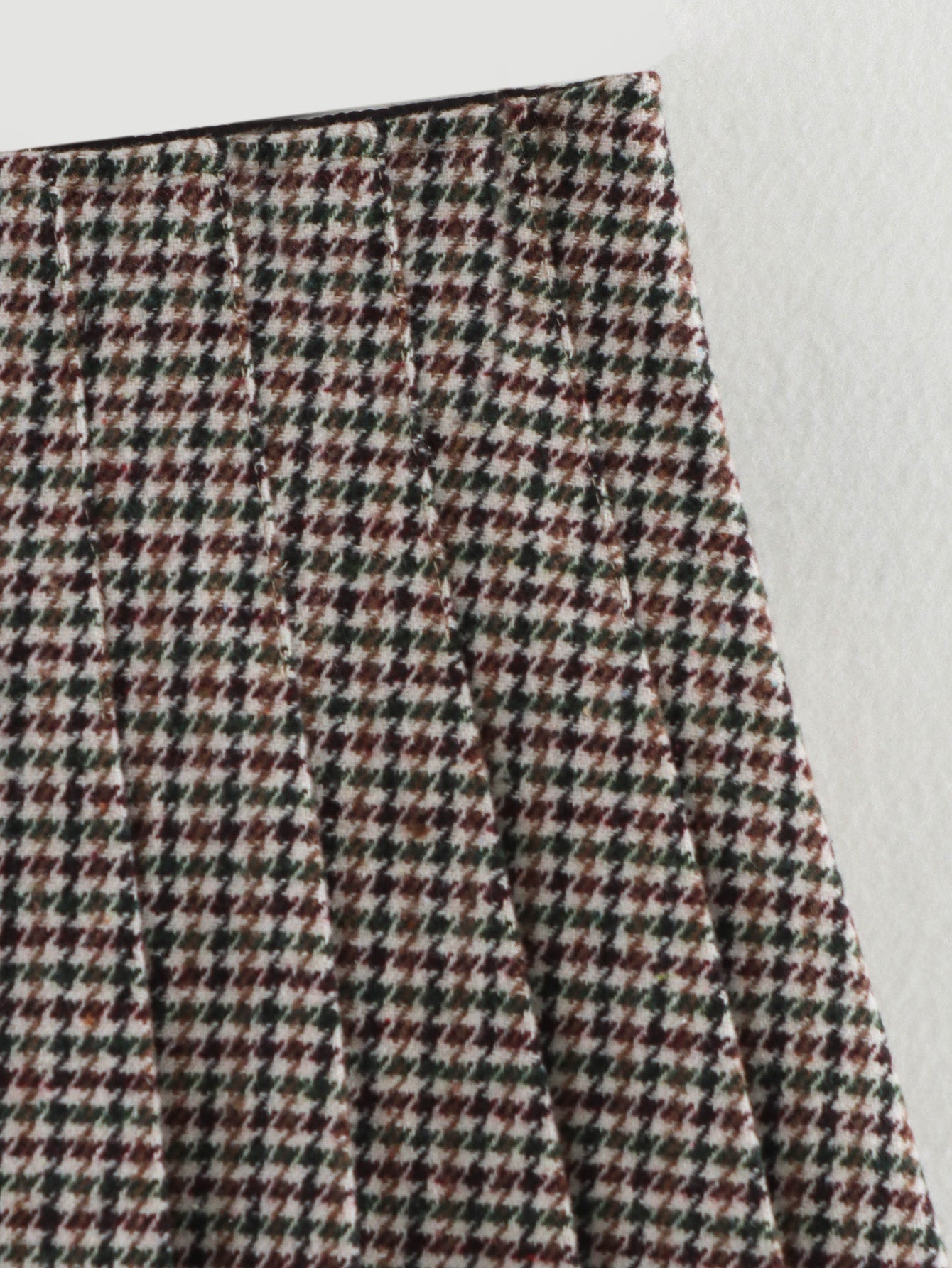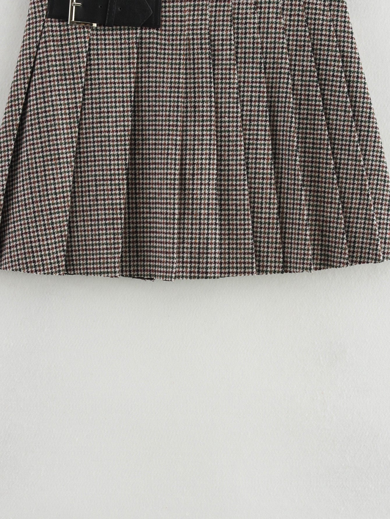 Houndstooth Jacket Coat Women High Waist Skirt Two Piece Set