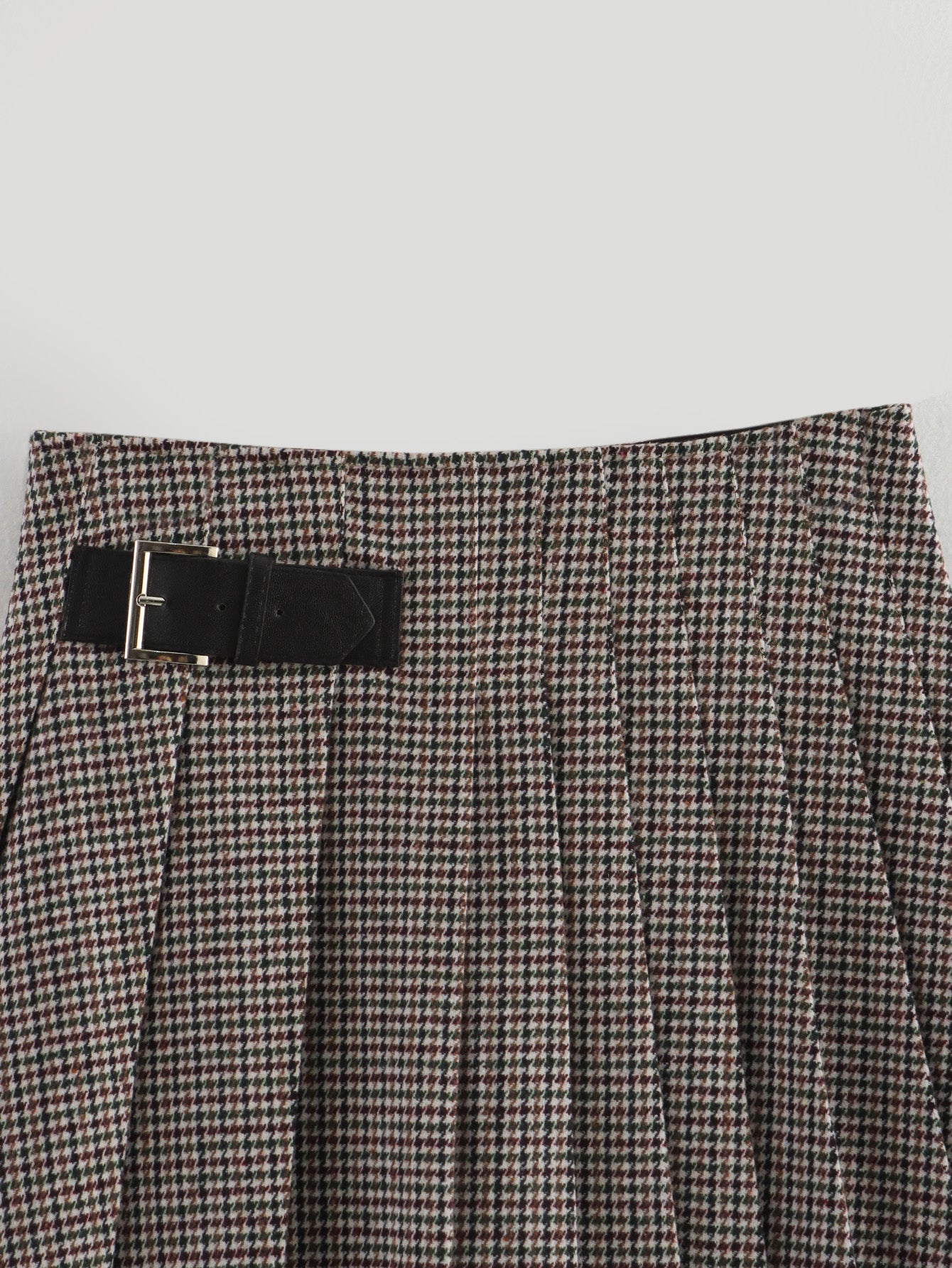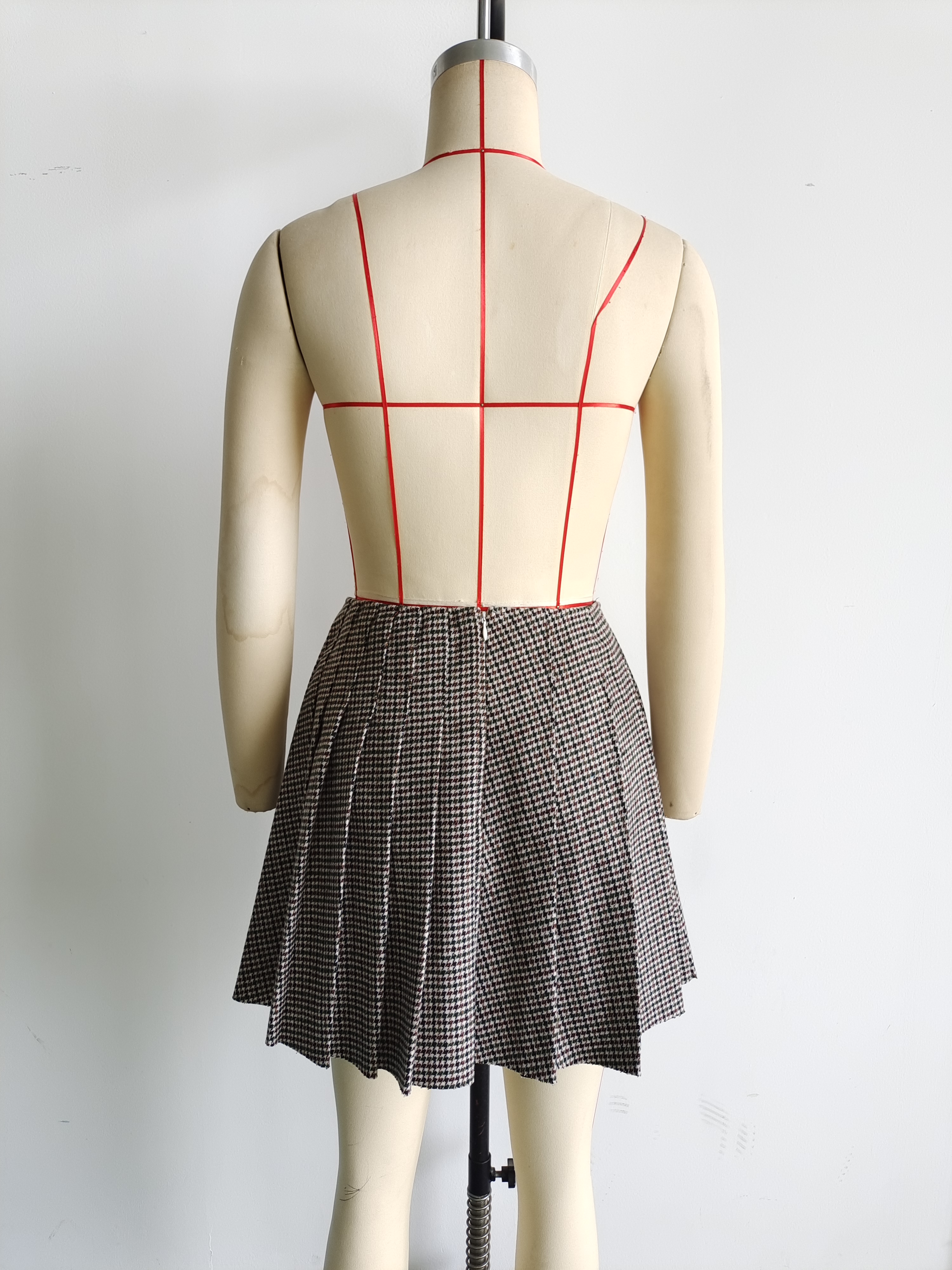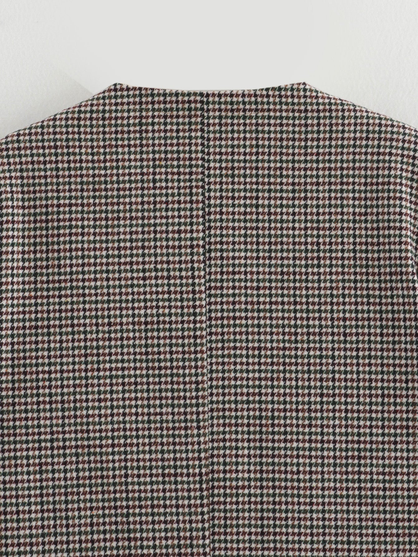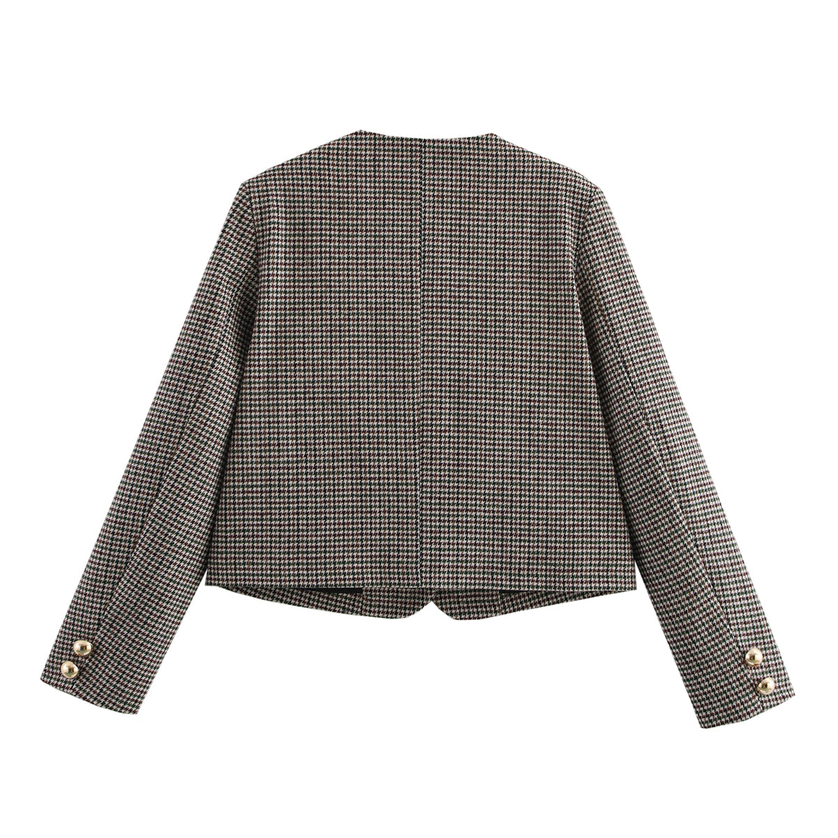 Houndstooth Jacket Coat Women High Waist Skirt Two Piece Set