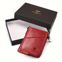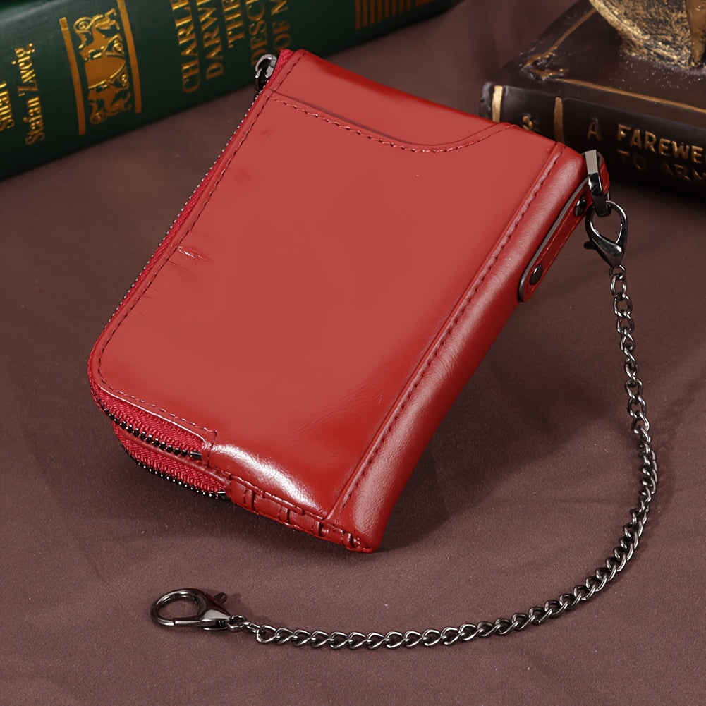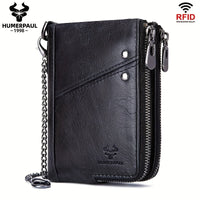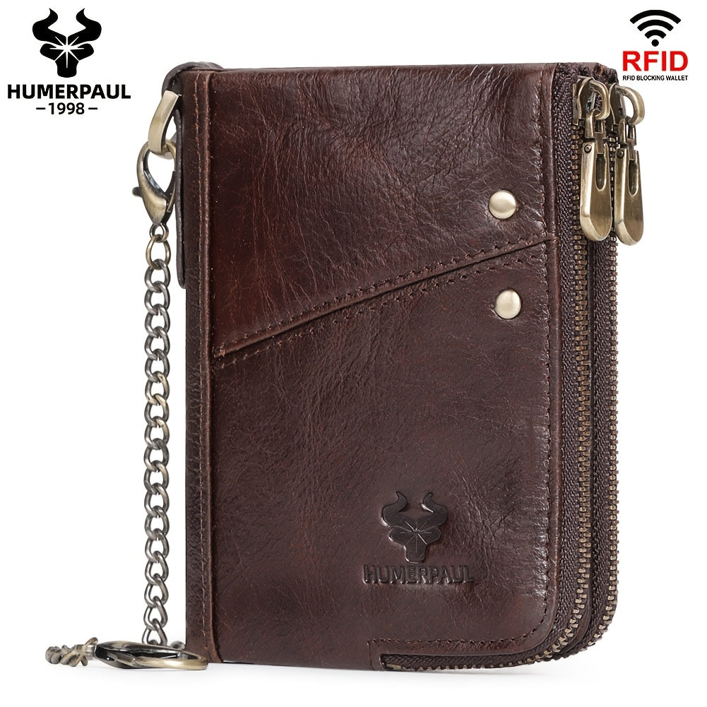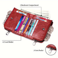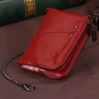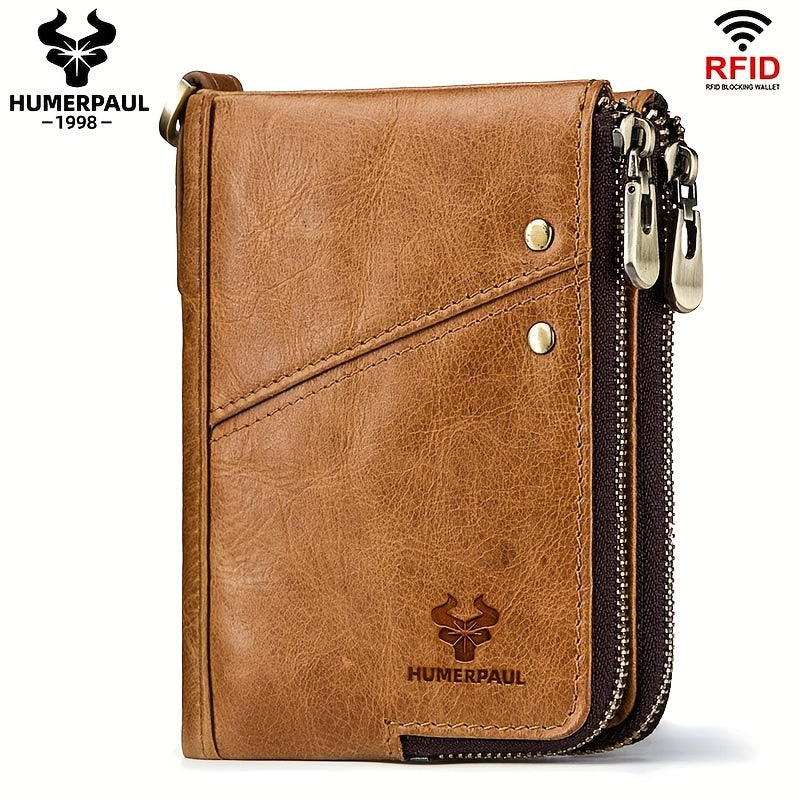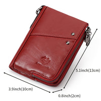 HUMEI Genuine Leather RFID Blocking Wallet for Women - Red Double Zipper Coin Purse with Card Holder, Compact Clutch Bag, Elegant Design, Multiple Compartments, Secure Snap Closure, Card Holder Wallet