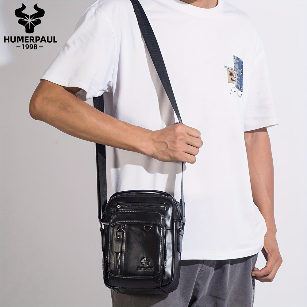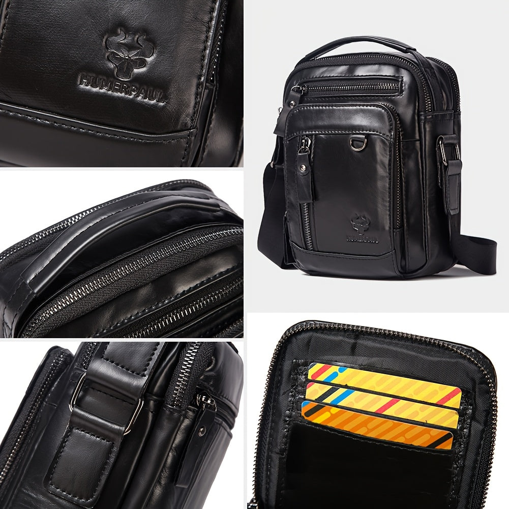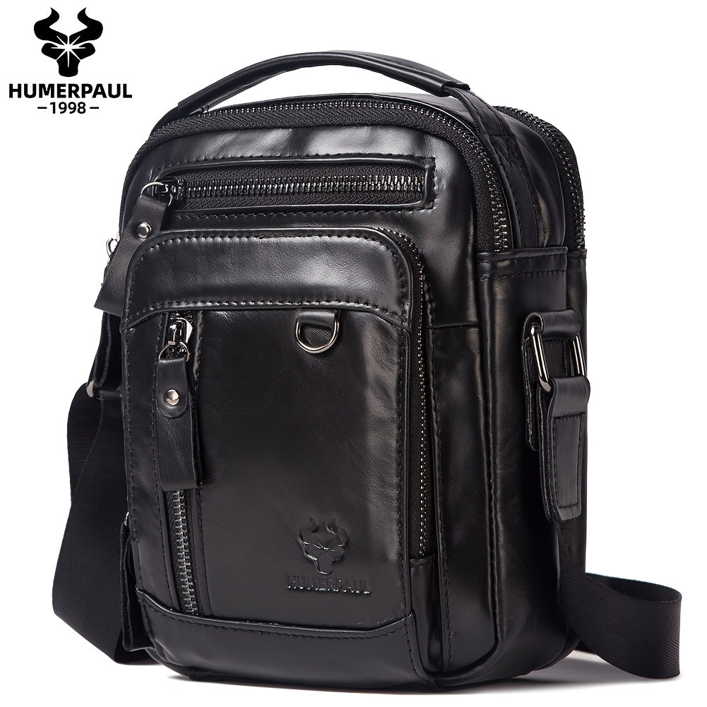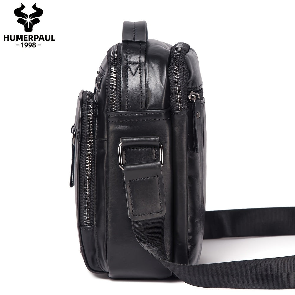 HUMERPAUL Men's Genuine Genuine Leather Shoulder Bag - Vertical Black Business Briefcase with Multiple Compartments, Casual Crossbody for Work & Everyday Use, Everyday Shoulder Bag | Functional Design | Topgrain Genuine Leather, Genuine Leather Purse
