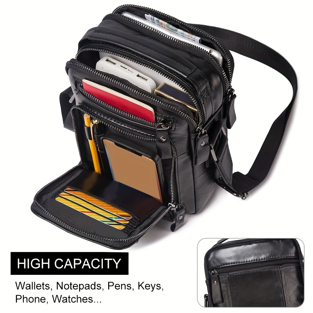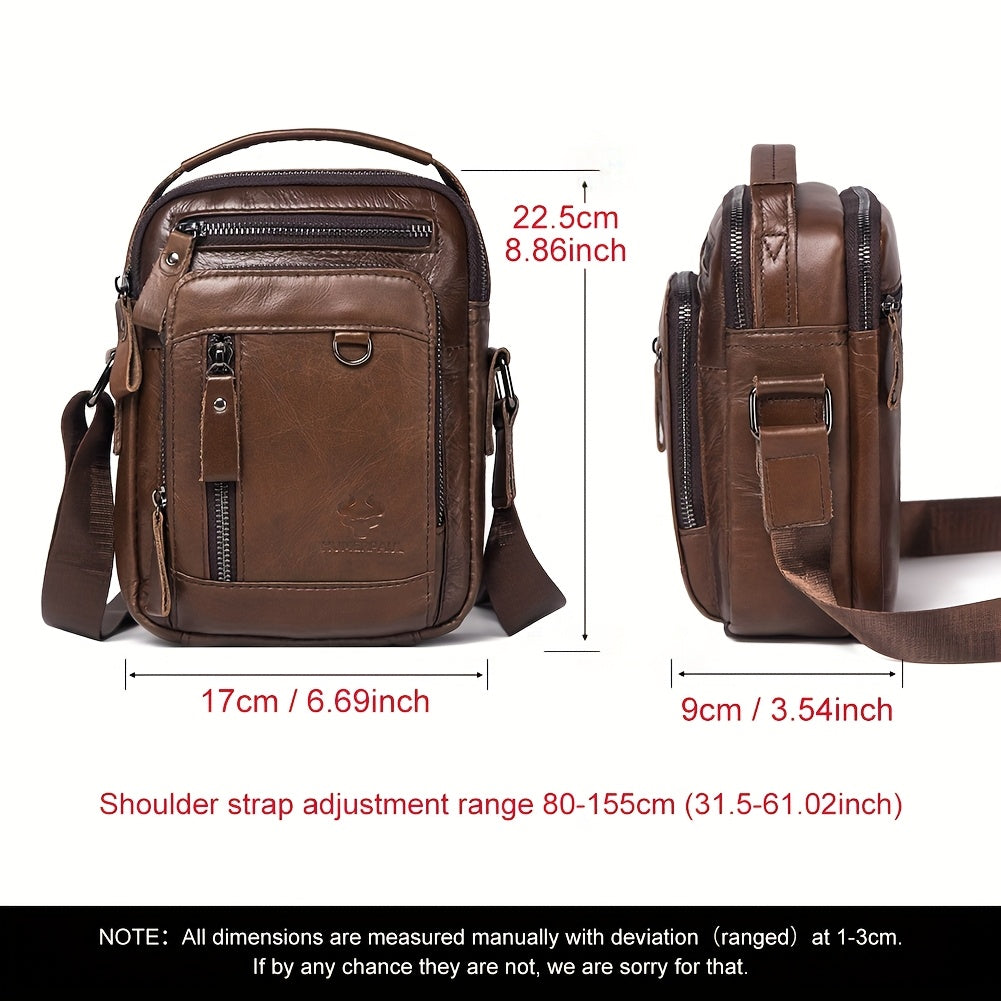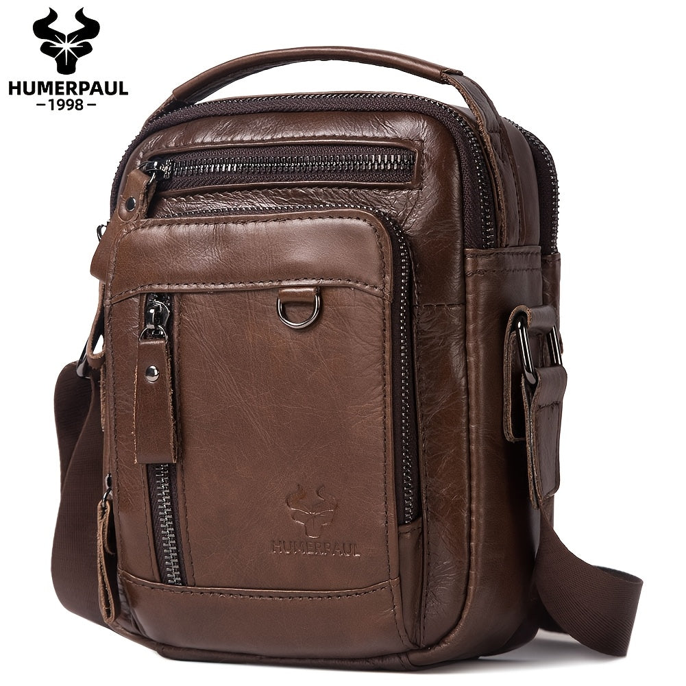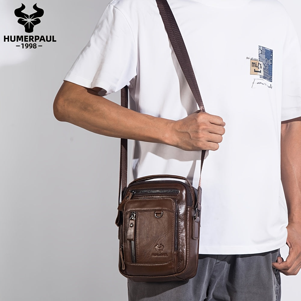 HUMERPAUL Men's Genuine Genuine Leather Shoulder Bag - Vertical Black Business Briefcase with Multiple Compartments, Casual Crossbody for Work & Everyday Use, Everyday Shoulder Bag | Functional Design | Topgrain Genuine Leather, Genuine Leather Purse