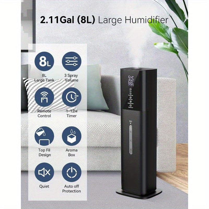 Humidifiers for Bedroom, 2.11Gal 8L Quiet Humidifiers for Large Room with Timer, 360Nozzle, 3 Speed Soundwave technology Cool Mist Humidifier with Humidistat for Baby Home Adults Plants