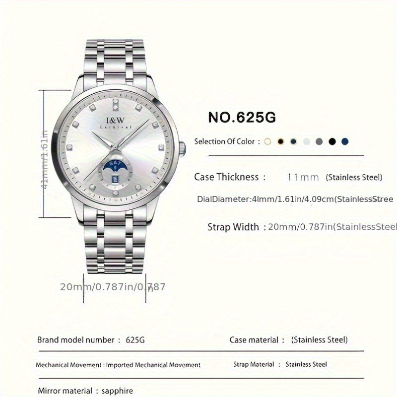 [I&W Carnival] Luxury Brand Men'S Mechanical Watch, Automatic Winding Mechanical Watch, Festival Gift, Without Battery