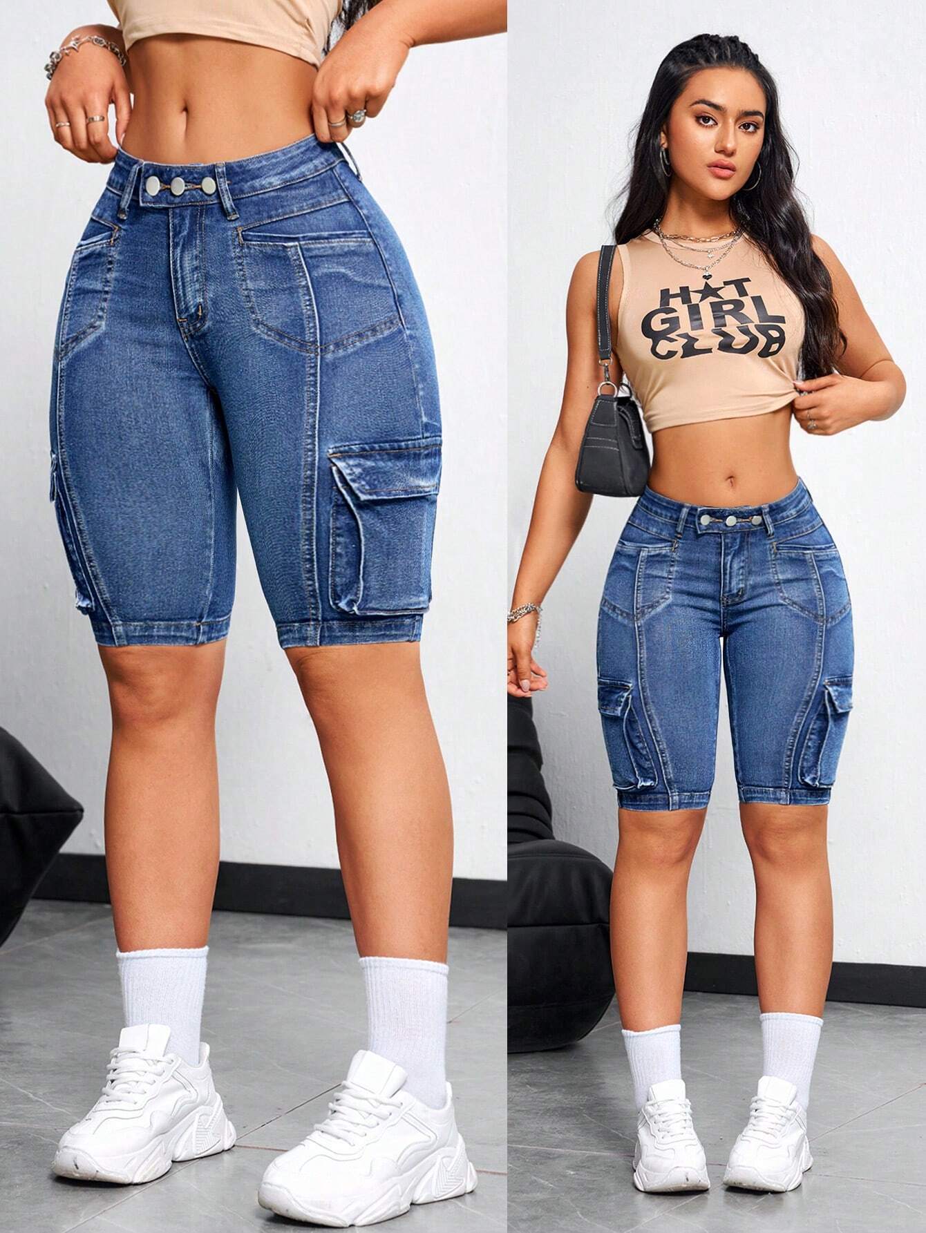 ICON Women's Casual Summer Denim Shorts With Pocket Design