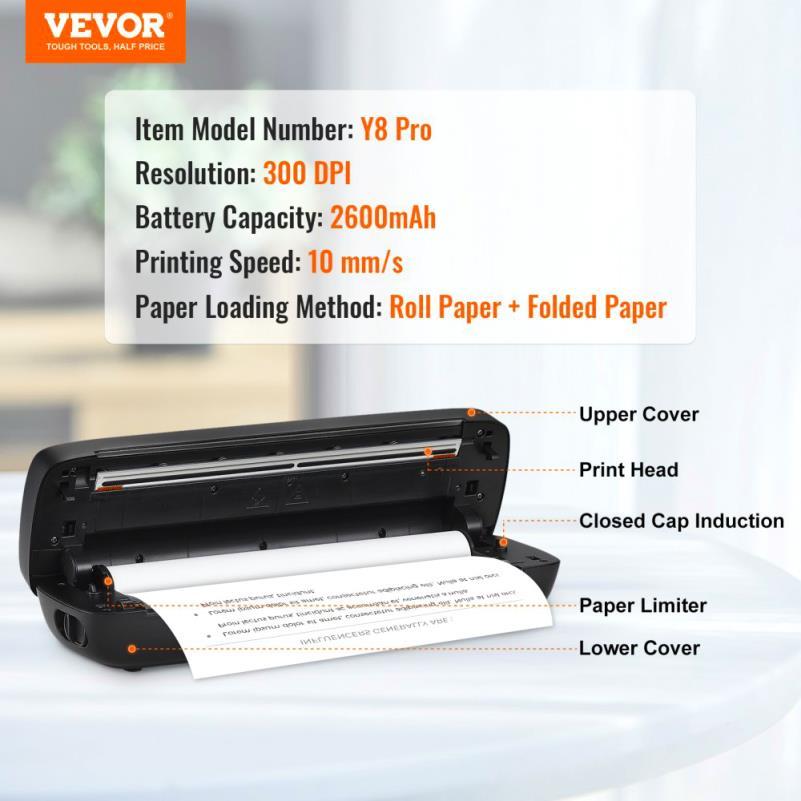 Imprimante Thermique Portable Batterie 2600mAh 300 DPI Imprimante Mobile Sans Encre pour Papier A4 A5 8.5x11 Compatible avec iOS Android Ordinateur Portable pour Utilisation en Voyage, Bureau et Maison