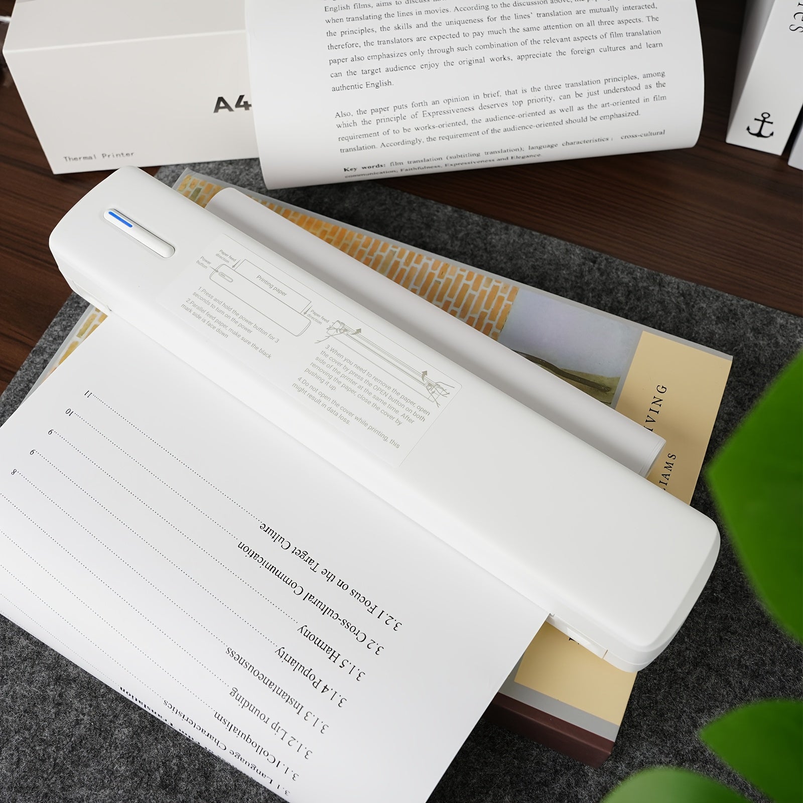 Imprimante thermique portable sans encre, impression thermique sans fil, imprimante thermique A4 sans encre, imprimante thermique portable compatible avec la taille de papier A4, imprimante thermique portable, imprimante thermique sans encre compatible av