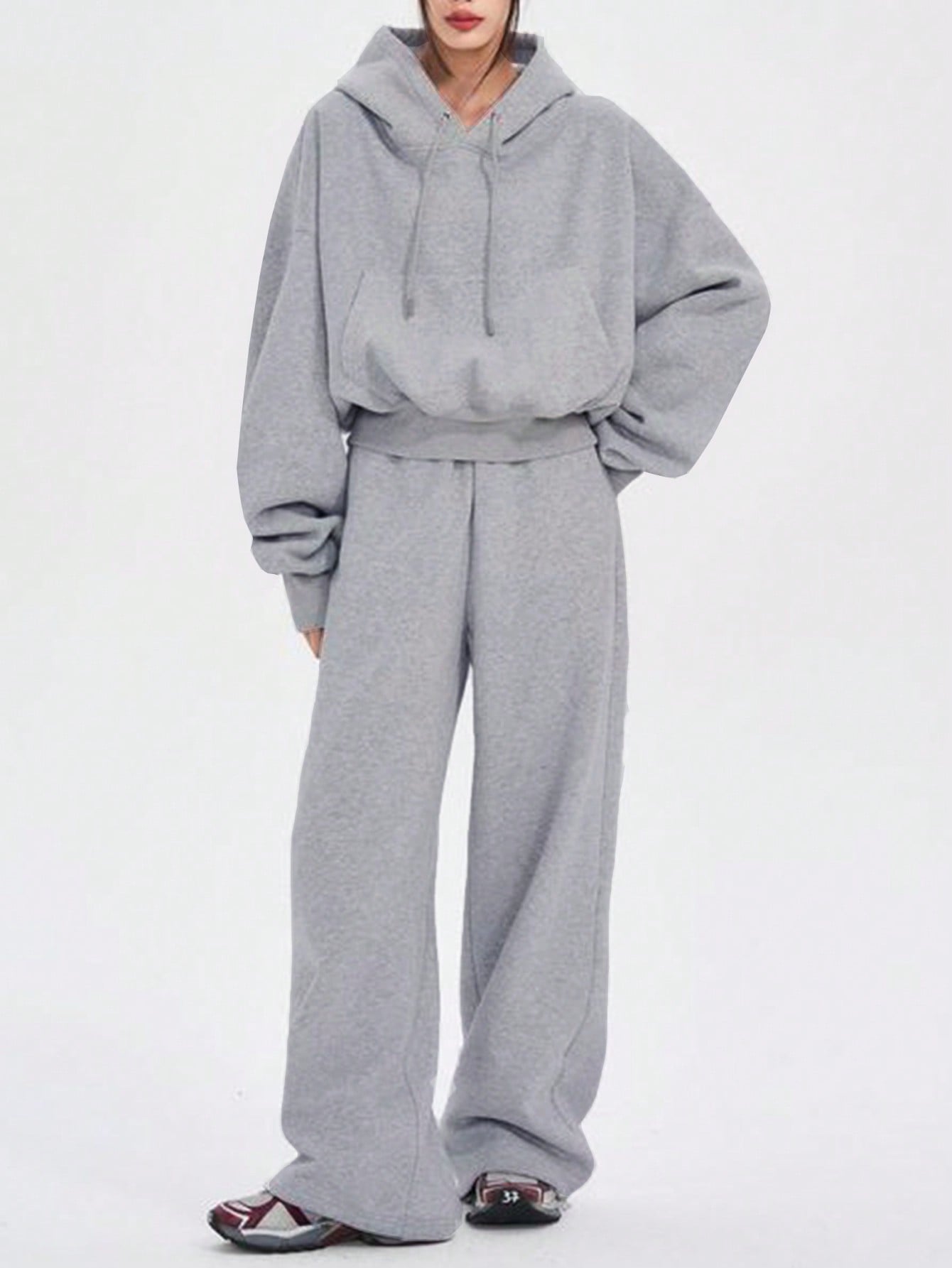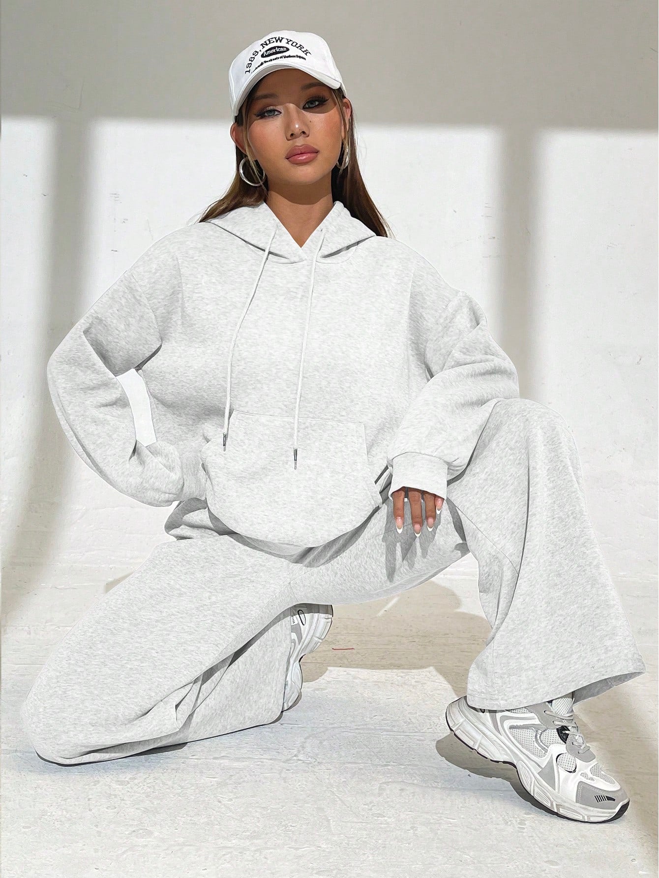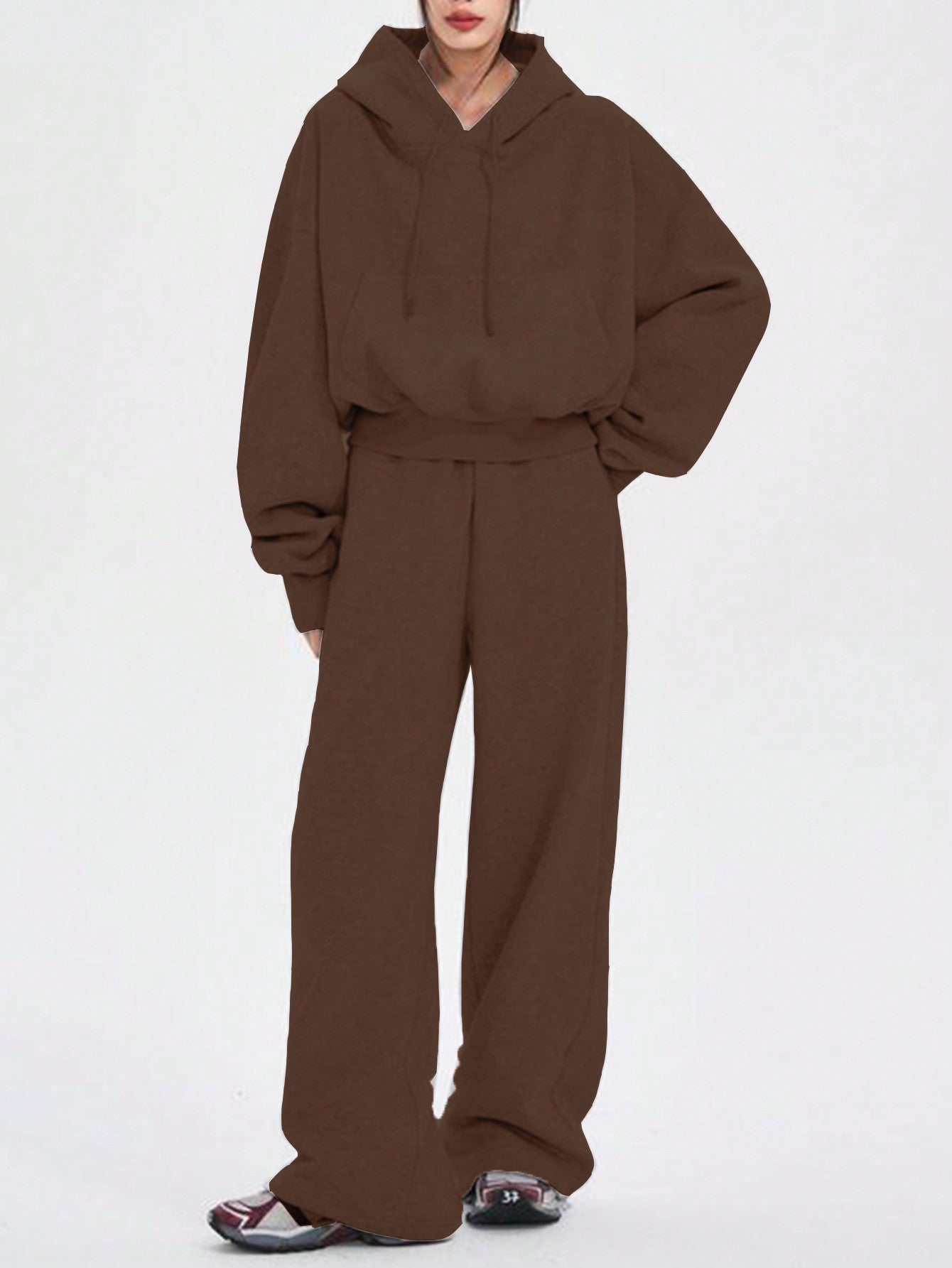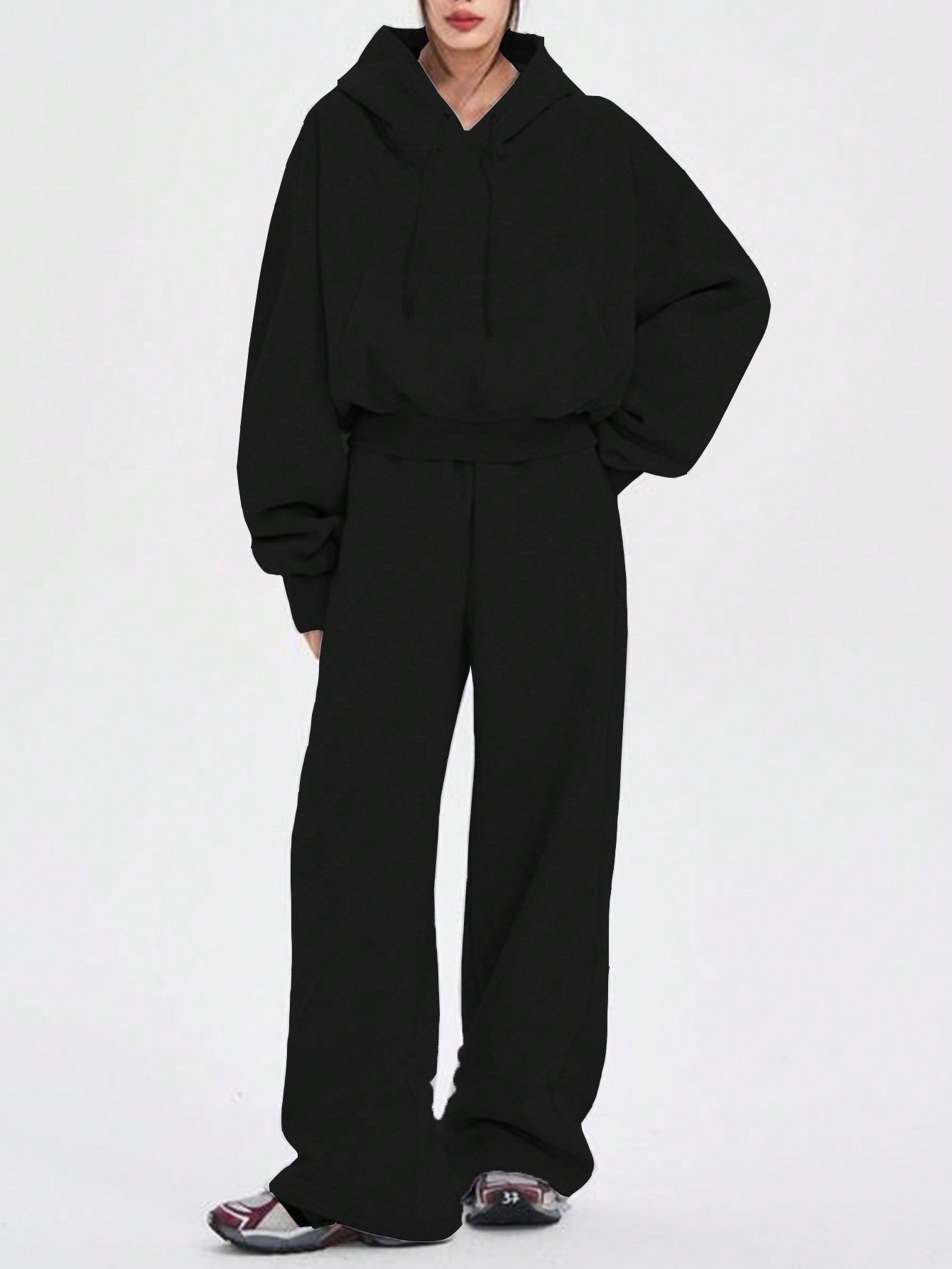 INAWLY 2pcs Women Simple Solid Color Long Sleeve Hooded Top And Pants Casual Set