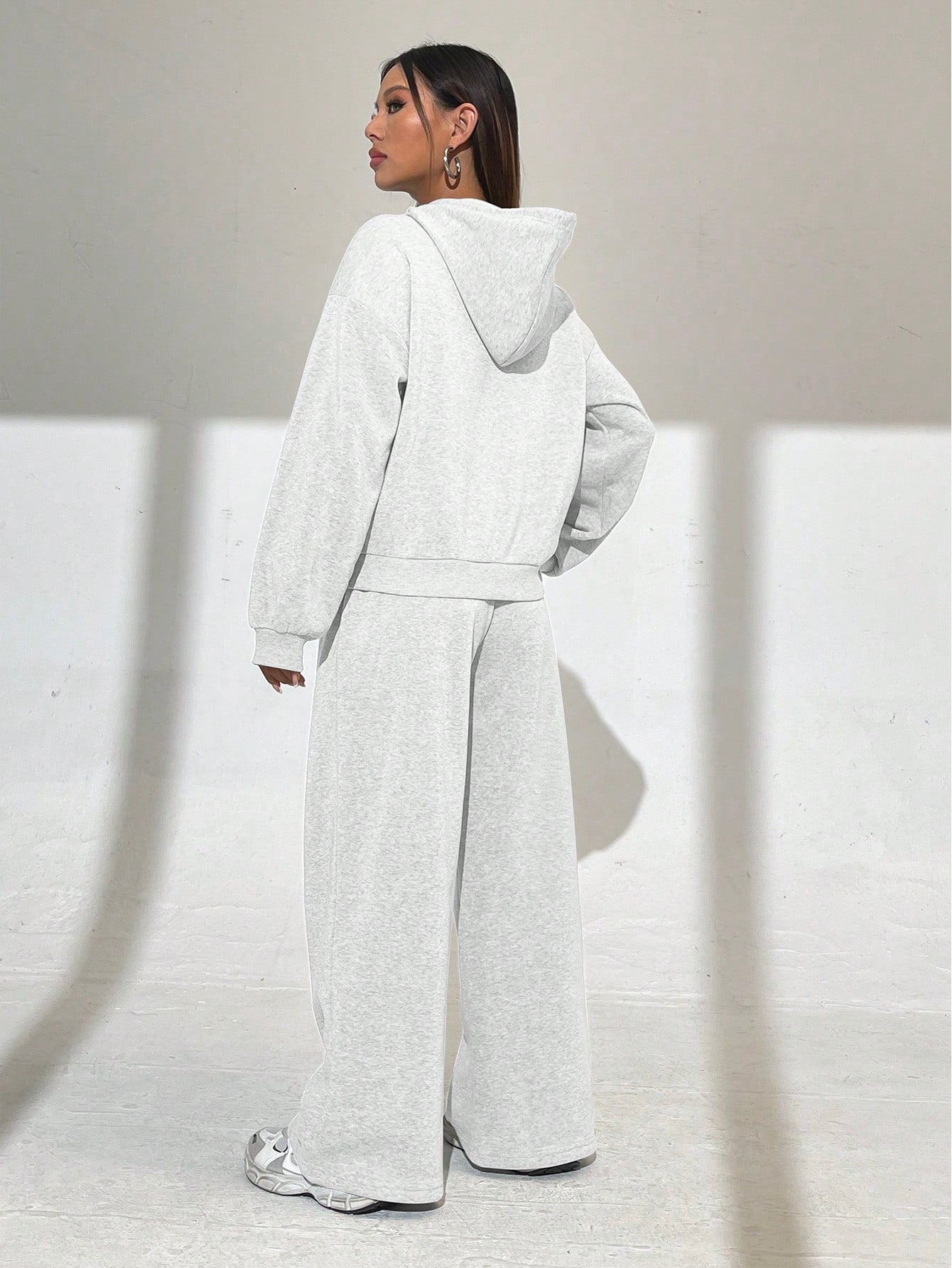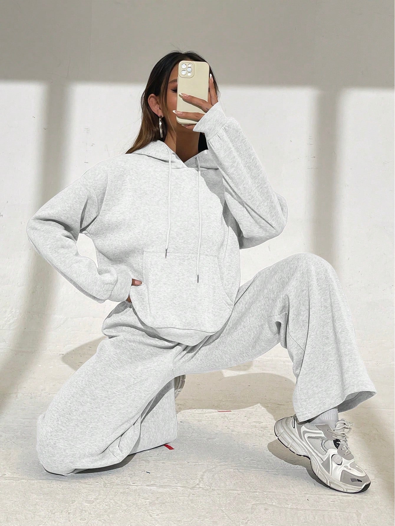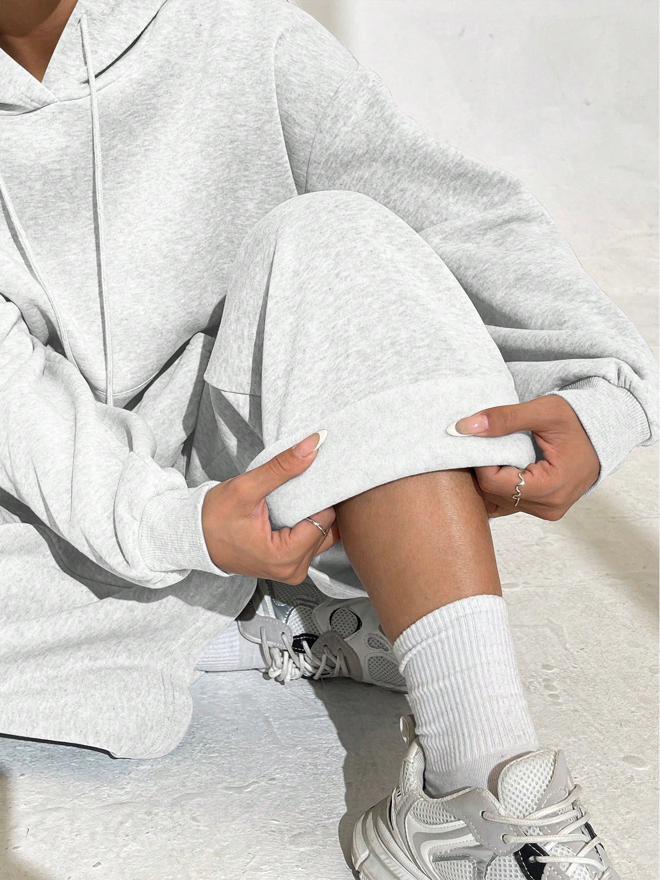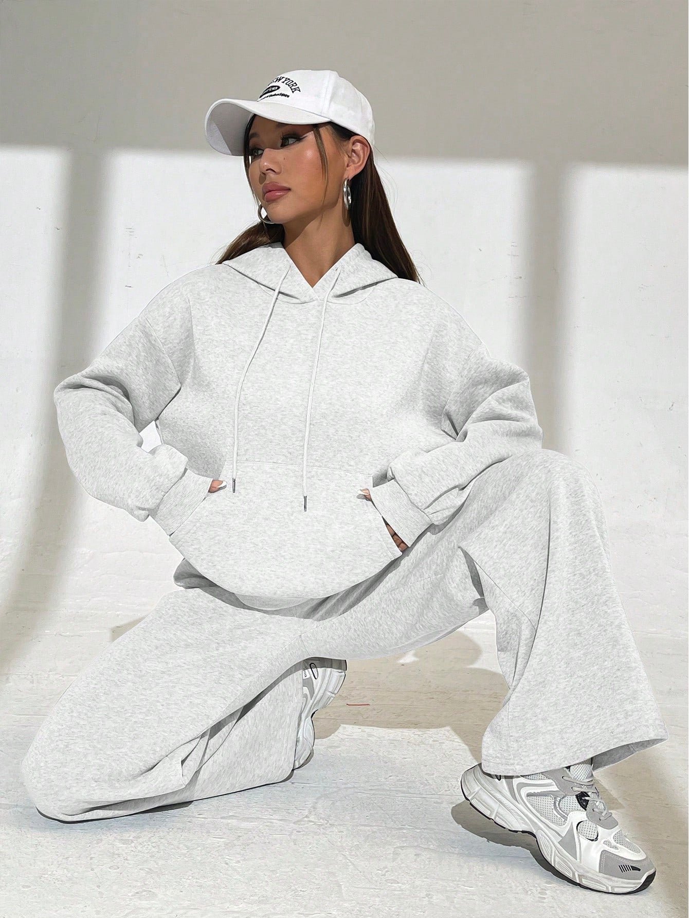 INAWLY 2pcs Women Simple Solid Color Long Sleeve Hooded Top And Pants Casual Set