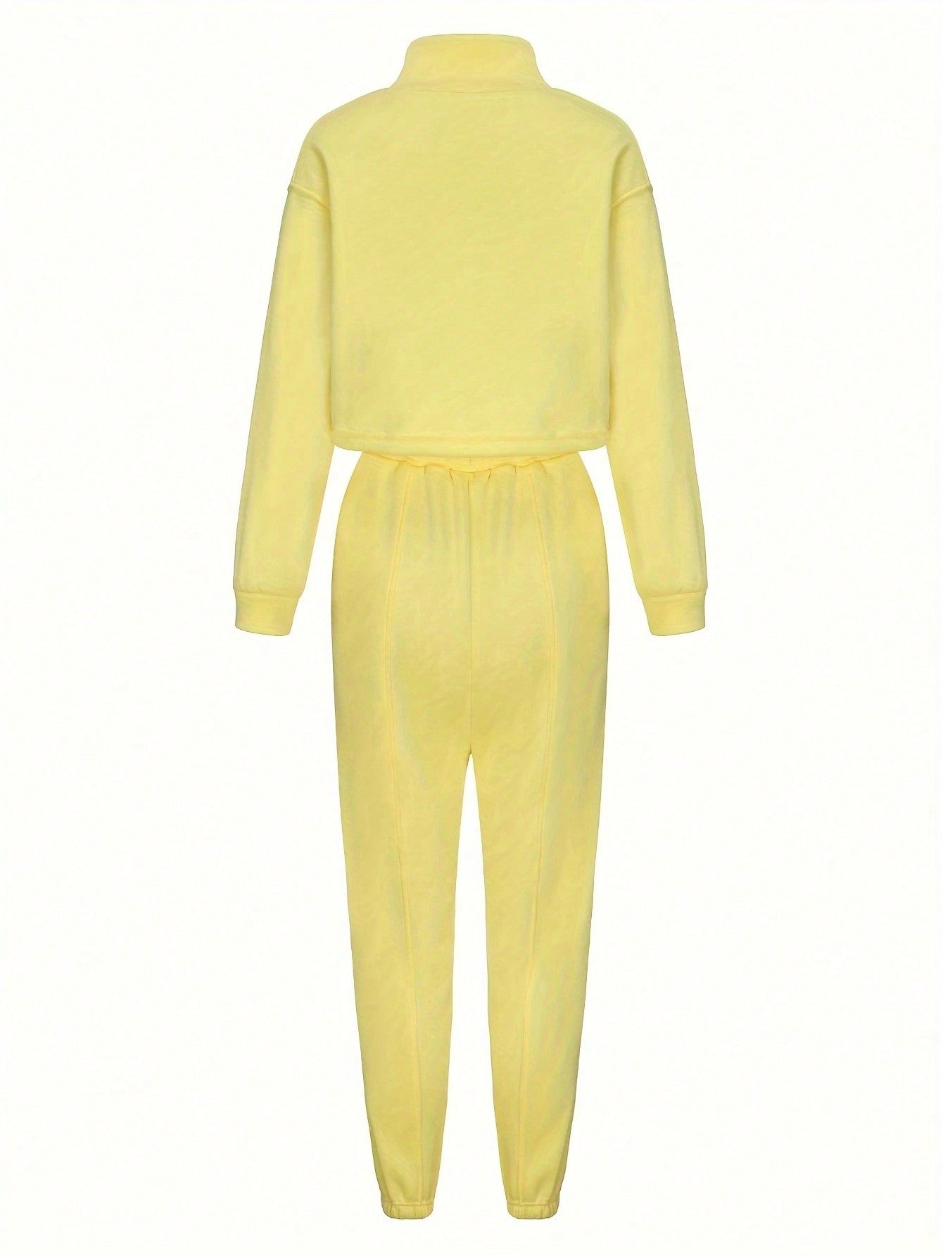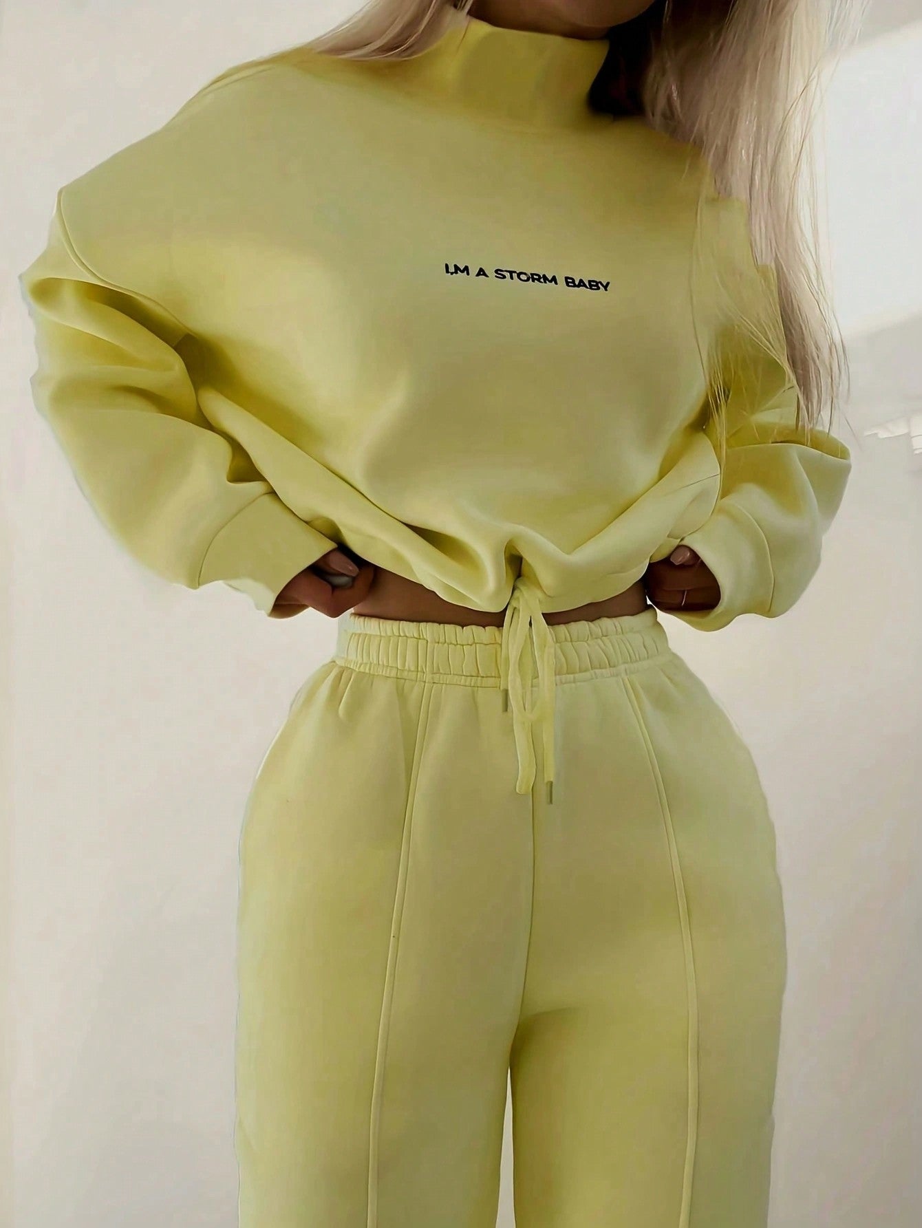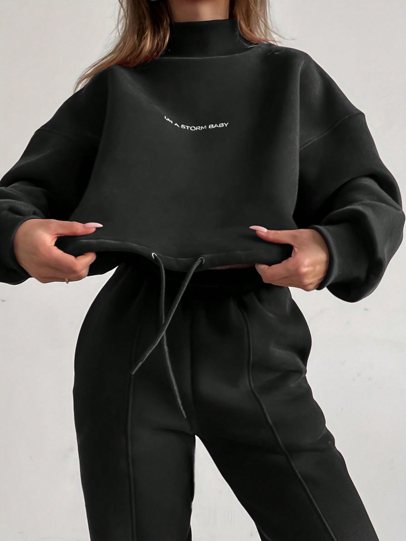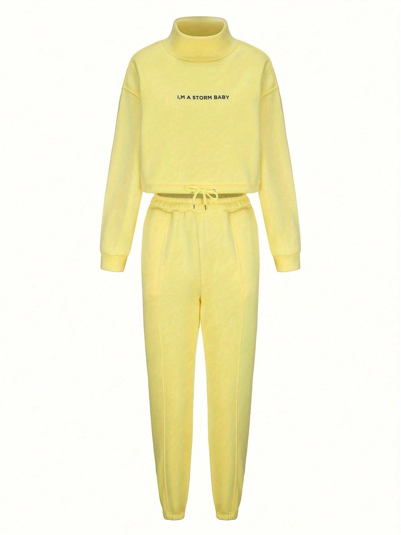 INAWLY Letter Graphic Mock Neck Drop Shoulder Sweatshirt & Sweatpants