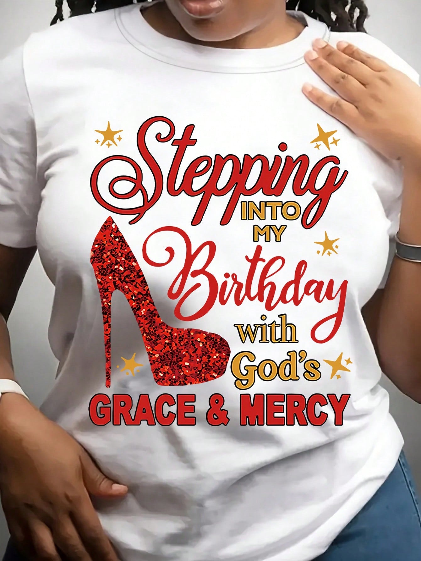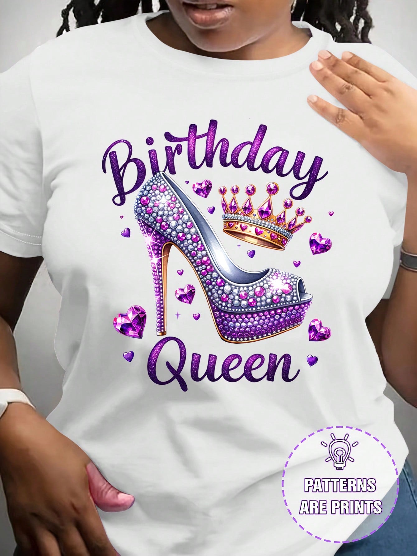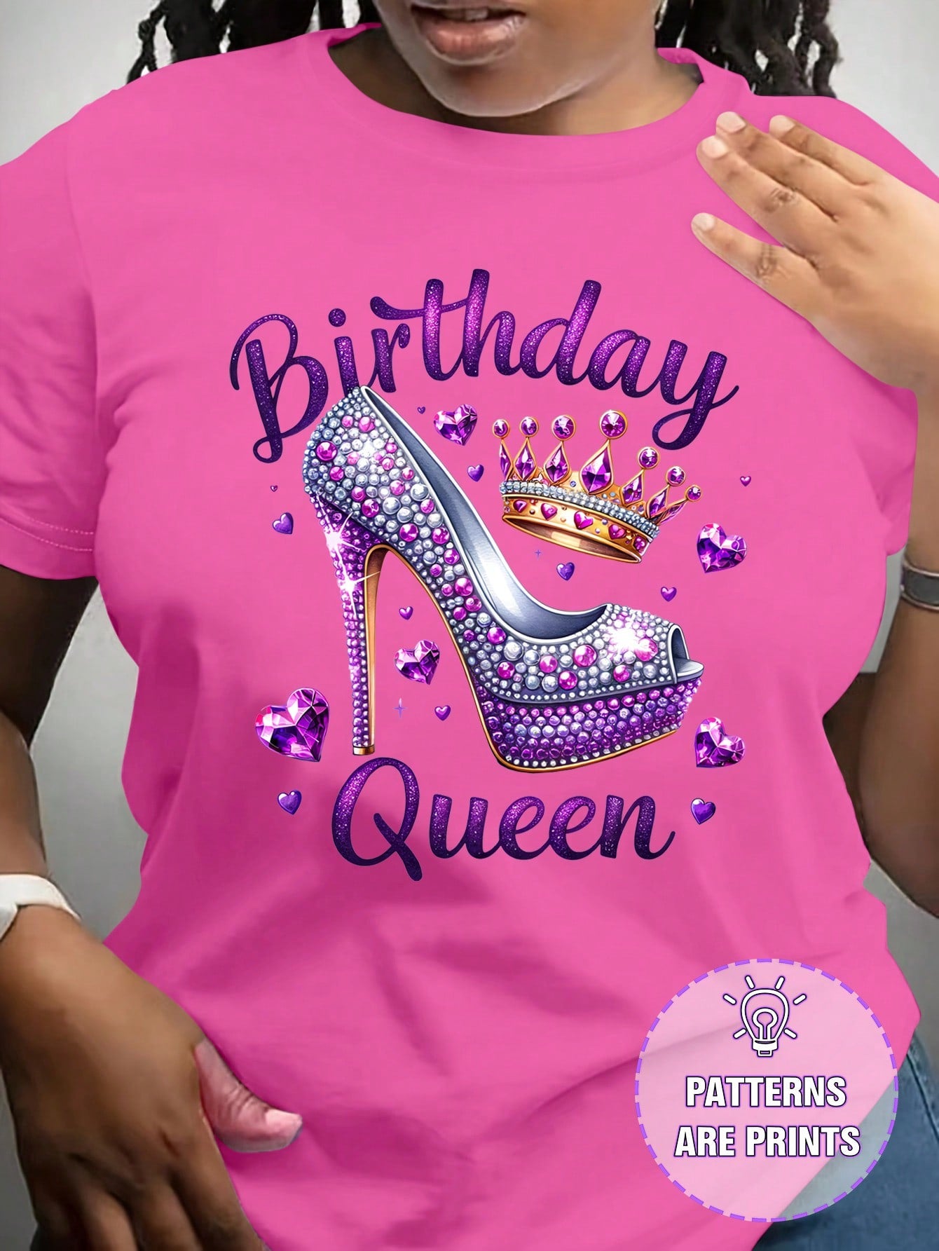 INAWLY Women's Casual Round Neck Short Sleeve T-Shirt With High Heel Design - "Birthday Queen"