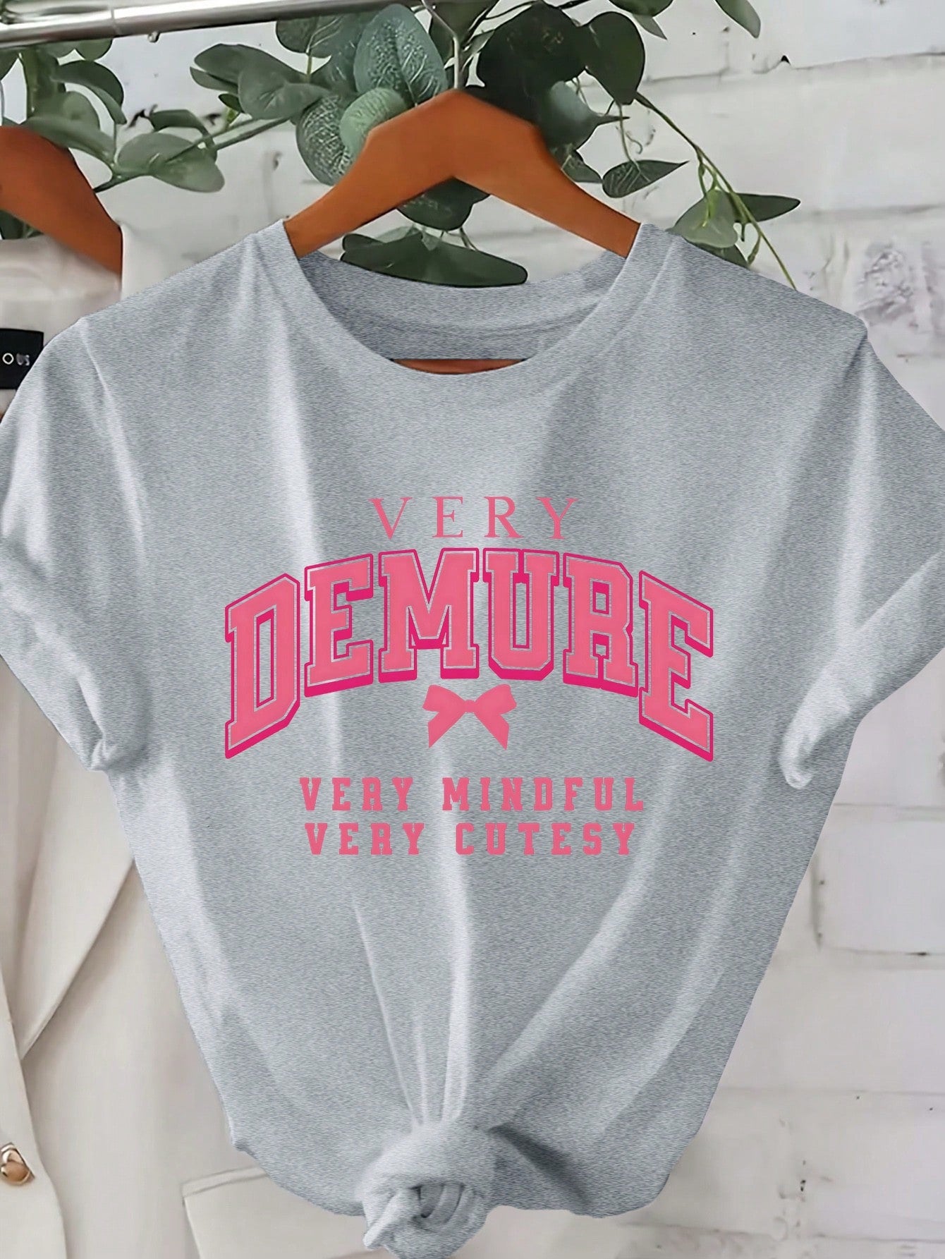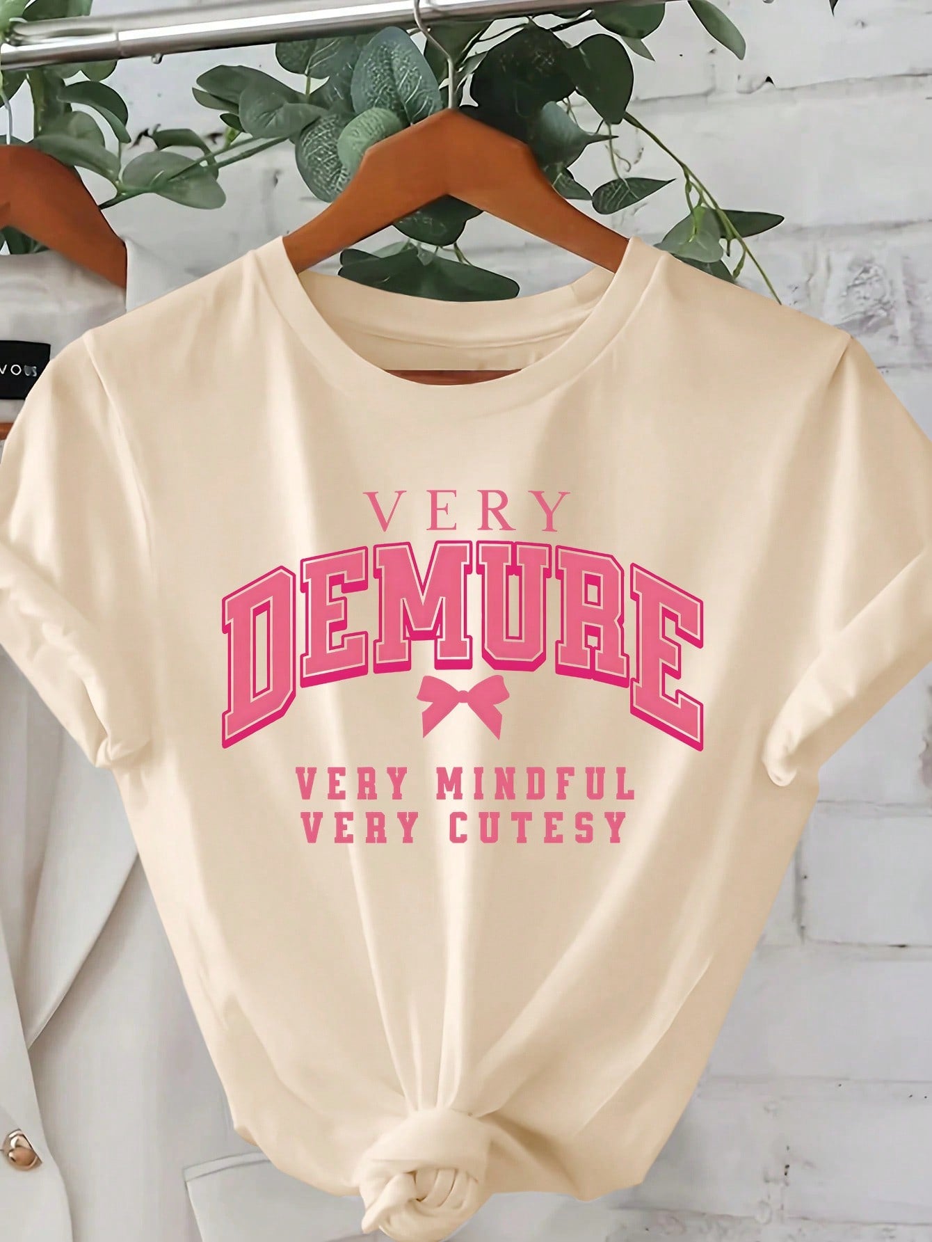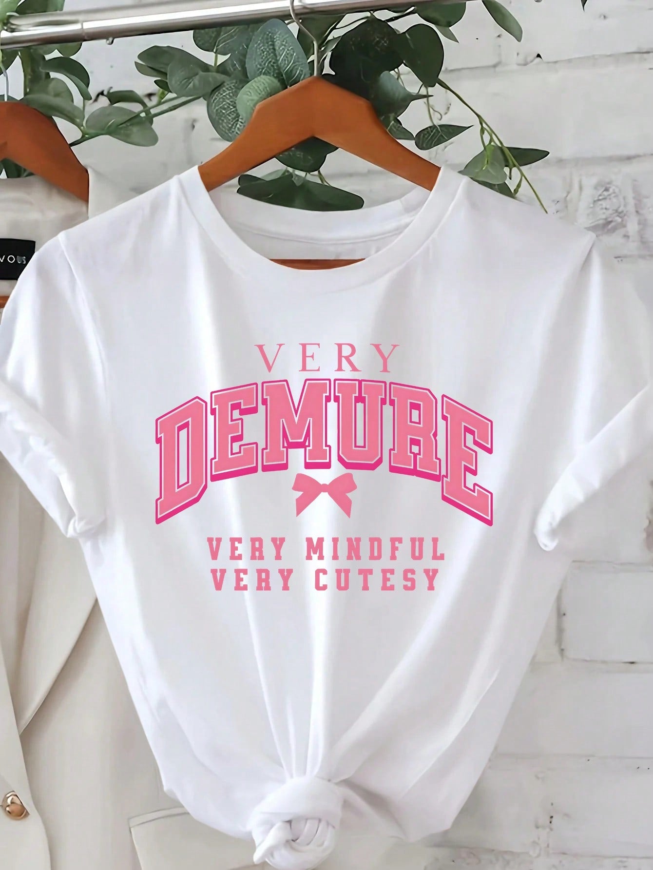 INAWLY Women's Letter Print Regular Fit Short Sleeve Round Neck T-Shirt