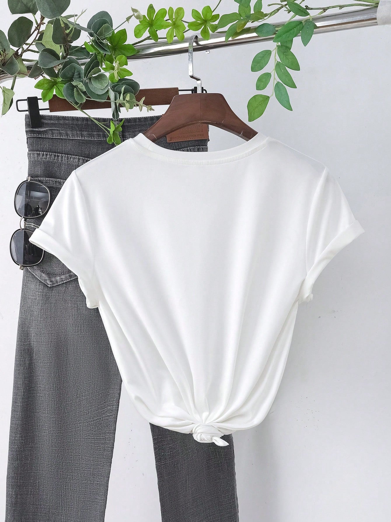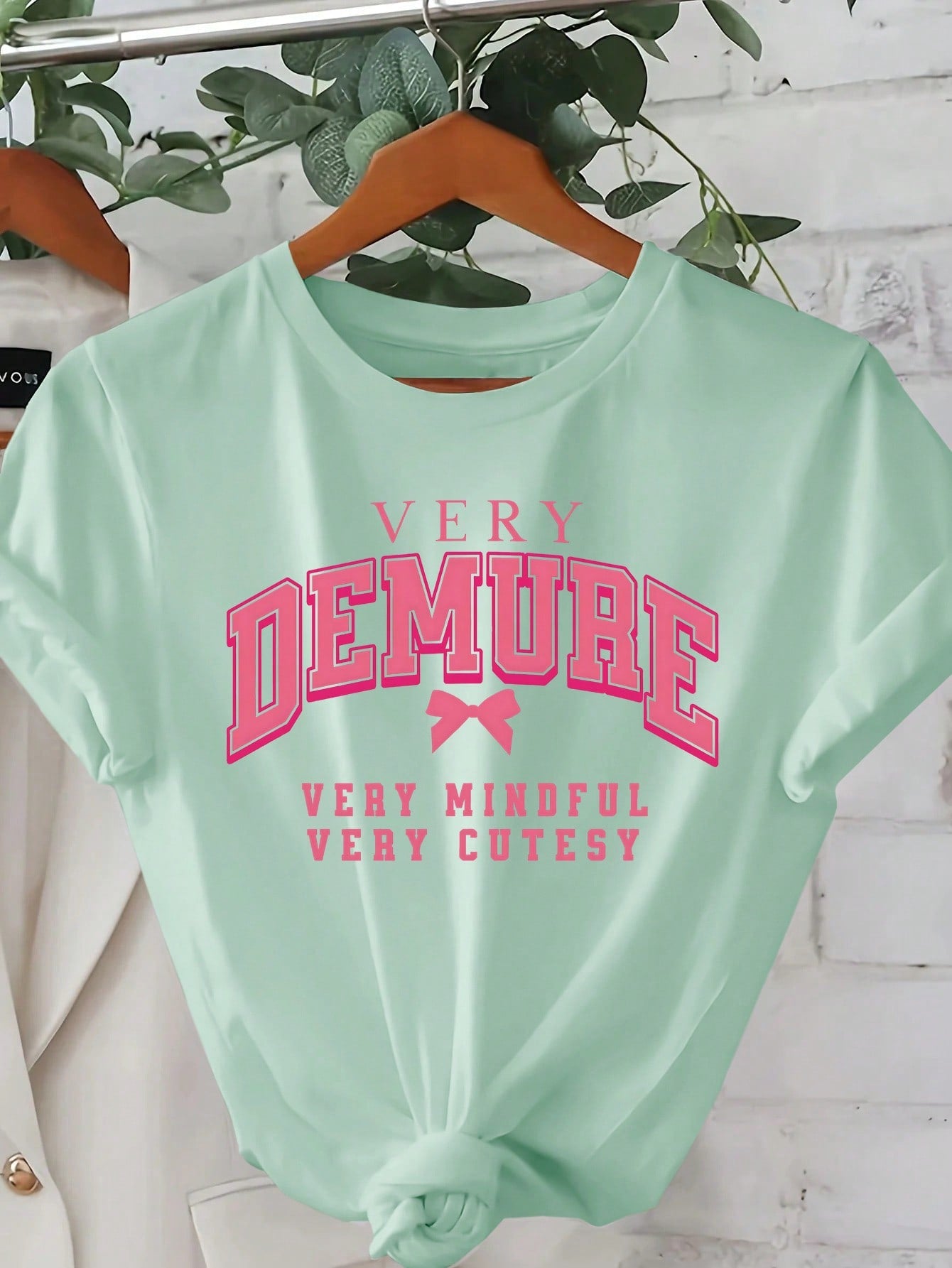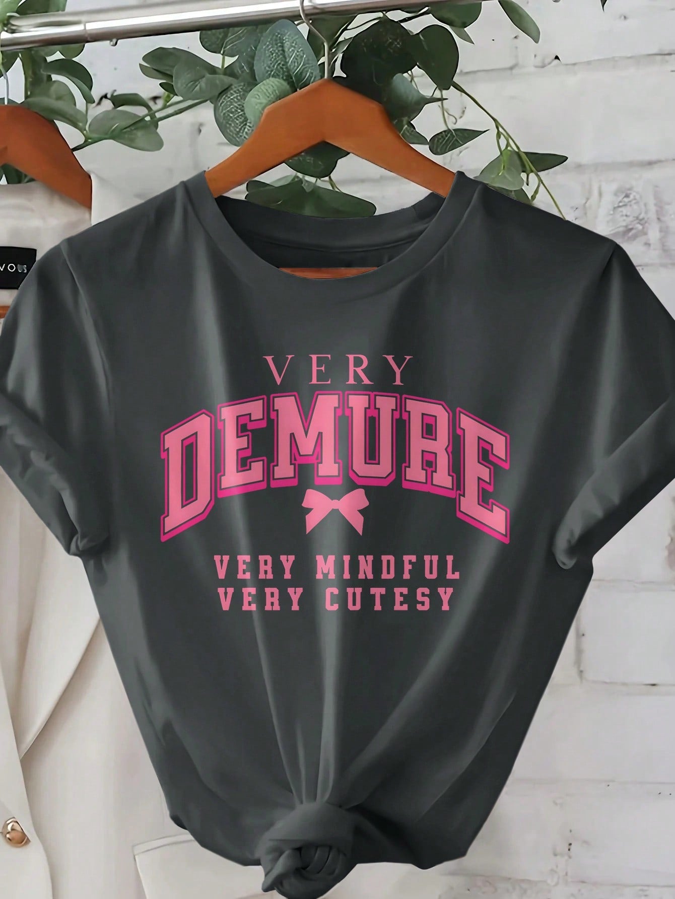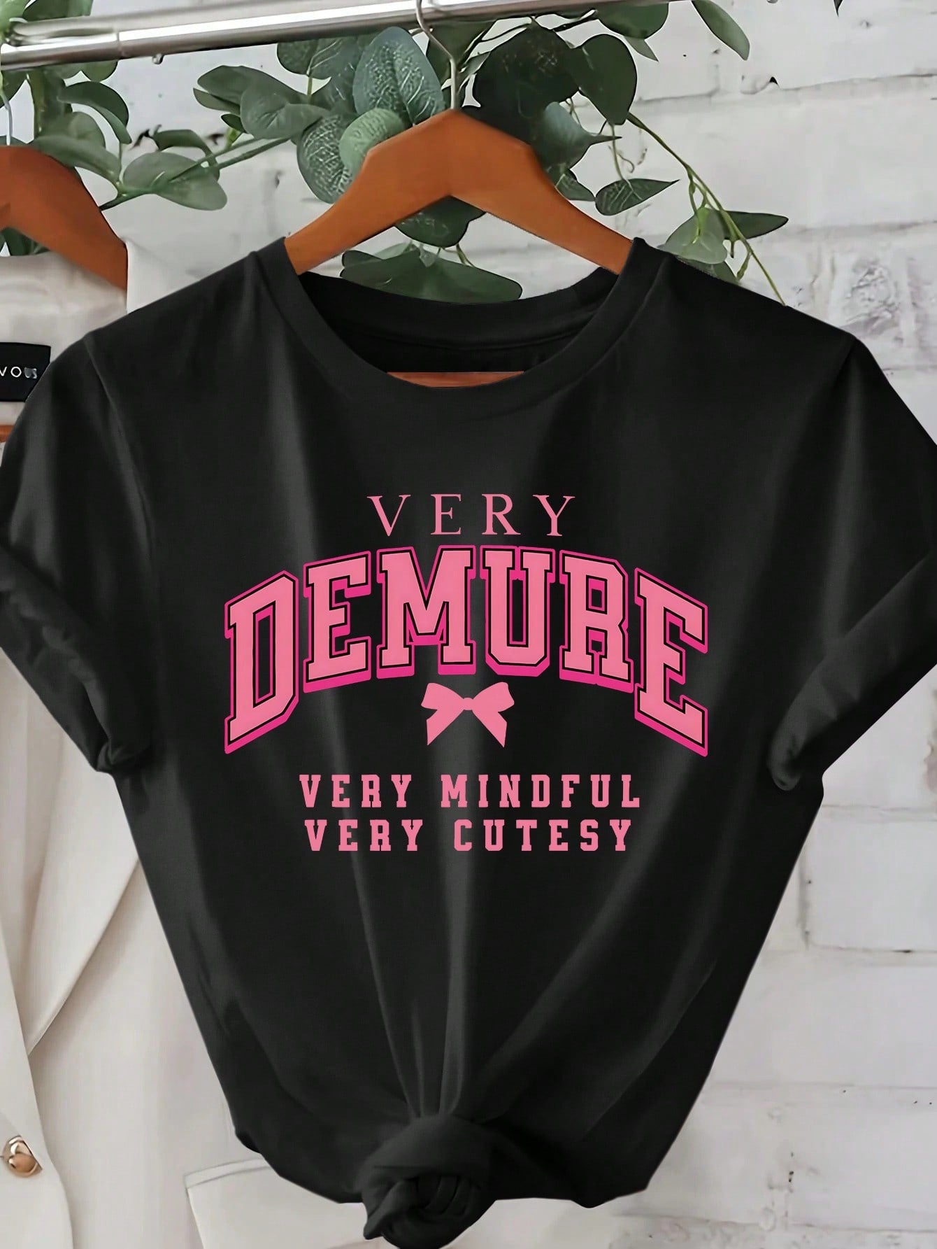 INAWLY Women's Letter Print Regular Fit Short Sleeve Round Neck T-Shirt