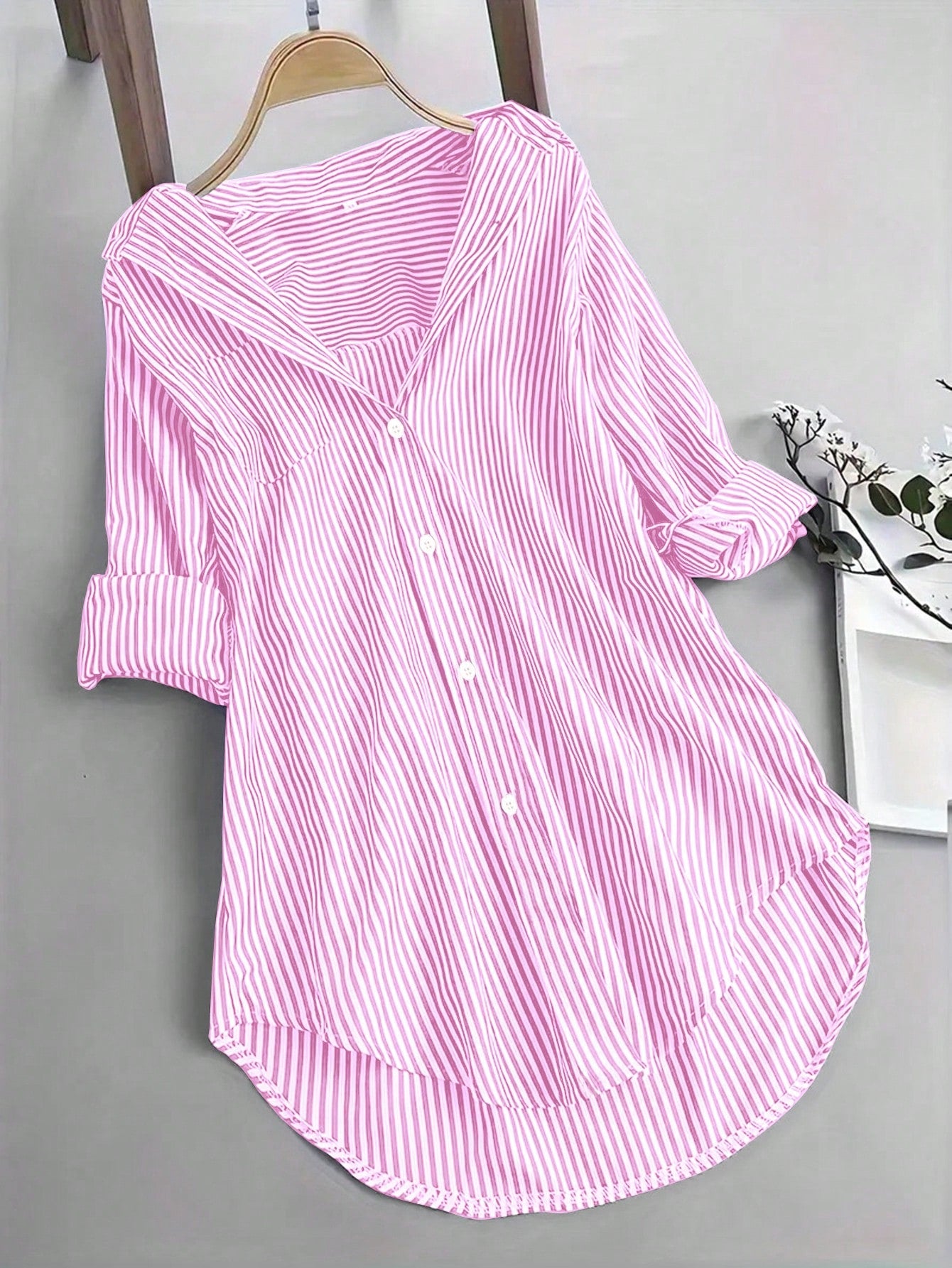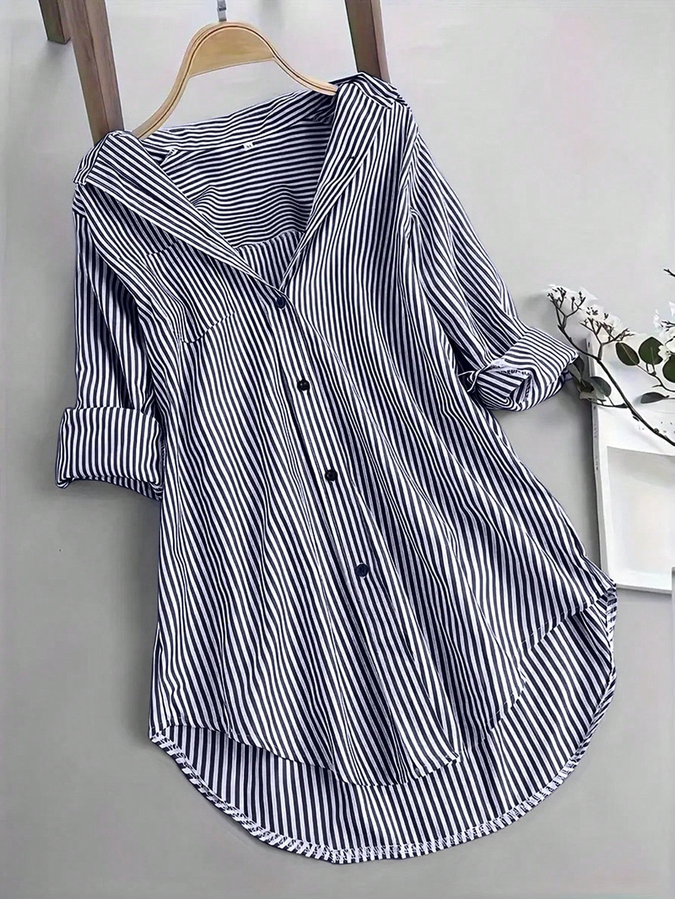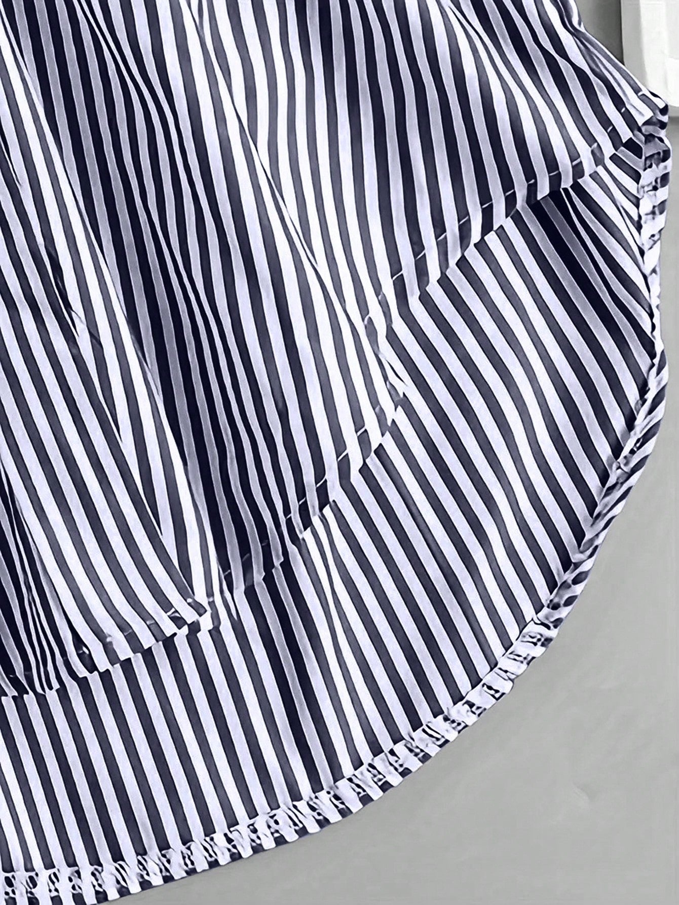 INAWLY Women's Oversized Striped Casual Shirt, Short Front Long Back Design,Long Sleeve Tops