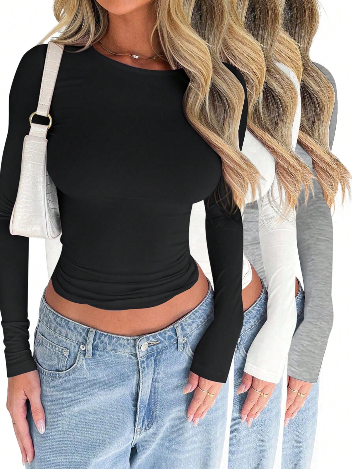 INAWLY Women's Summer Casual Solid Color Slim Fit Short Sleeve T-Shirt