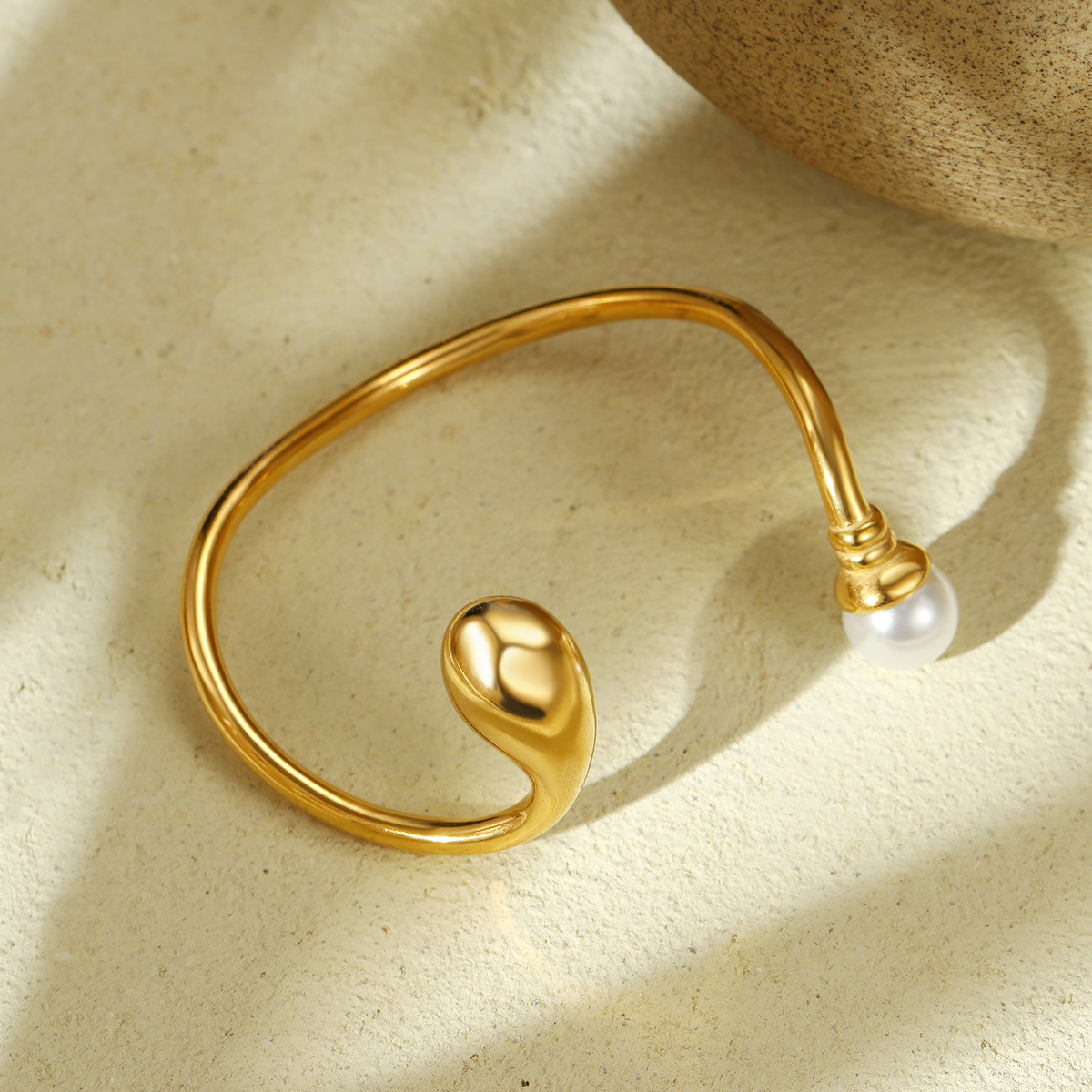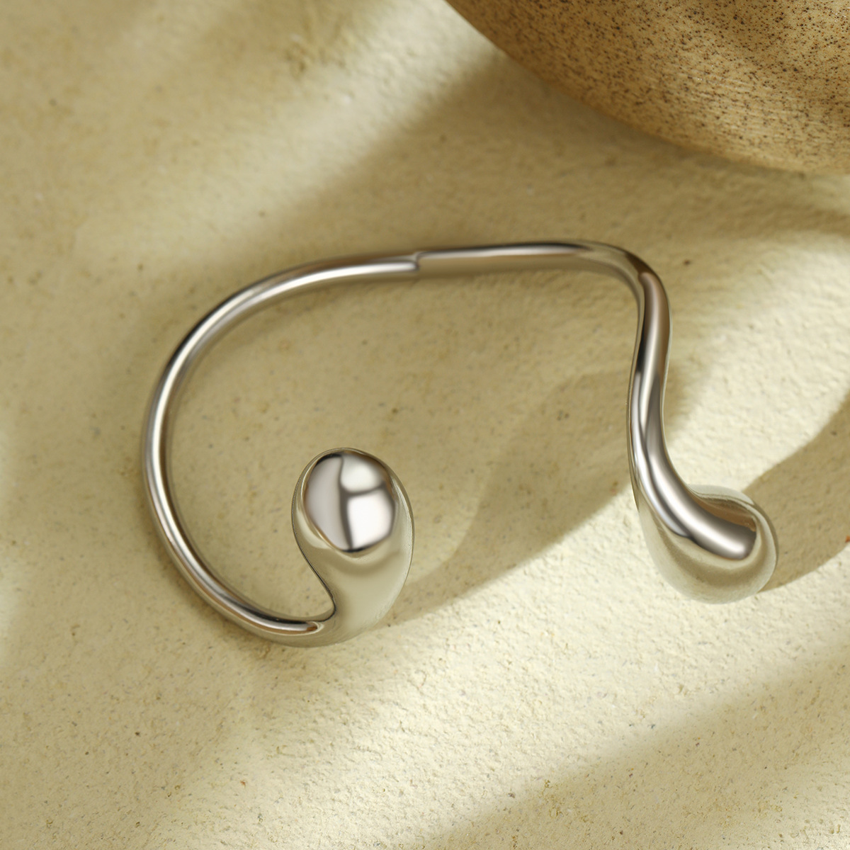Irregular Asymmetric round Water Drop Titanium Steel Bracelet All Match Stainless Steel Bracelet Ring Set