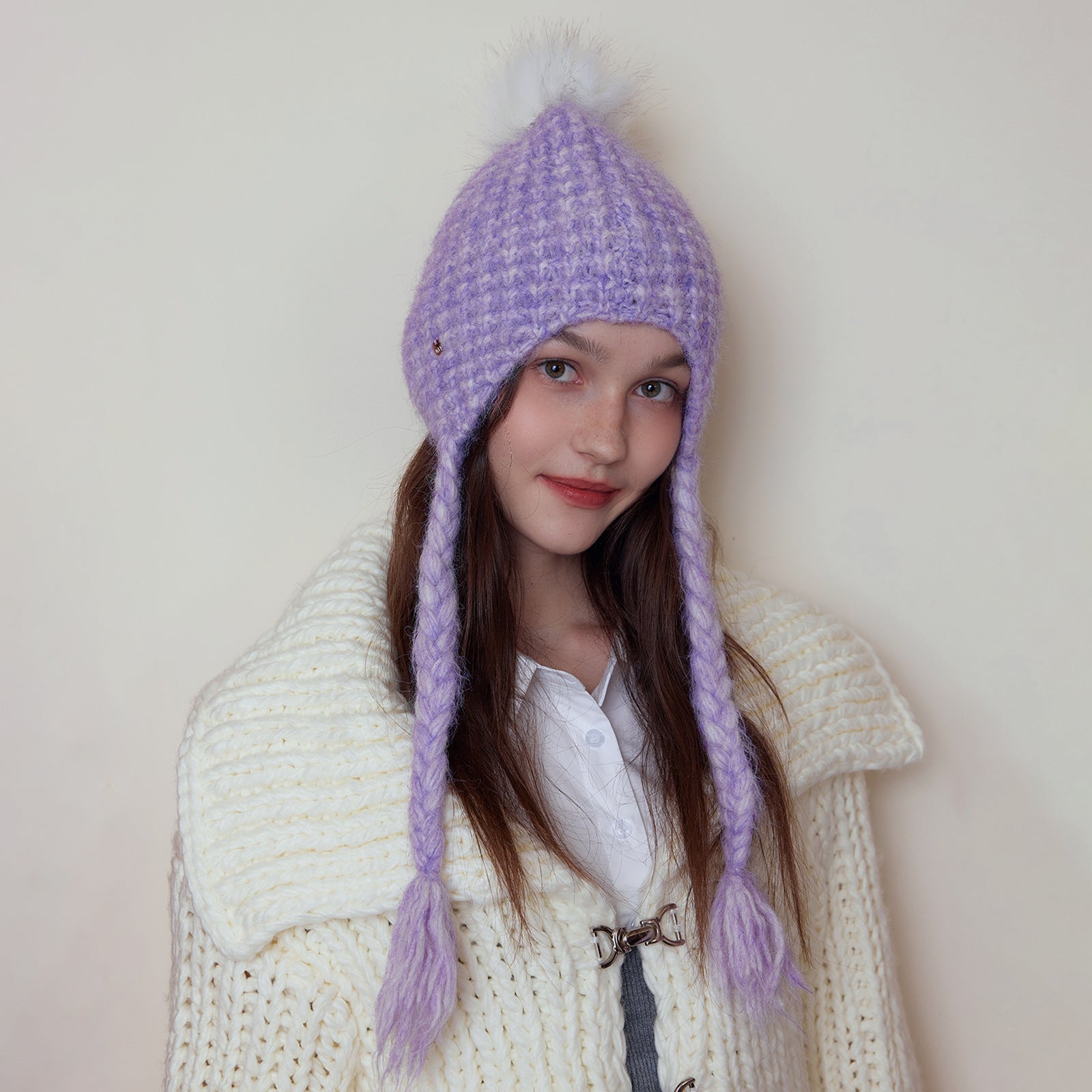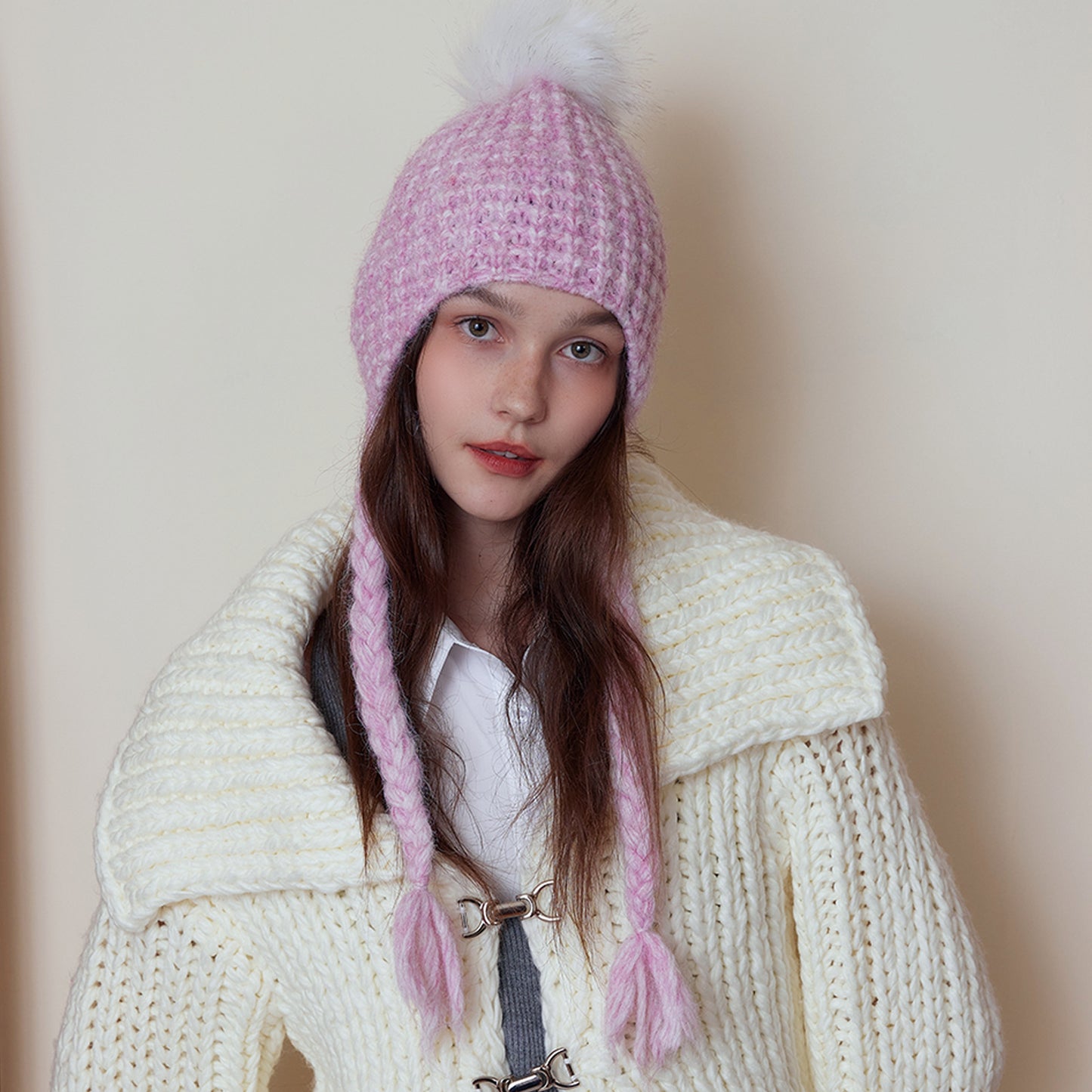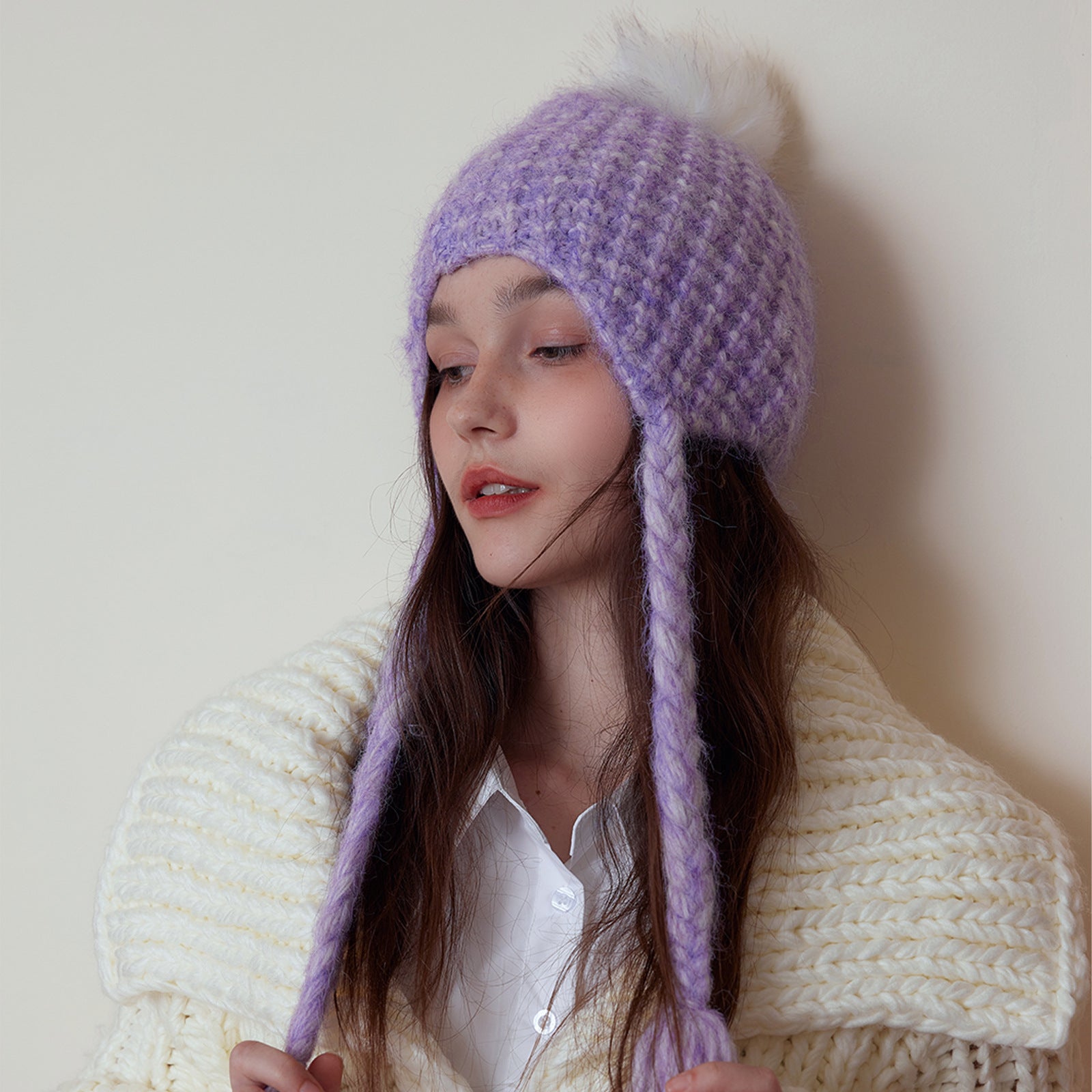 Japanese Solid Color Warm Keeping Earmuffs Hat Women Autumn Winter Fashionable Face Looking Small Knitted Beanie Hat All Matching Sleeve Cap Trendy