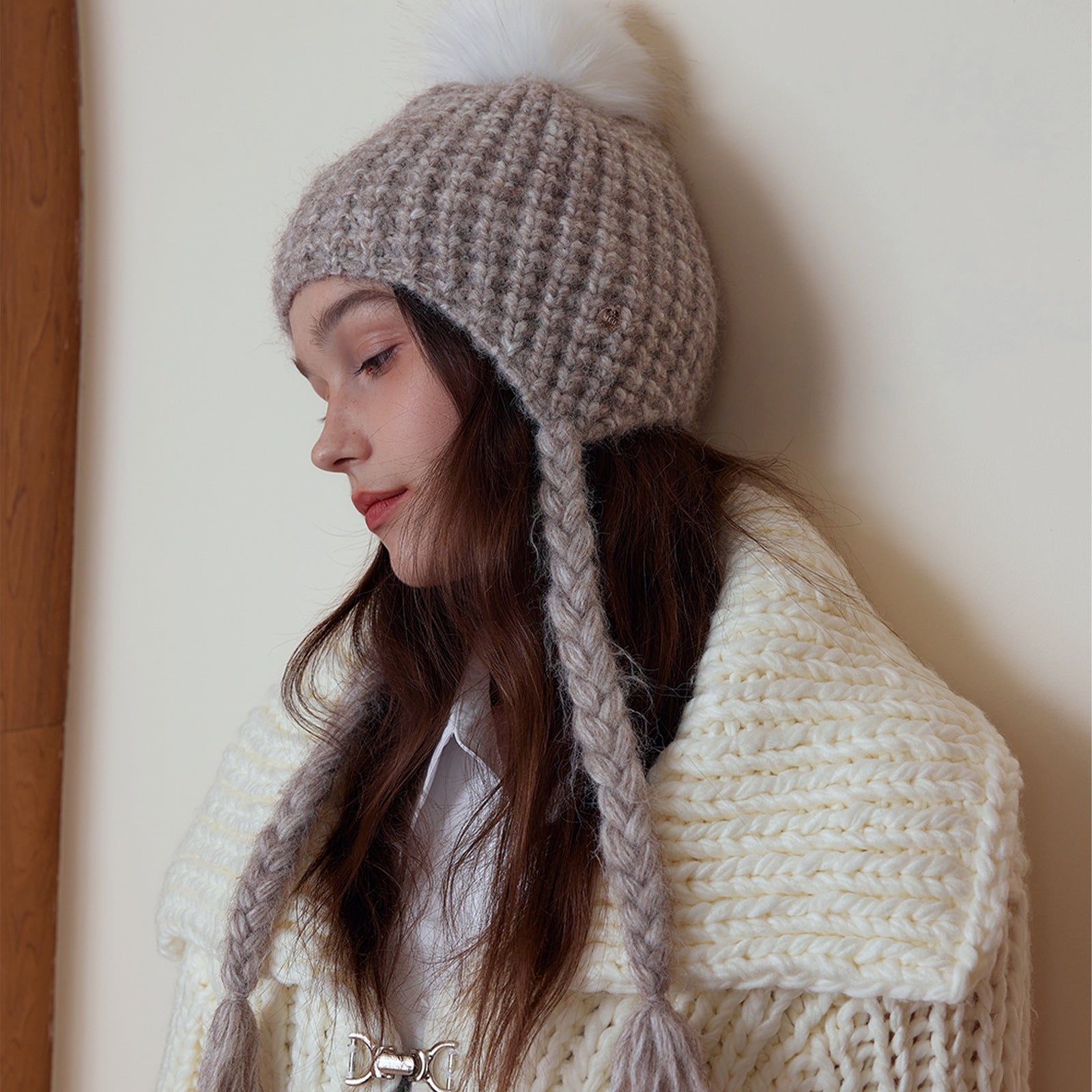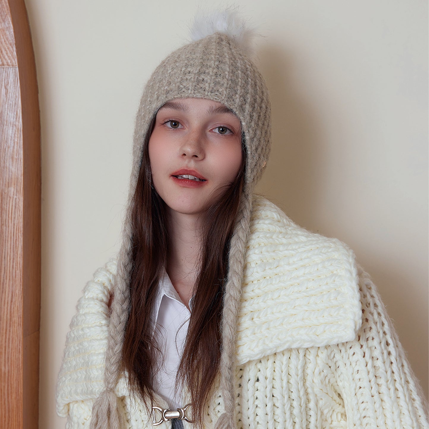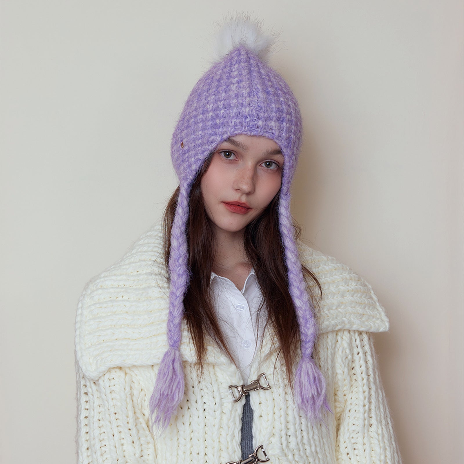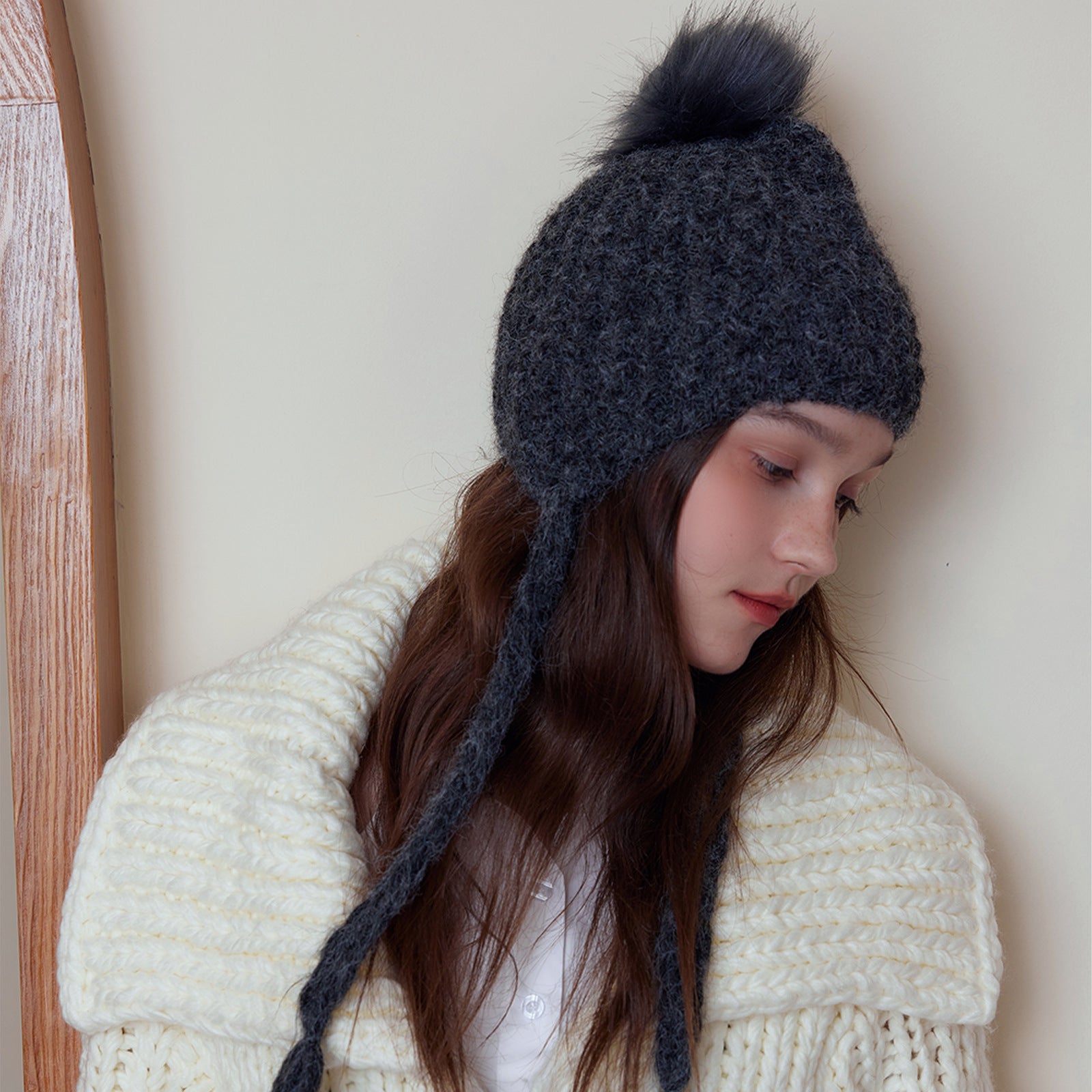 Japanese Solid Color Warm Keeping Earmuffs Hat Women Autumn Winter Fashionable Face Looking Small Knitted Beanie Hat All Matching Sleeve Cap Trendy