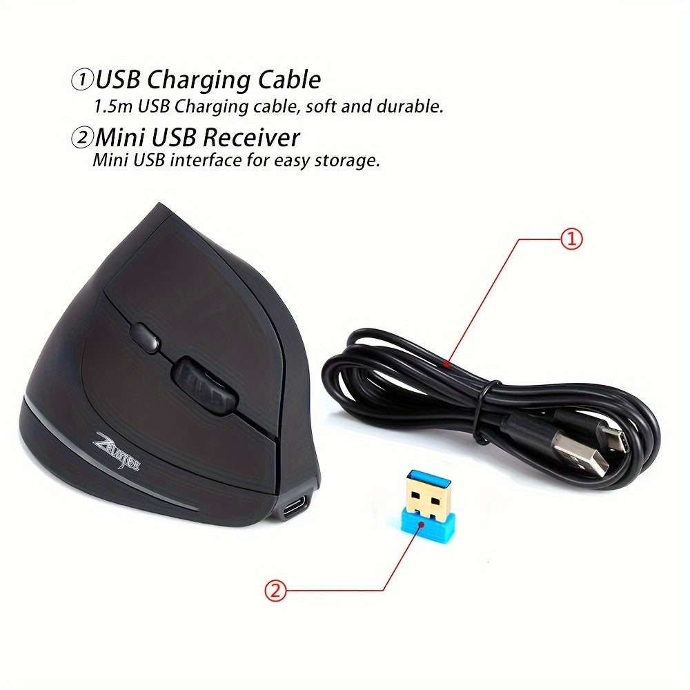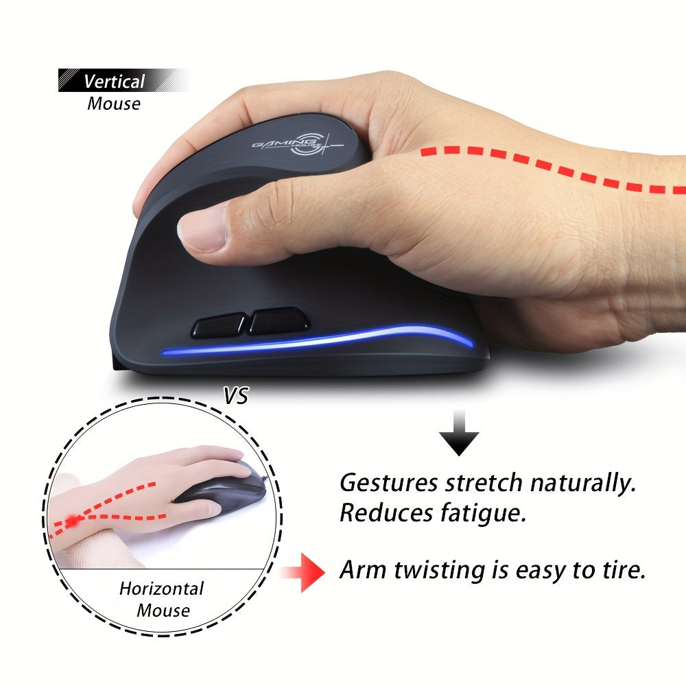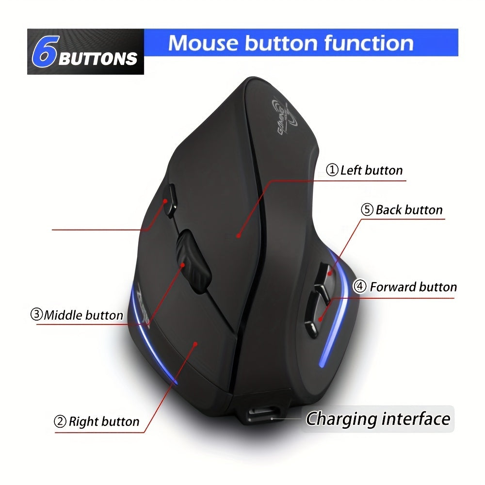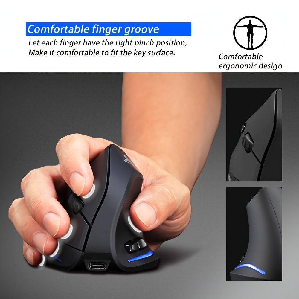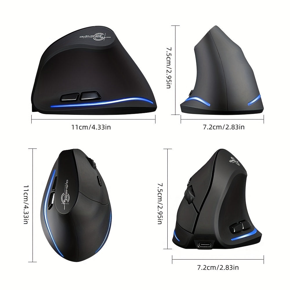 JOMAA Souris de Charge Sans Fil Verticale avec Éclairage RGB, Conception Ergonomique 2.4G, 2400DPI, Rechargeable Type-C, Alimentée par Batterie/USB, Capteur Optique, Pour Droitiers, Motif Nid d'Abeille