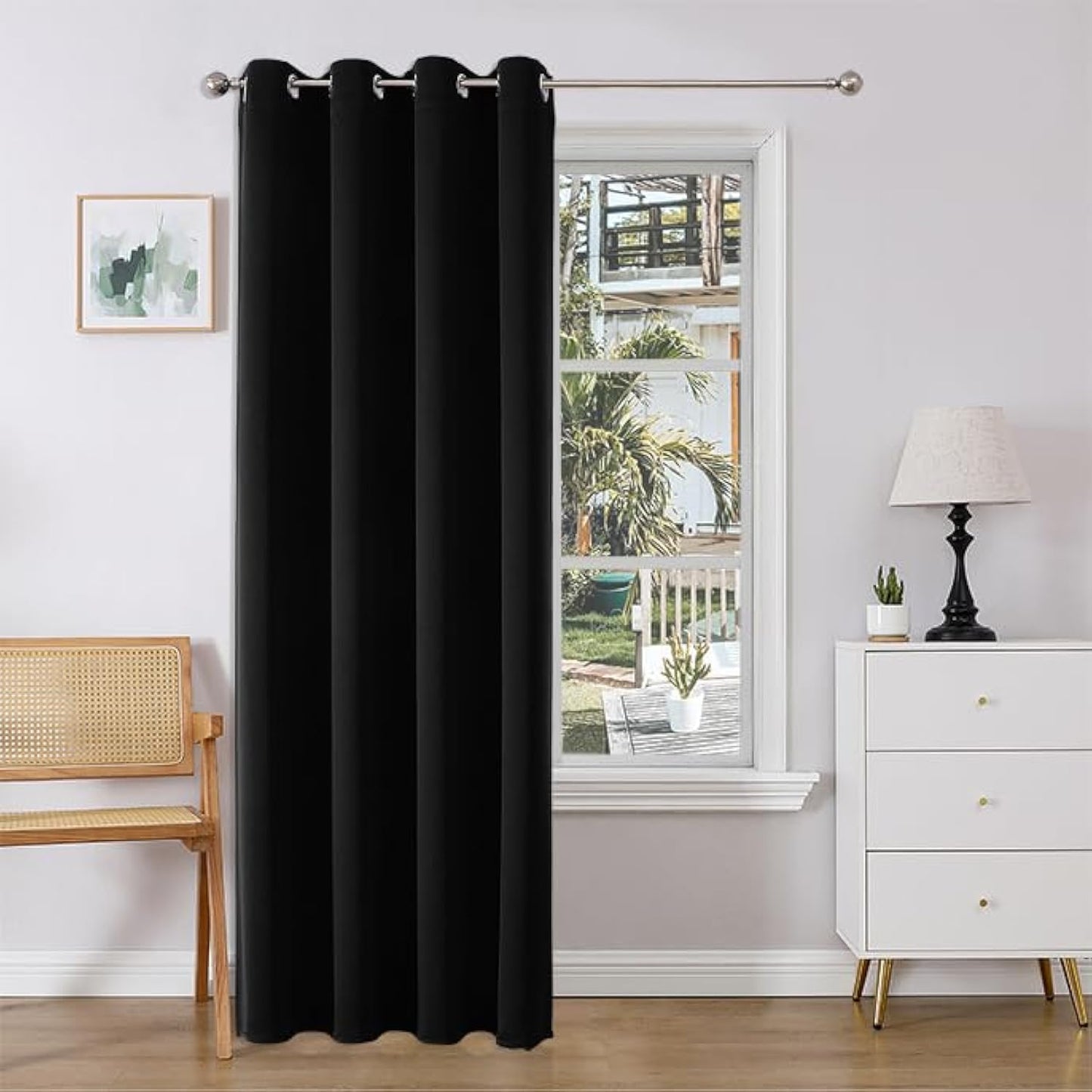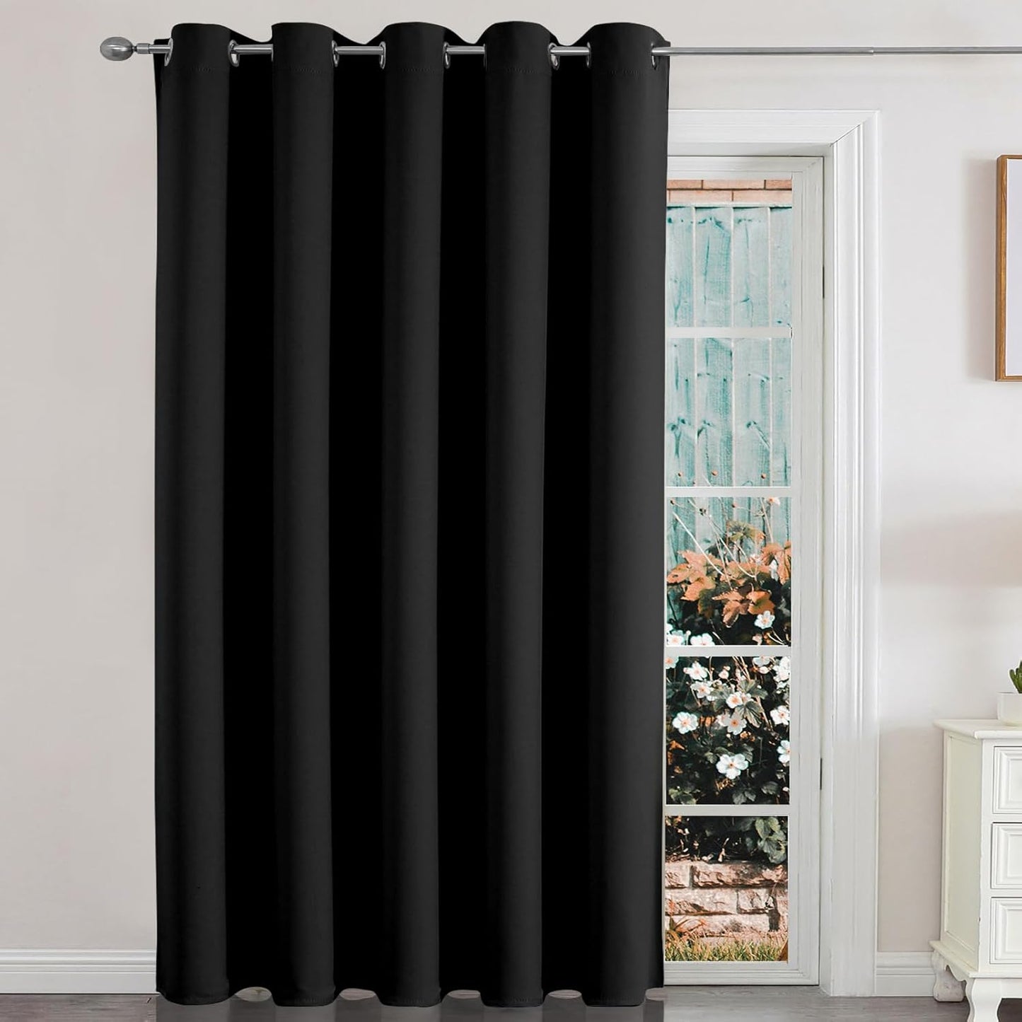 Joydeco Blackout Room Divider Curtains for Sliding Glass Doors 84 Inches Long 1 Panel, Extra Wide Sliding Door Curtains for Doorway Patio Bedroom Living Room (Black, 100Wx84L)