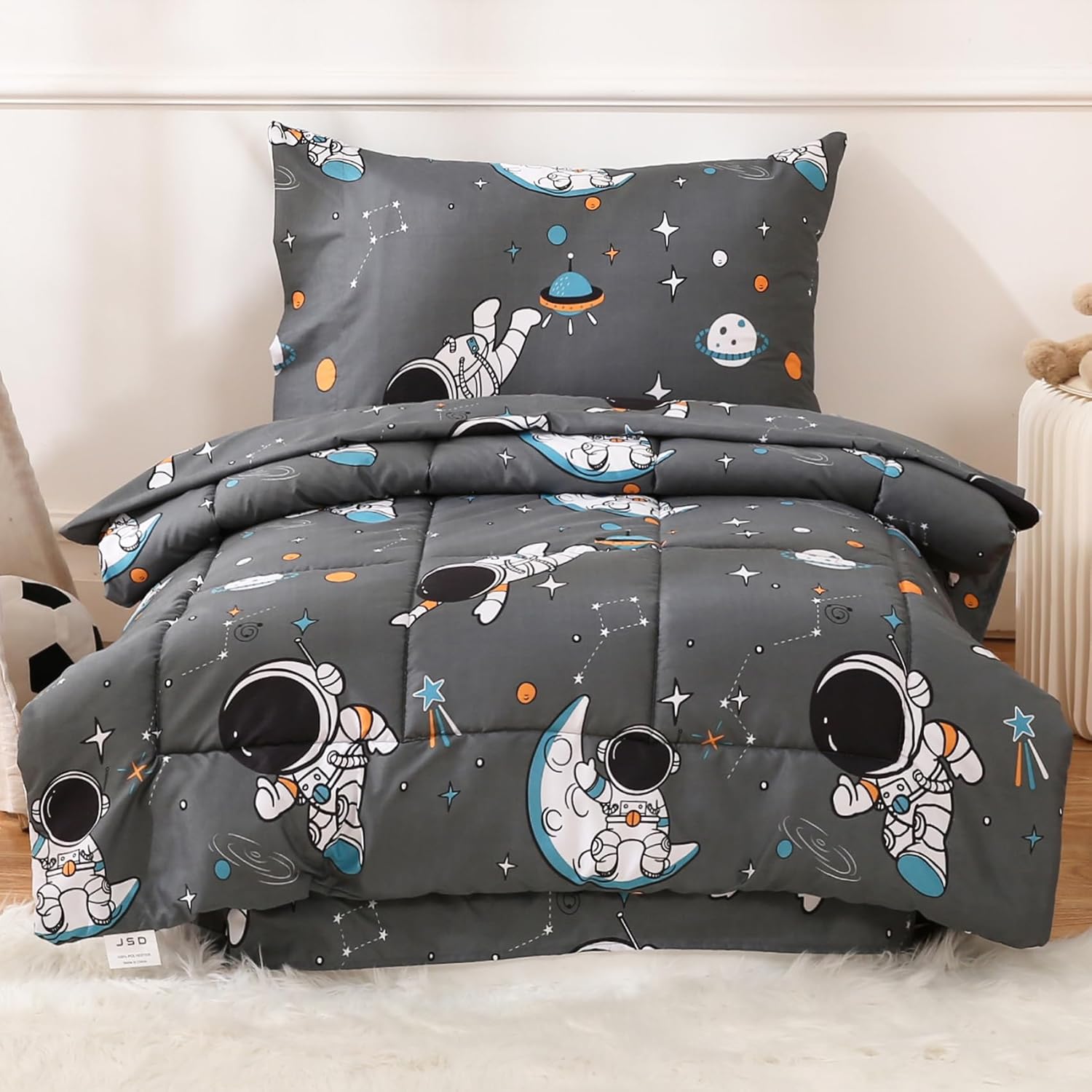 Adorable Designs: our designers chose these patterns to create a sweet dream for kids, from dinosaur, astronaut, cars to unicorns, mermaid, you’re sure to find a bed set your child will love