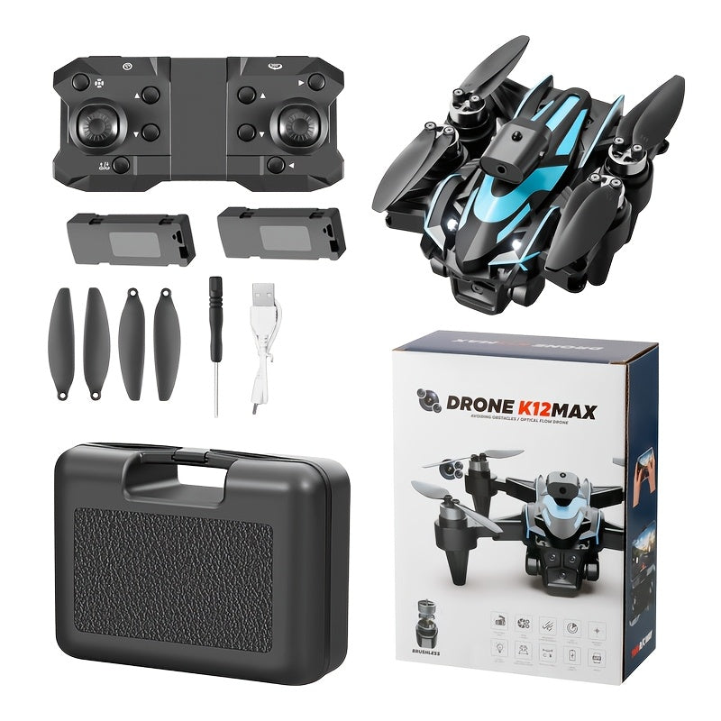 K12 Max Drone with 2 Batteries, Triple Camera, Optical Flow Positioning, Brushless Motors, 360° Obstacle Avoidance, Stunt Rotation, Professional RC Toy with Wi-Fi, USB Charging, Rechargeable Lithium Polymer Battery