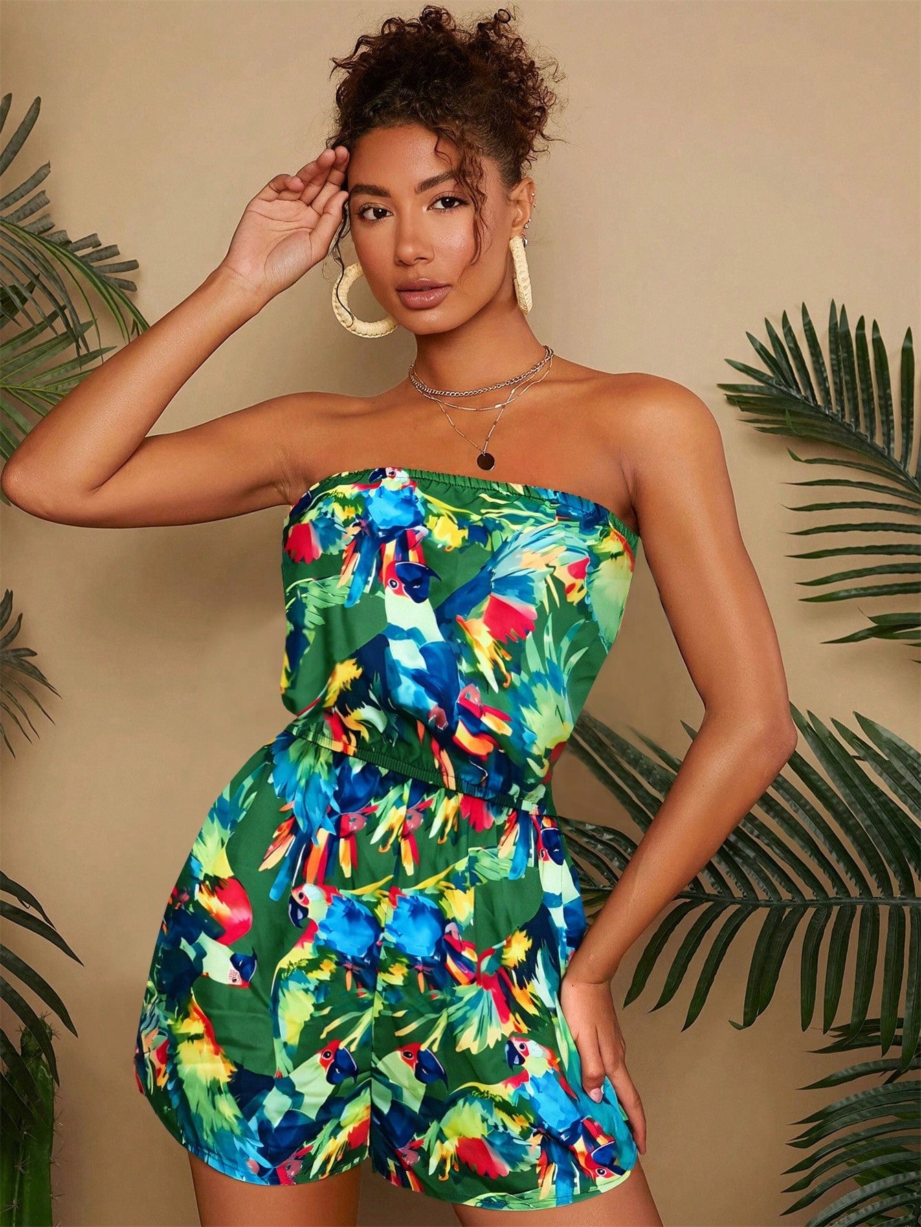 KARISMINA Women's Vacation Summer Strapless Colorful Tropical Floral Printed Romper