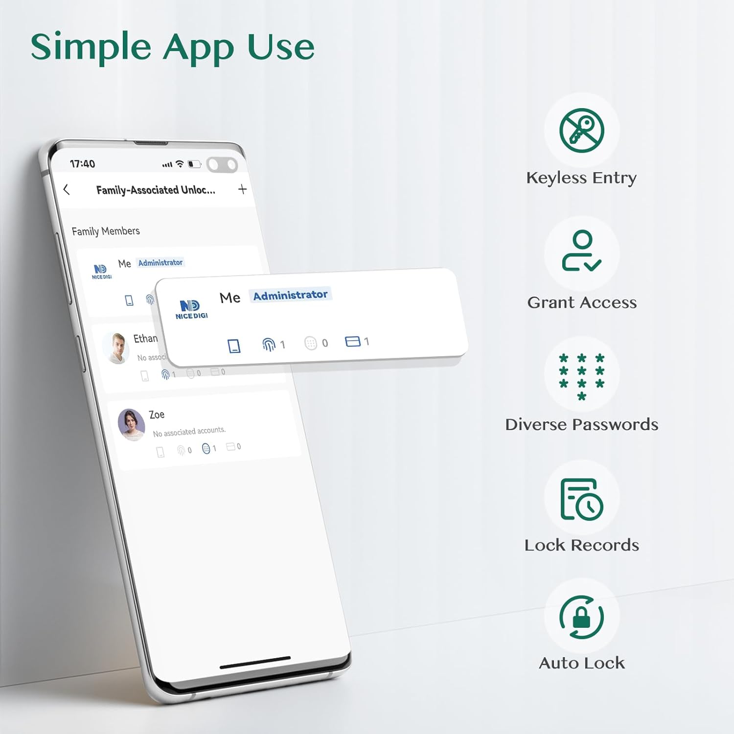 Easy to Use: This lock is compatible with most American standard doors and can be easily installed with just a screwdriver. It also comes with a simple app that allows you to enjoy a smart life by programming the lock effortlessly.