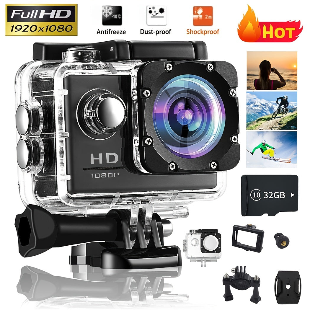 Kit de Caméra d'Action Ourlife 1080P HD - Équipement Sportif Complet avec LCD 2", Objectif Grand Angle 140° & Accessoires - Parfait pour le Cyclisme, la Natation, la Randonnée - Cadeau Idéal pour Noël, Anniversaire, Nouvel An - Convivial pour l'Utilisateu