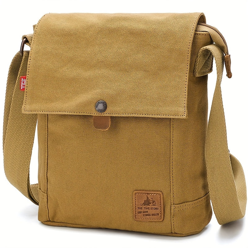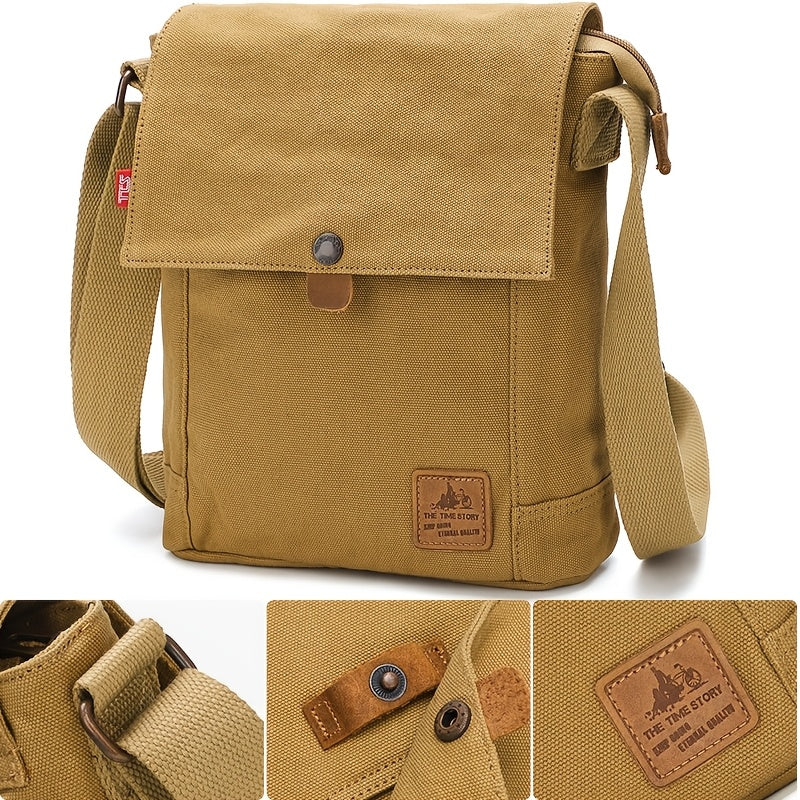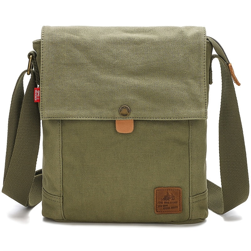 [Korean Style Canvas Bag] Korean Style Vertical Canvas Messenger Bag - Adjustable Strap Crossbody Shoulder Bag for Daily Commute