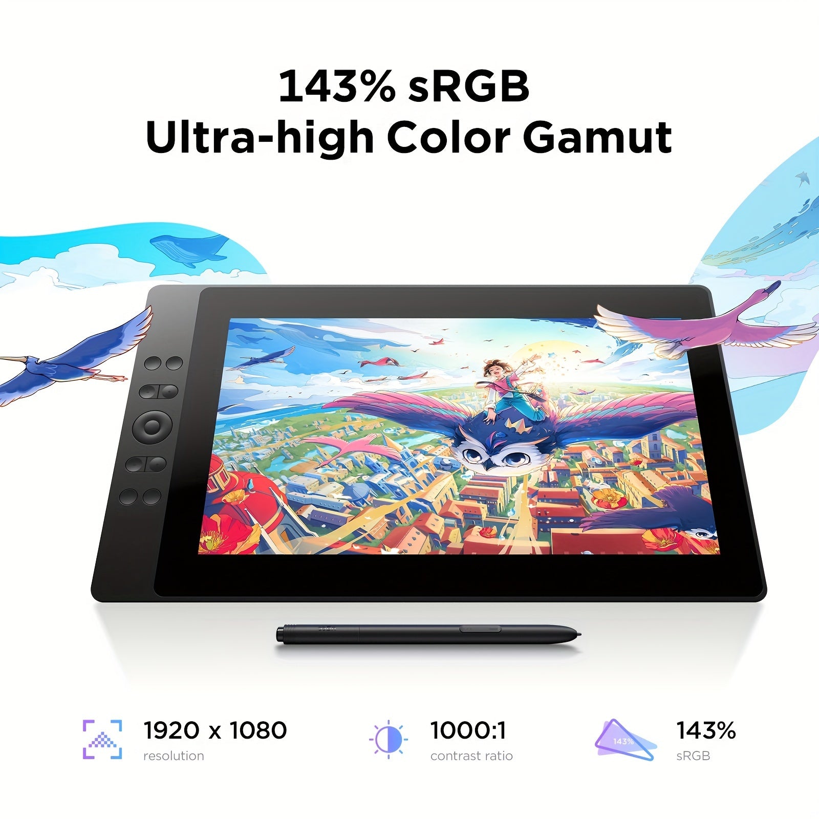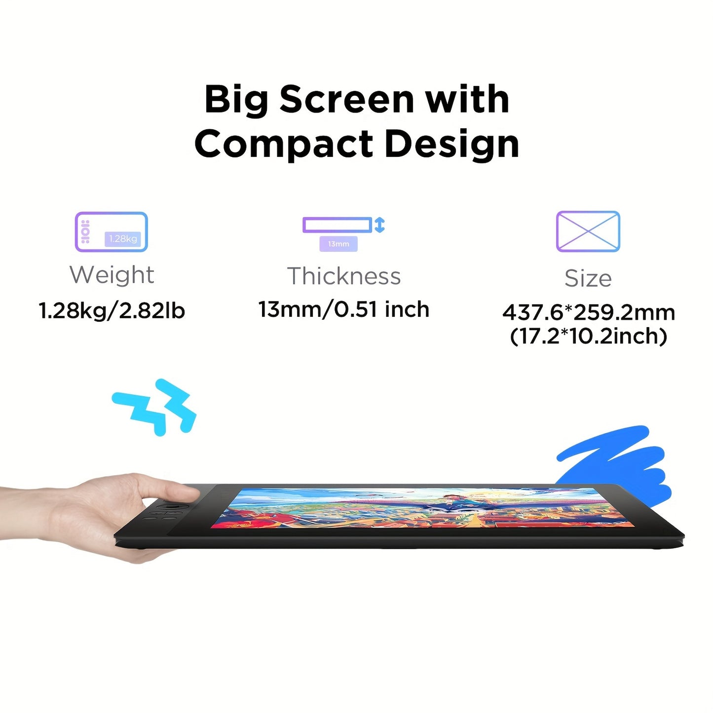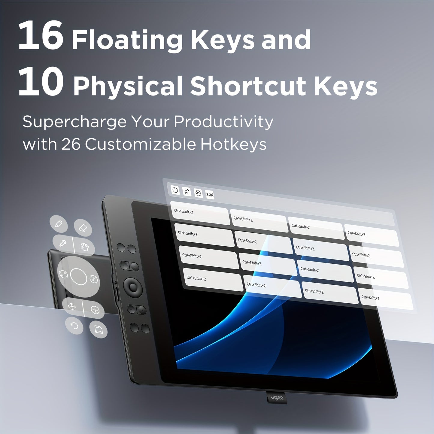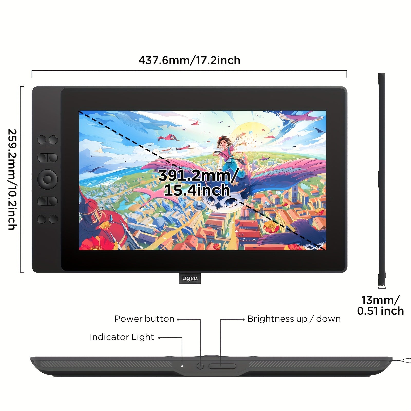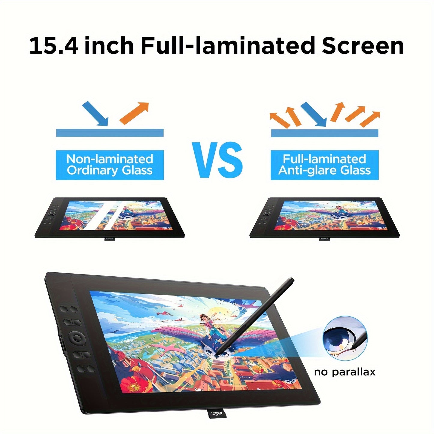 La tablette graphique UGEE UE16 est dotée d'un écran entièrement laminé de 15,4 pouces avec une gamme de couleurs ultra-élevée de 143 % Srgb. Elle est livrée avec un stylet électromagnétique passif sensible à la pression de 16K, 10 touches de raccourci ph