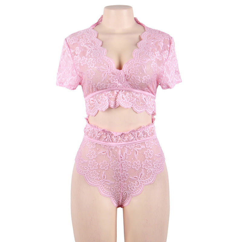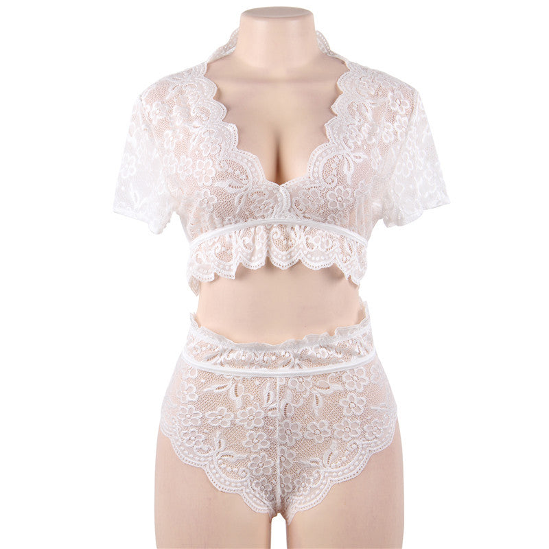 Lace Low Cut High Waist See Through Two Piece Suit Sexy Lingerie Women