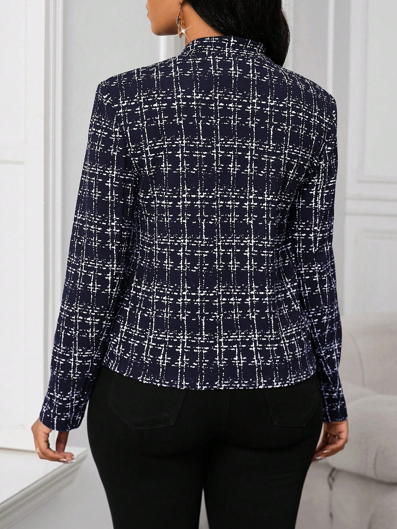 Lady Women's Elegant Elegant Plaid Print Open Front Blazer Jacket