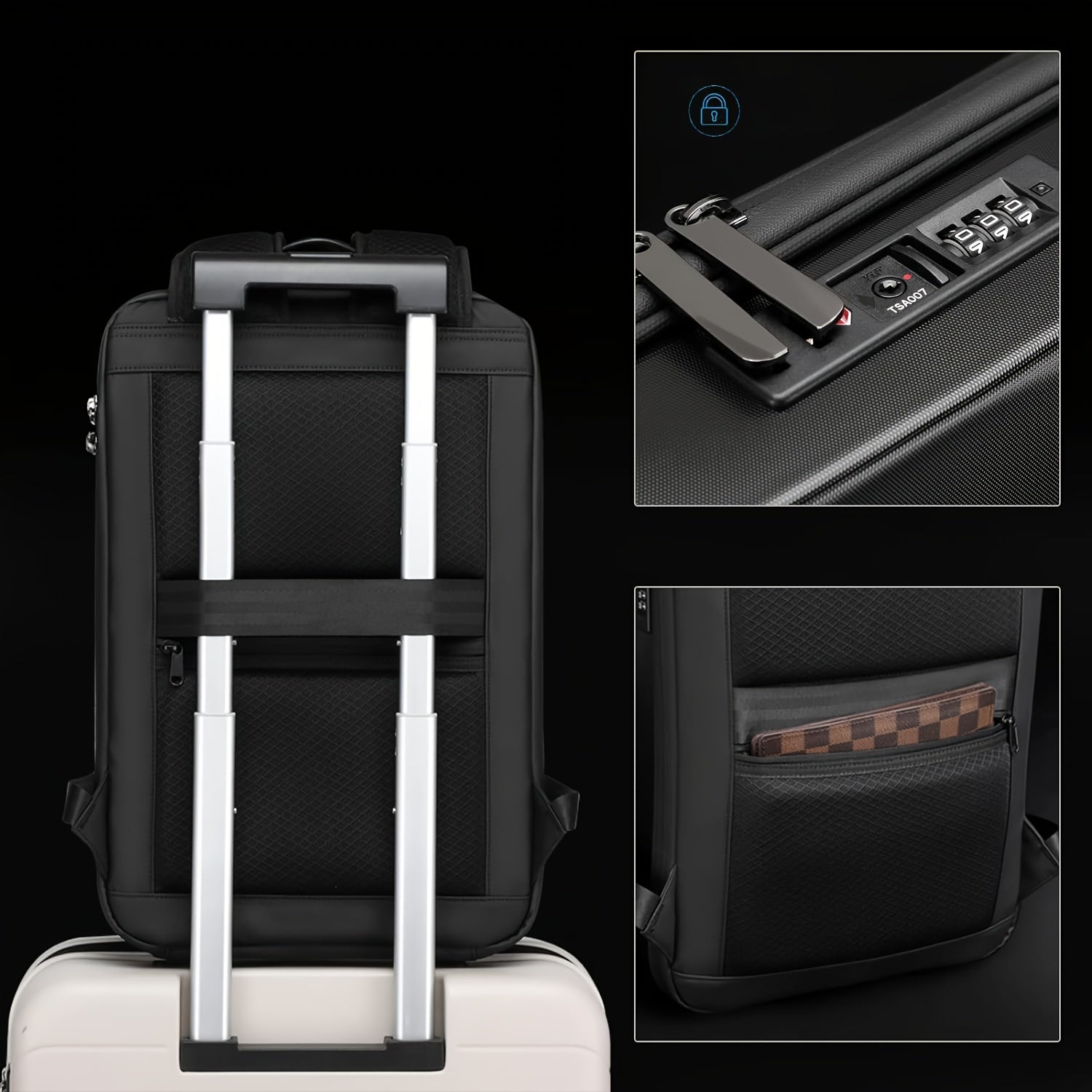[LALA IKAI, Anti-theft Backpack] LALA IKAI 17" Anti-theft Hardshell Backpack - Canvas Men's Laptop Business Travel Bag